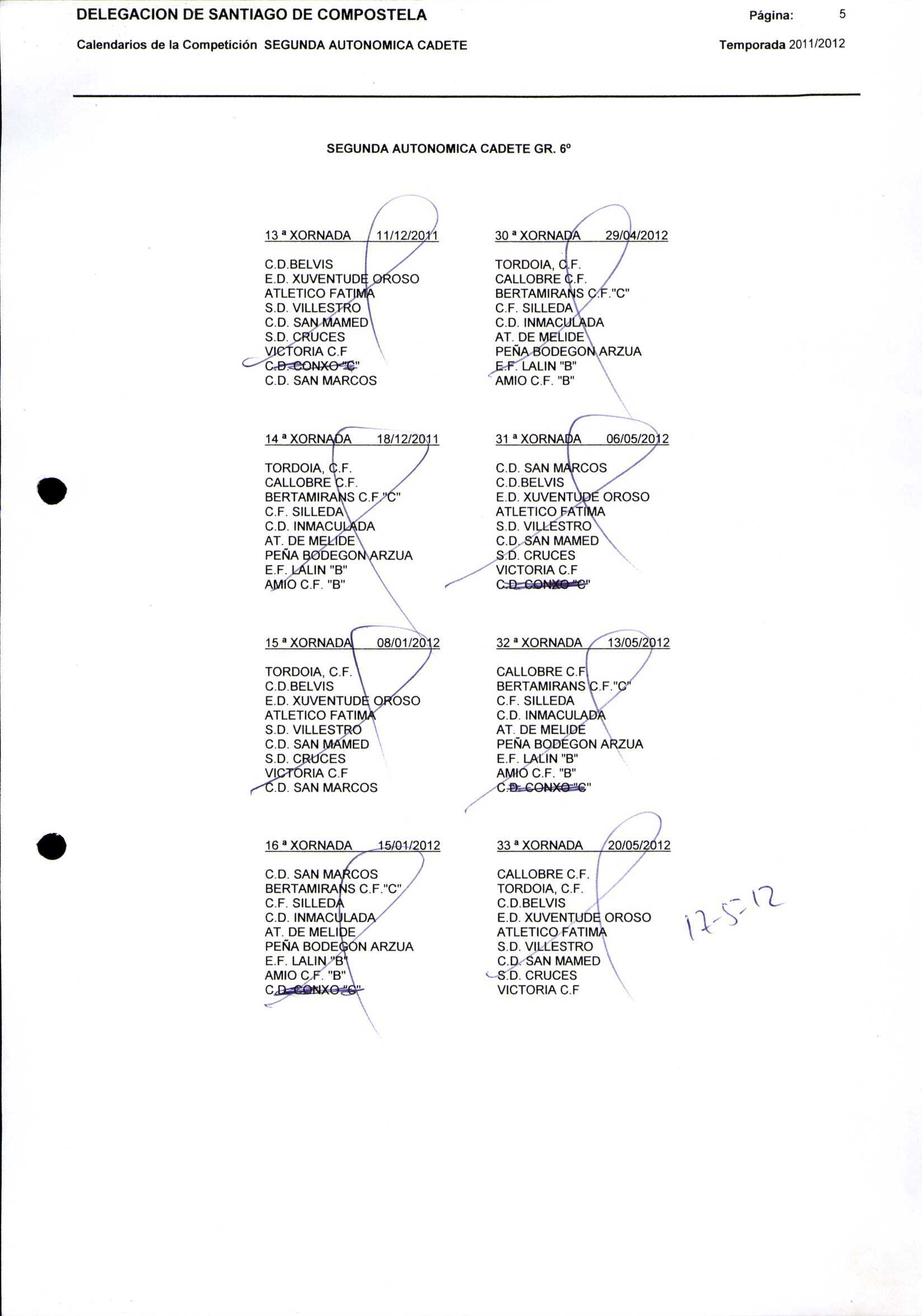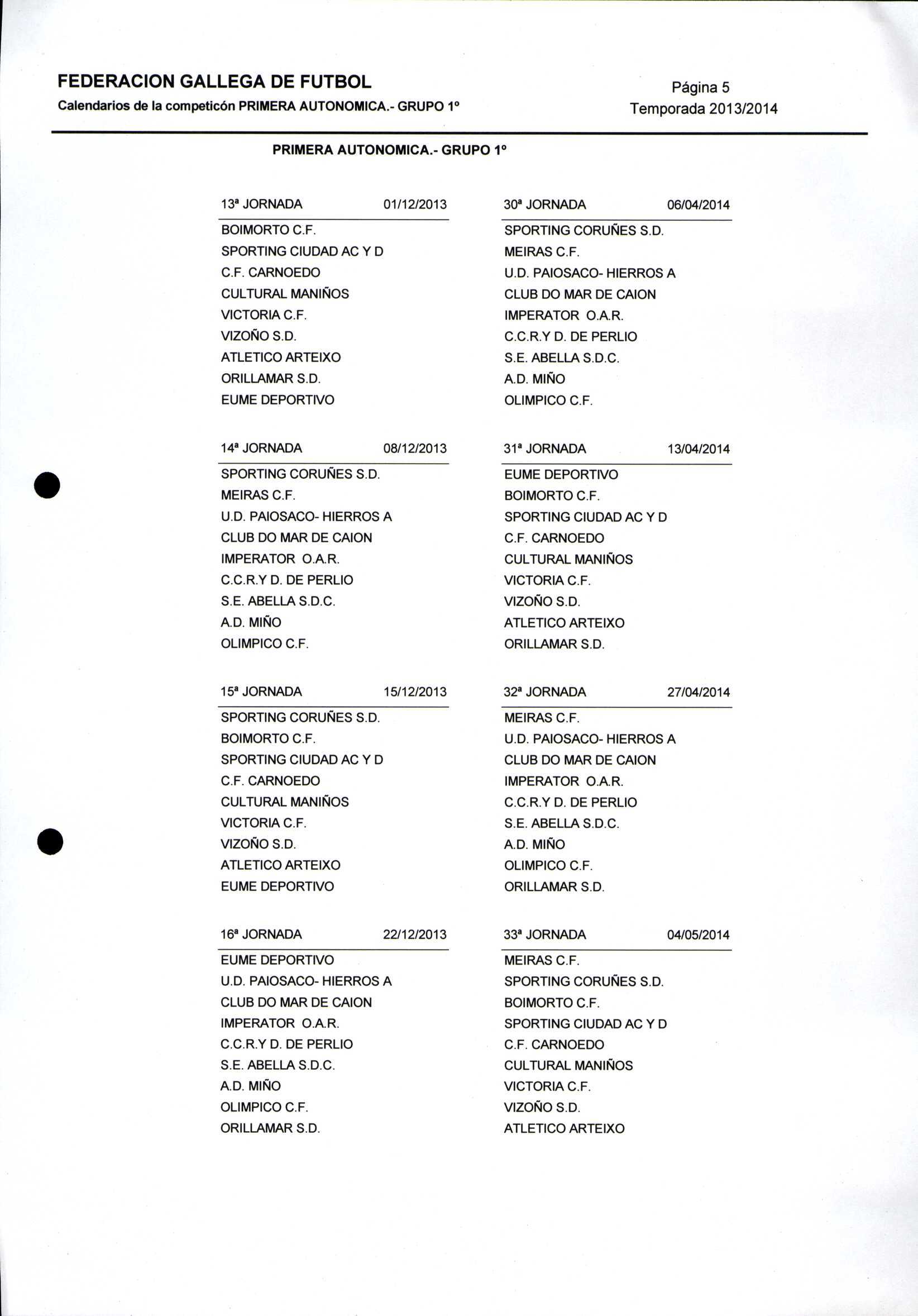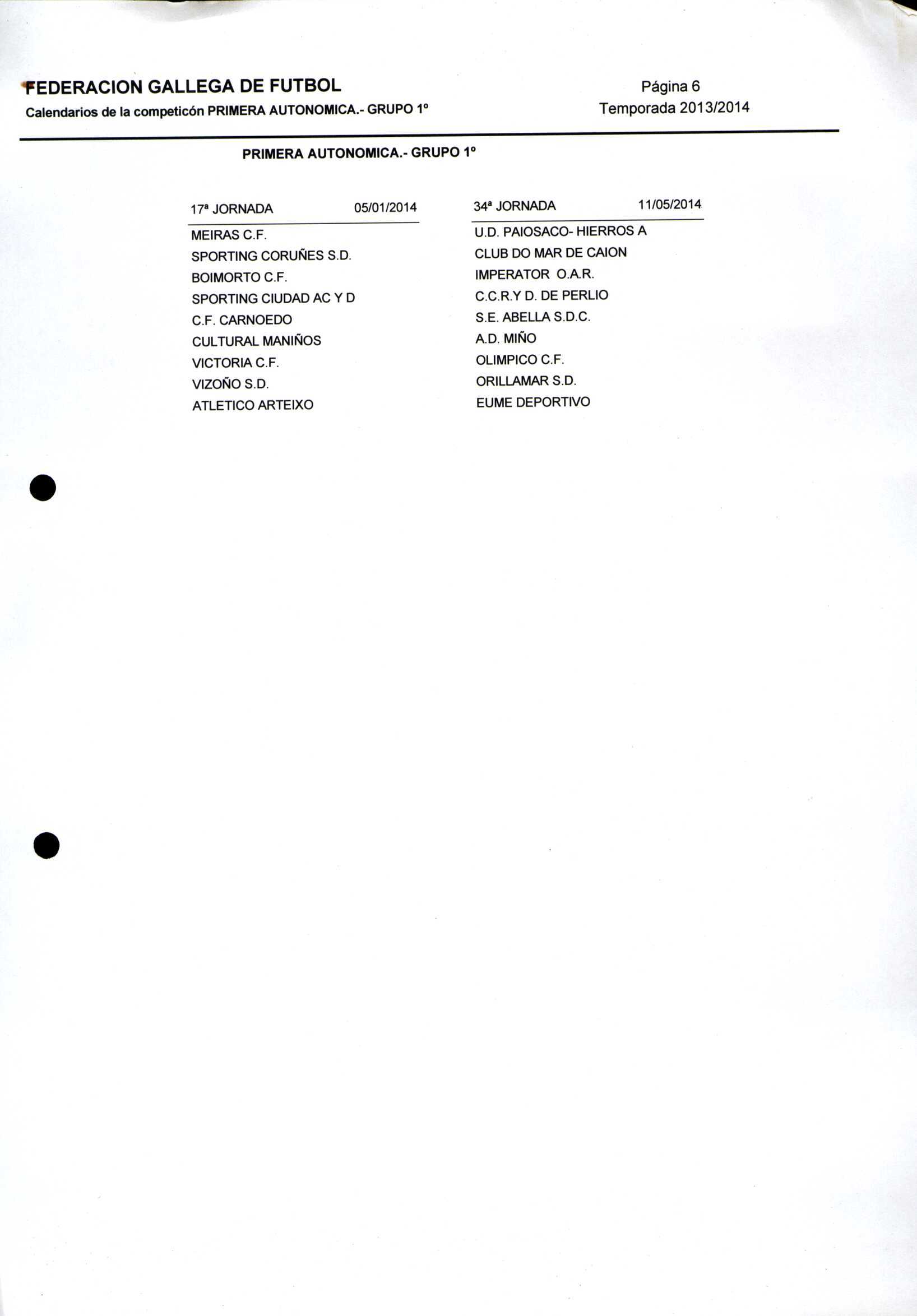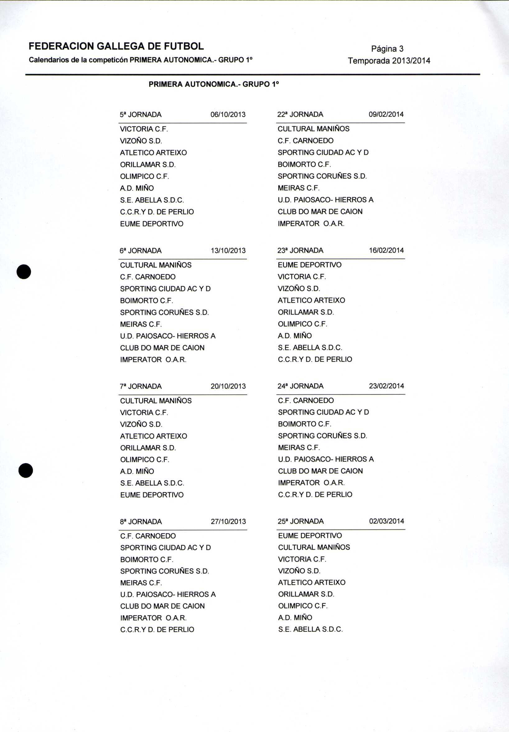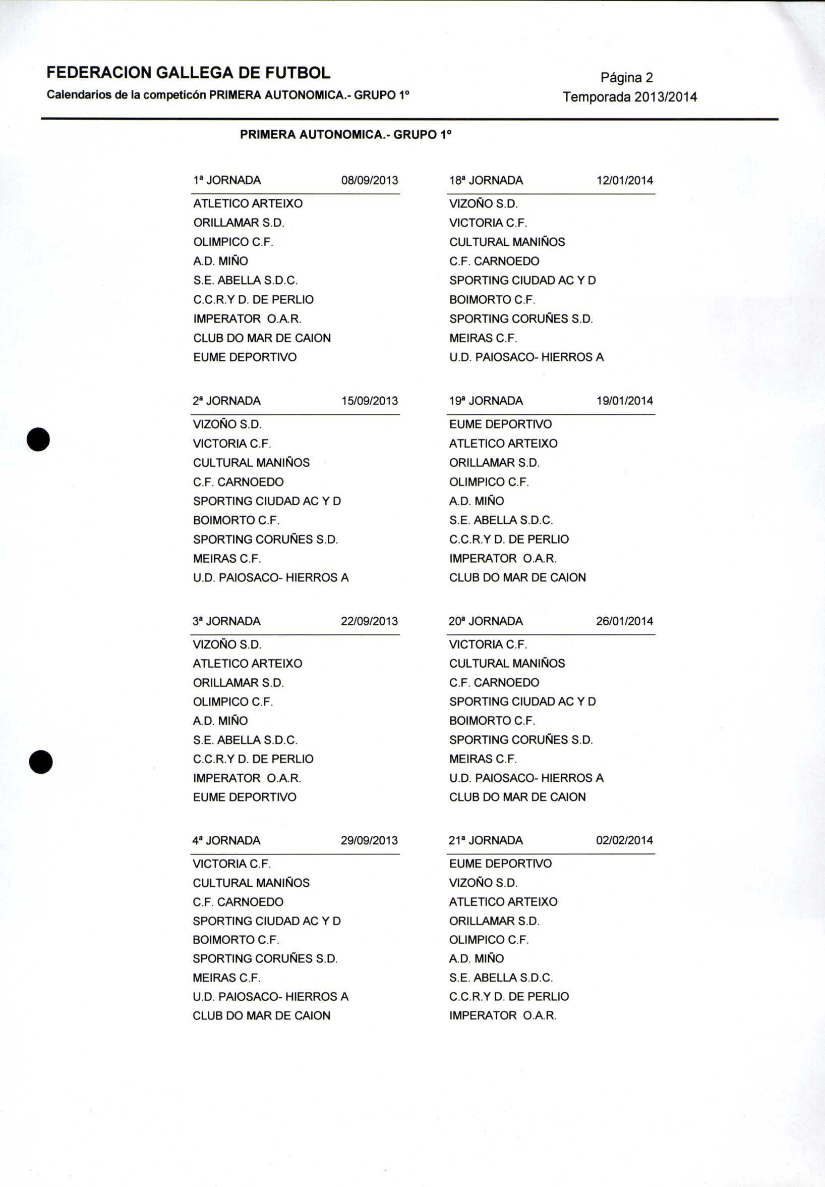 Unidade documental composta 459/2 - Calendario Tempada 2012-2014