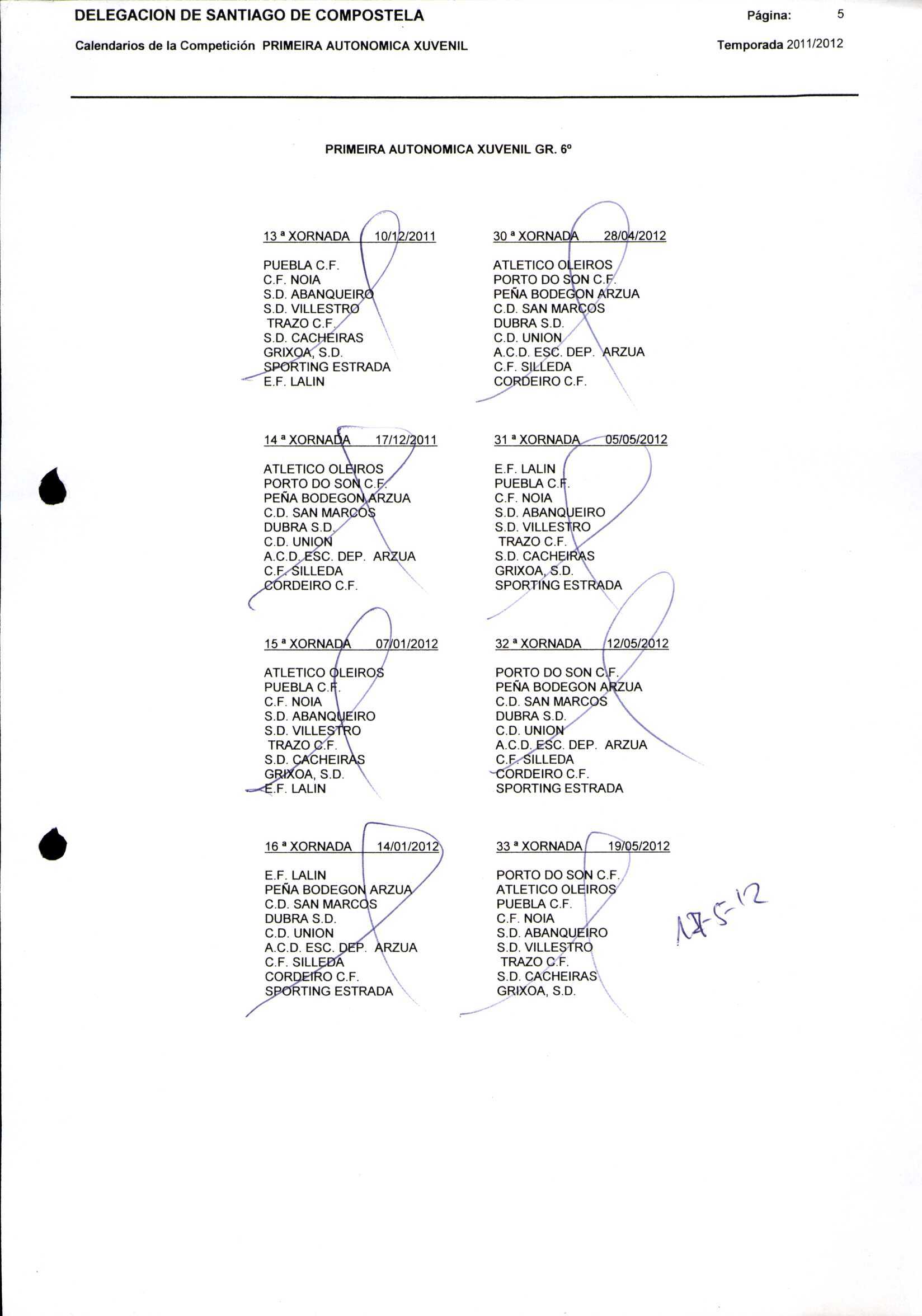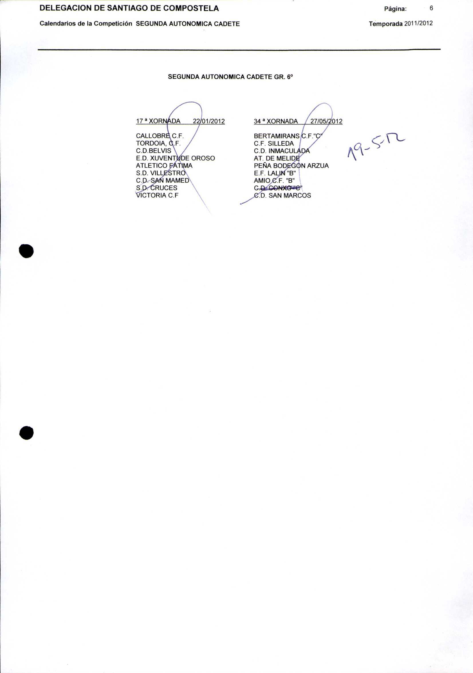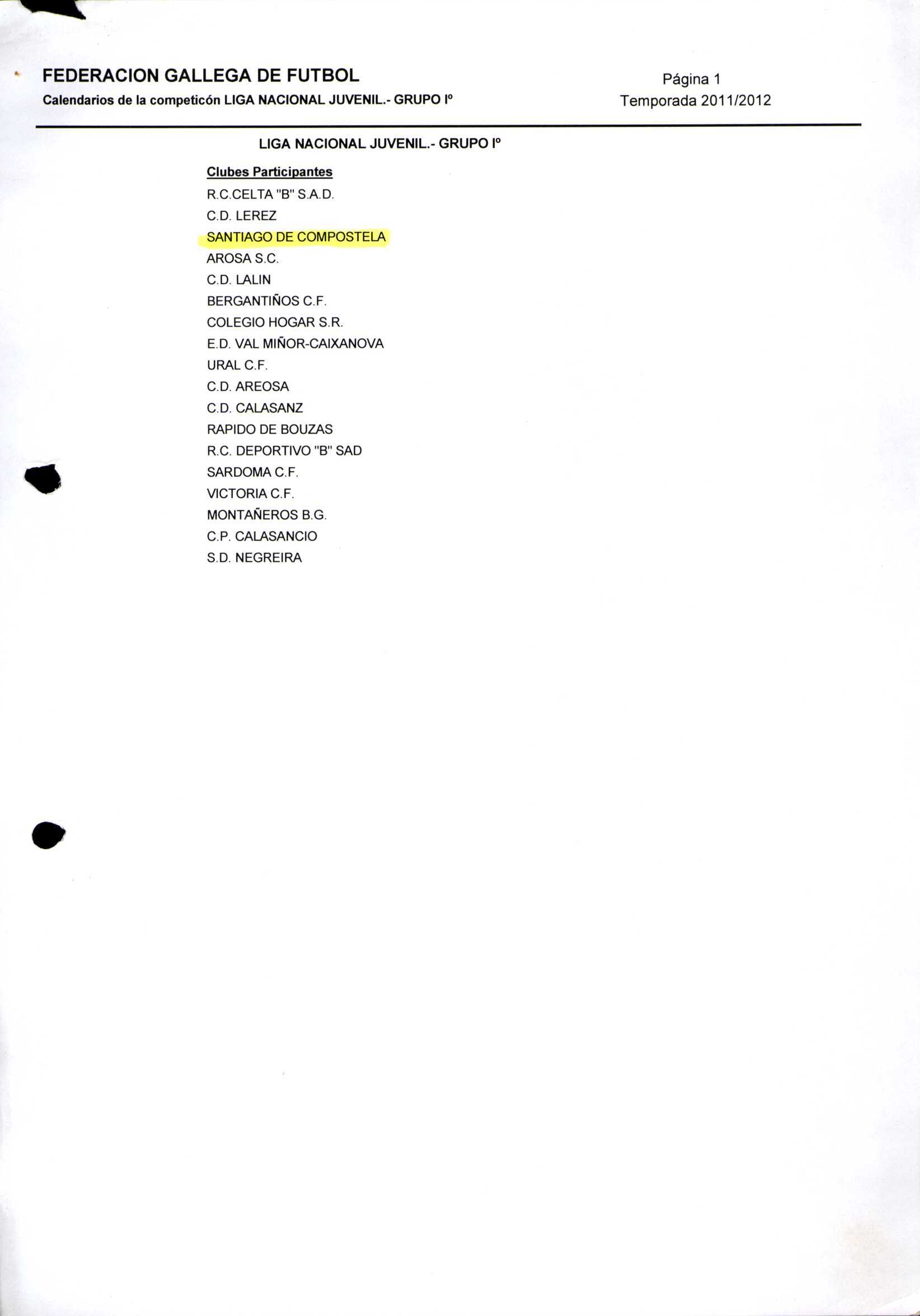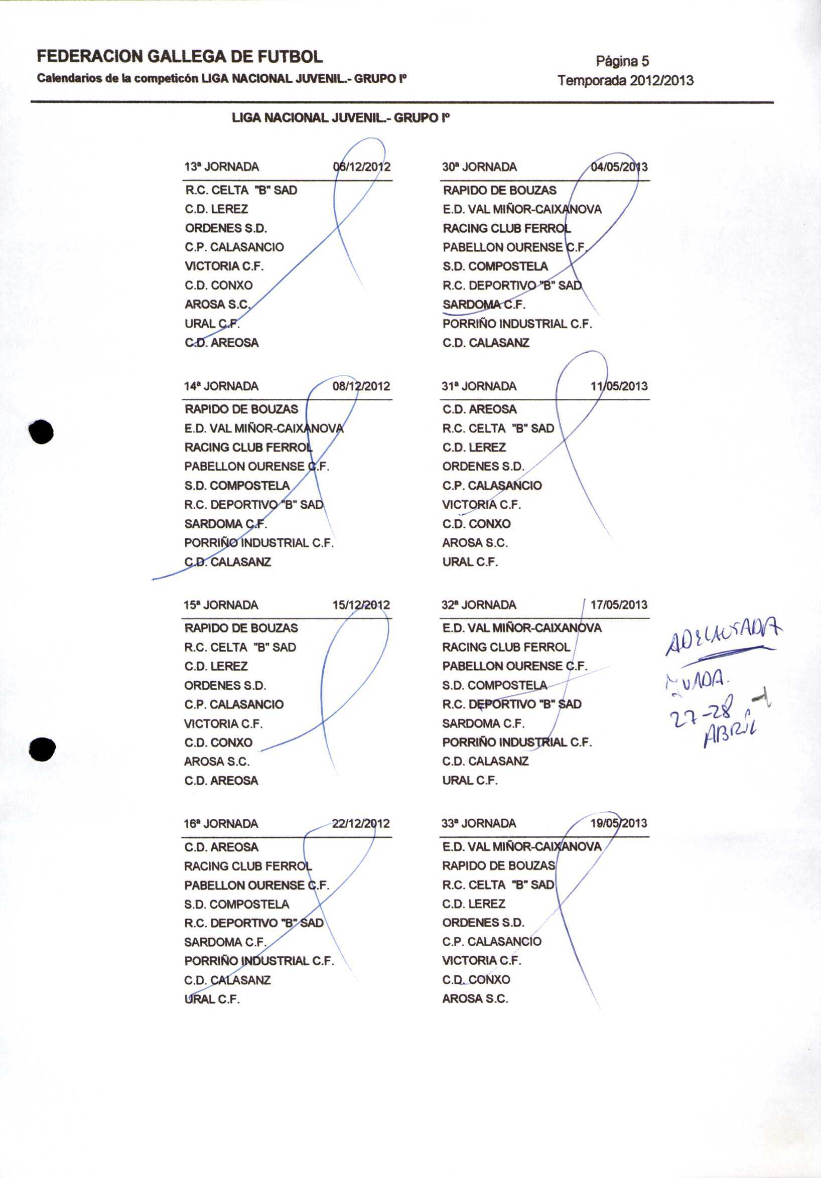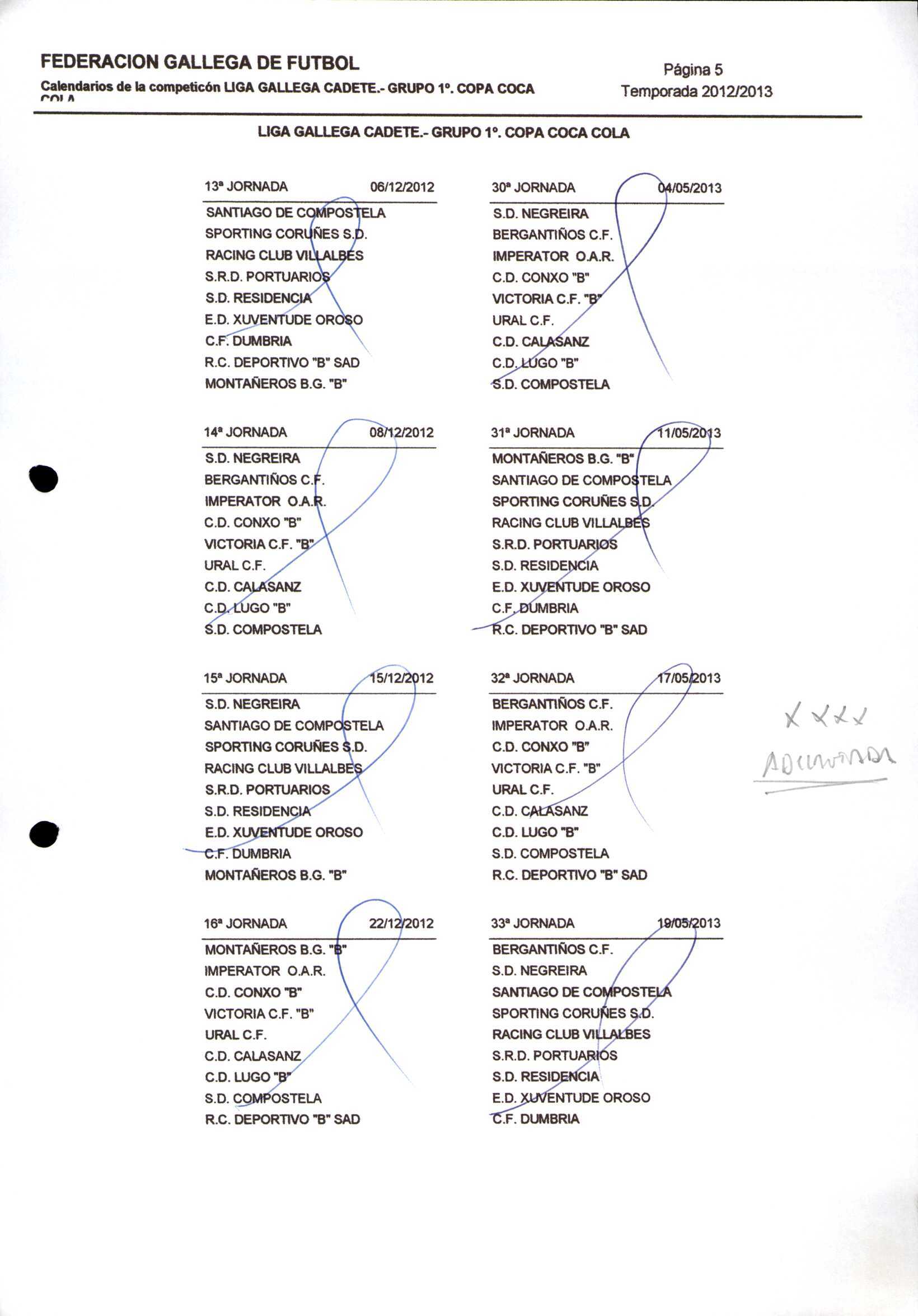 Unidade documental composta 459/2 - Calendario Tempada 2012-2014