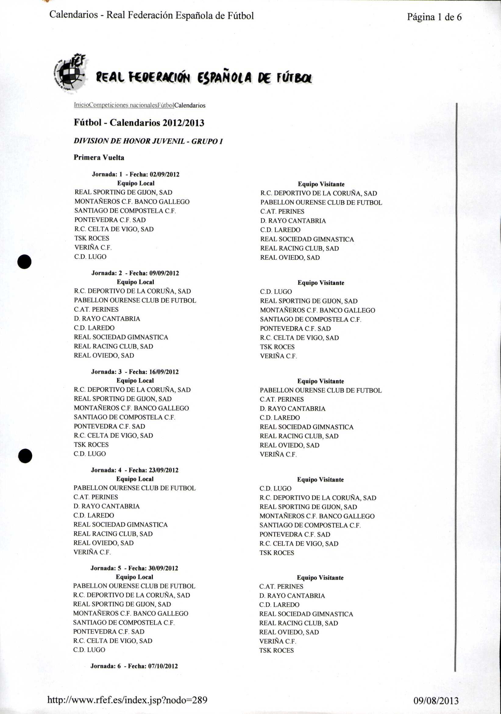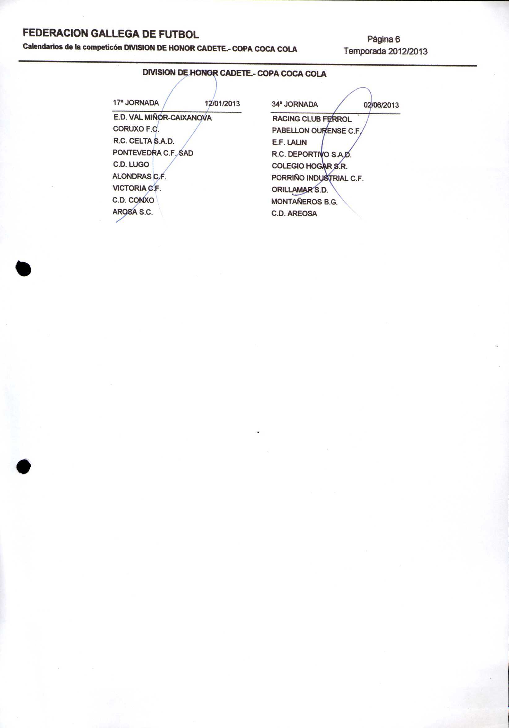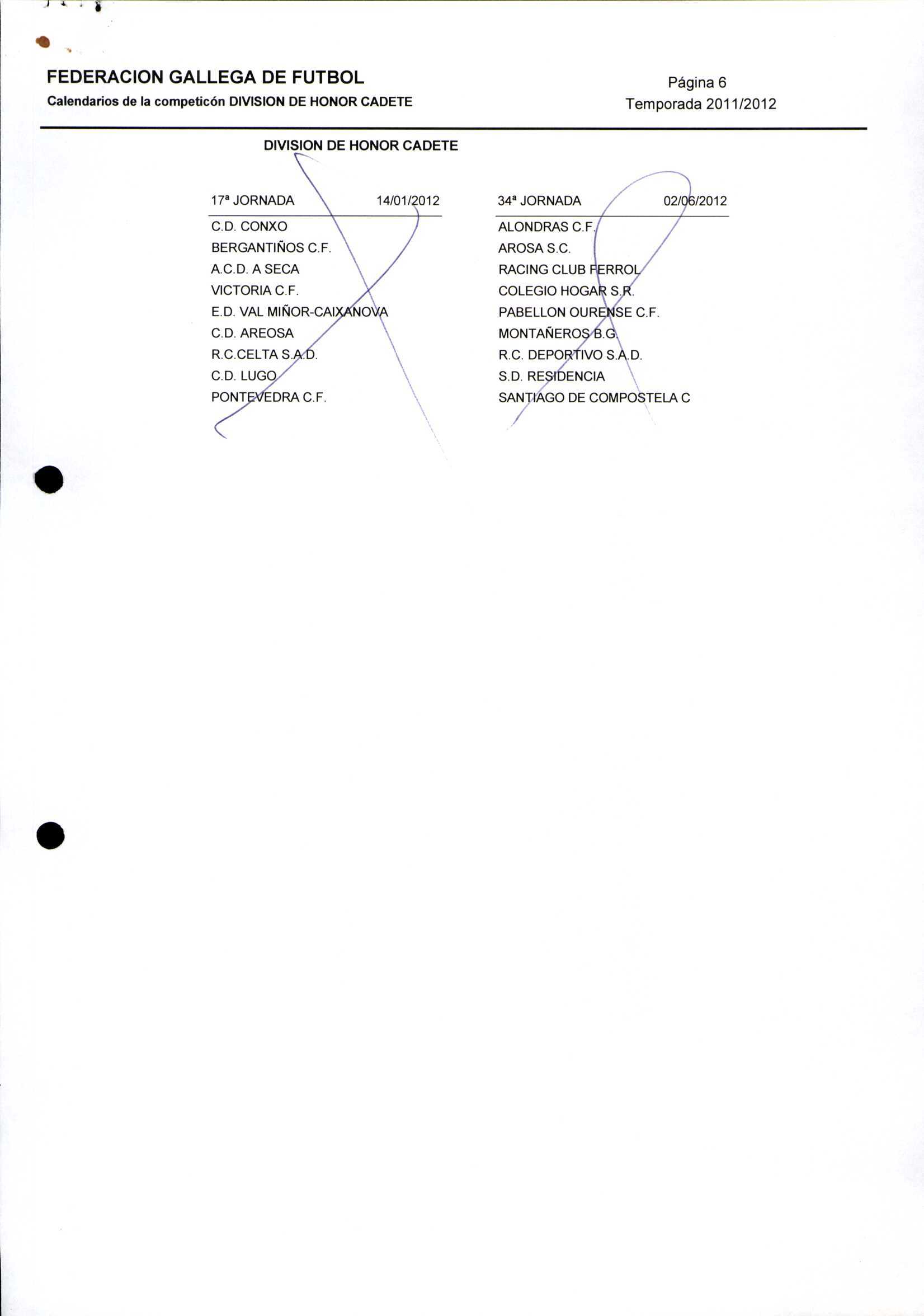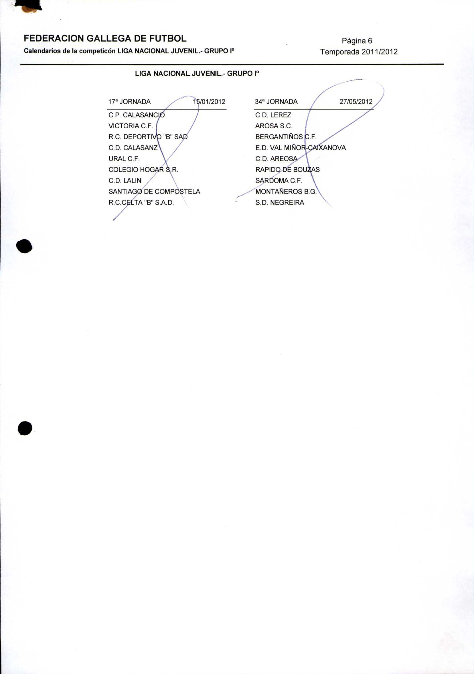 Unidade documental composta 459/2 - Calendario Tempada 2012-2014