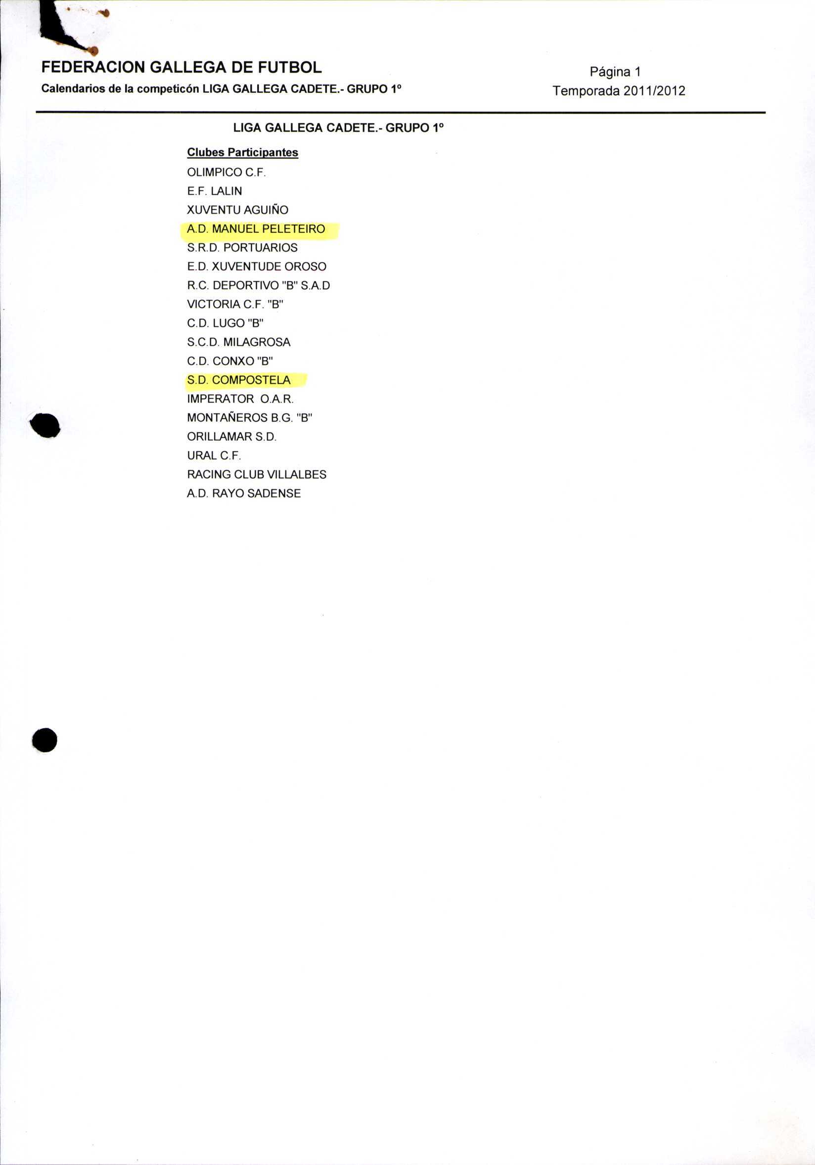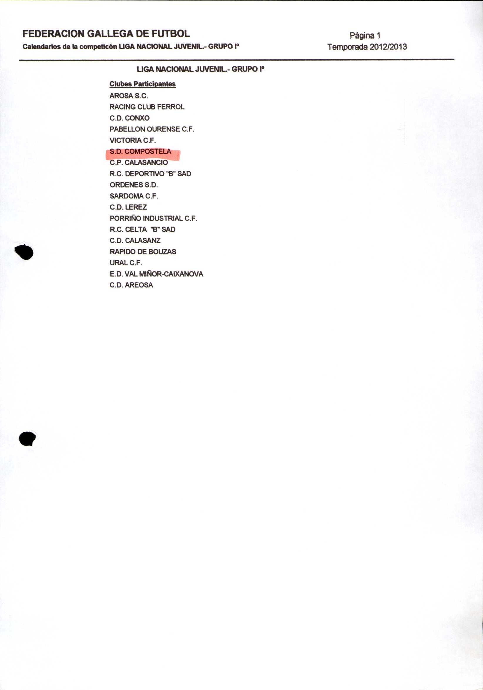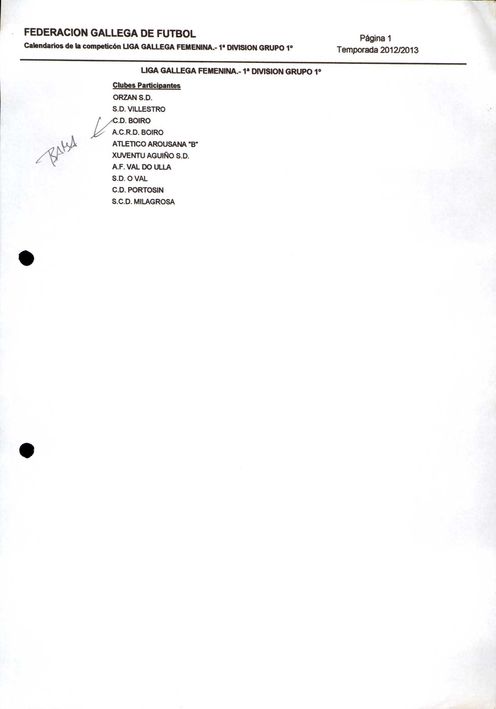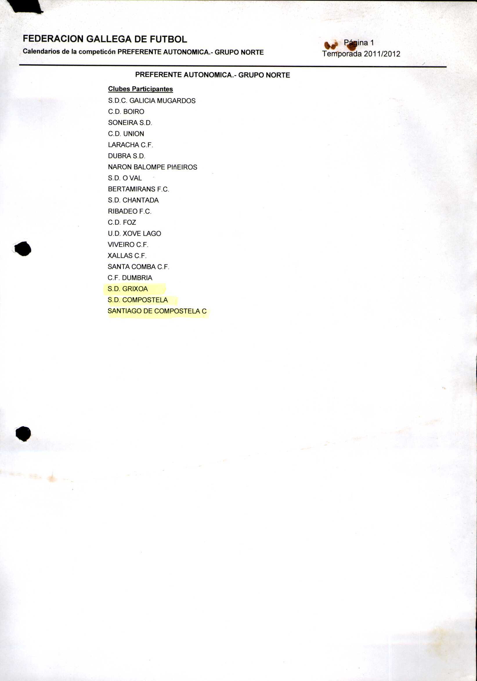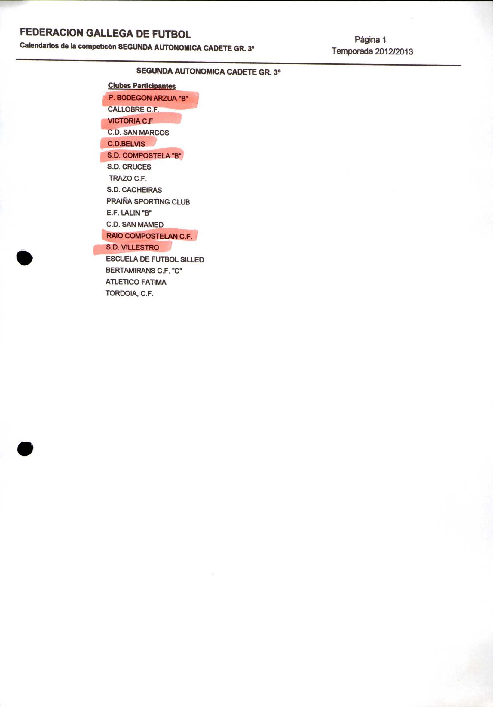 Unidade documental composta 459/2 - Calendario Tempada 2012-2014