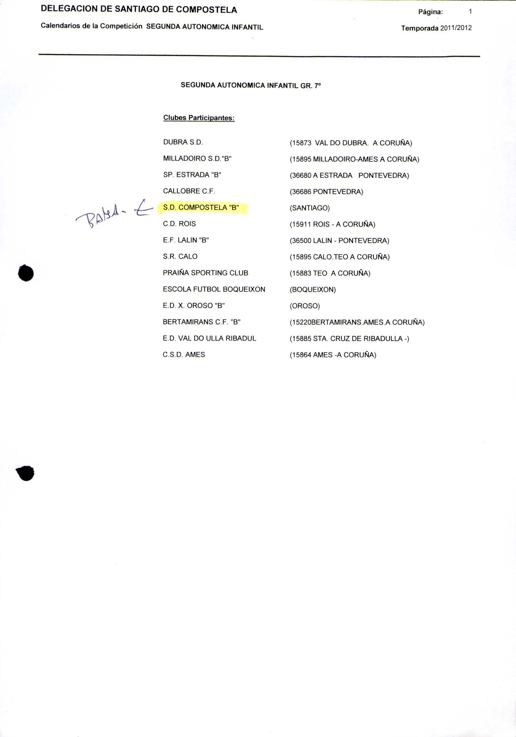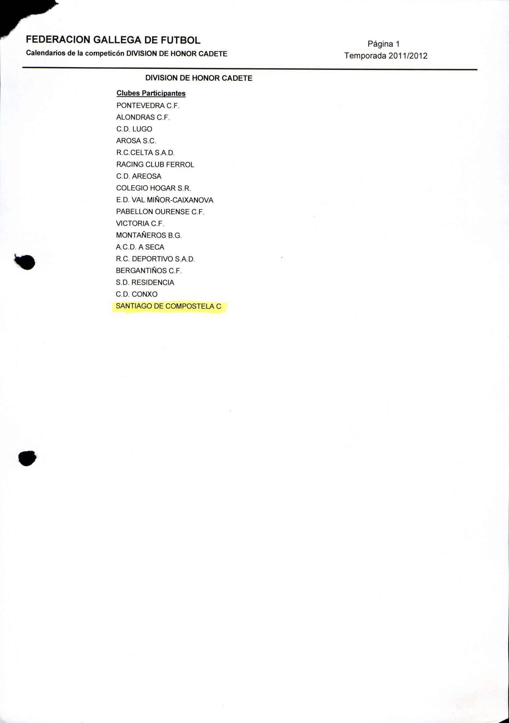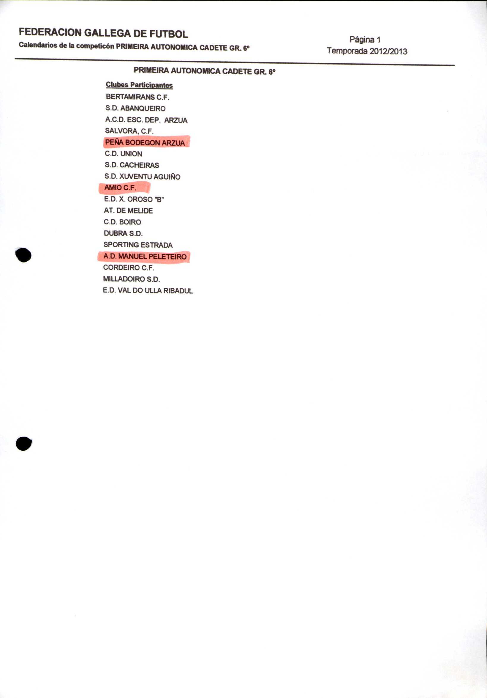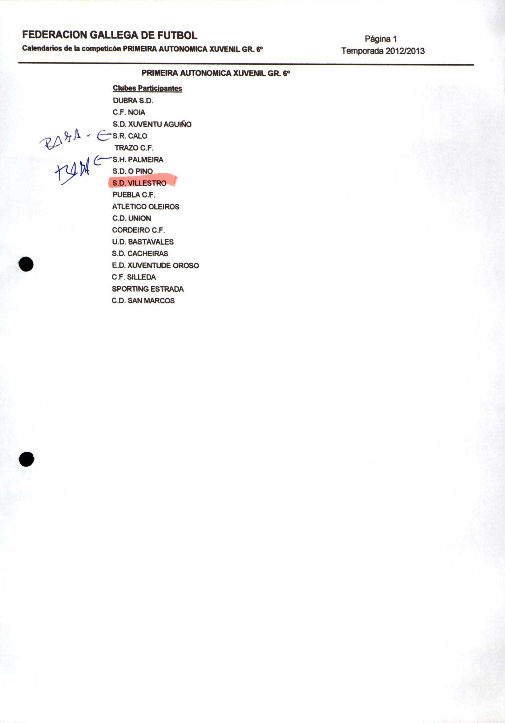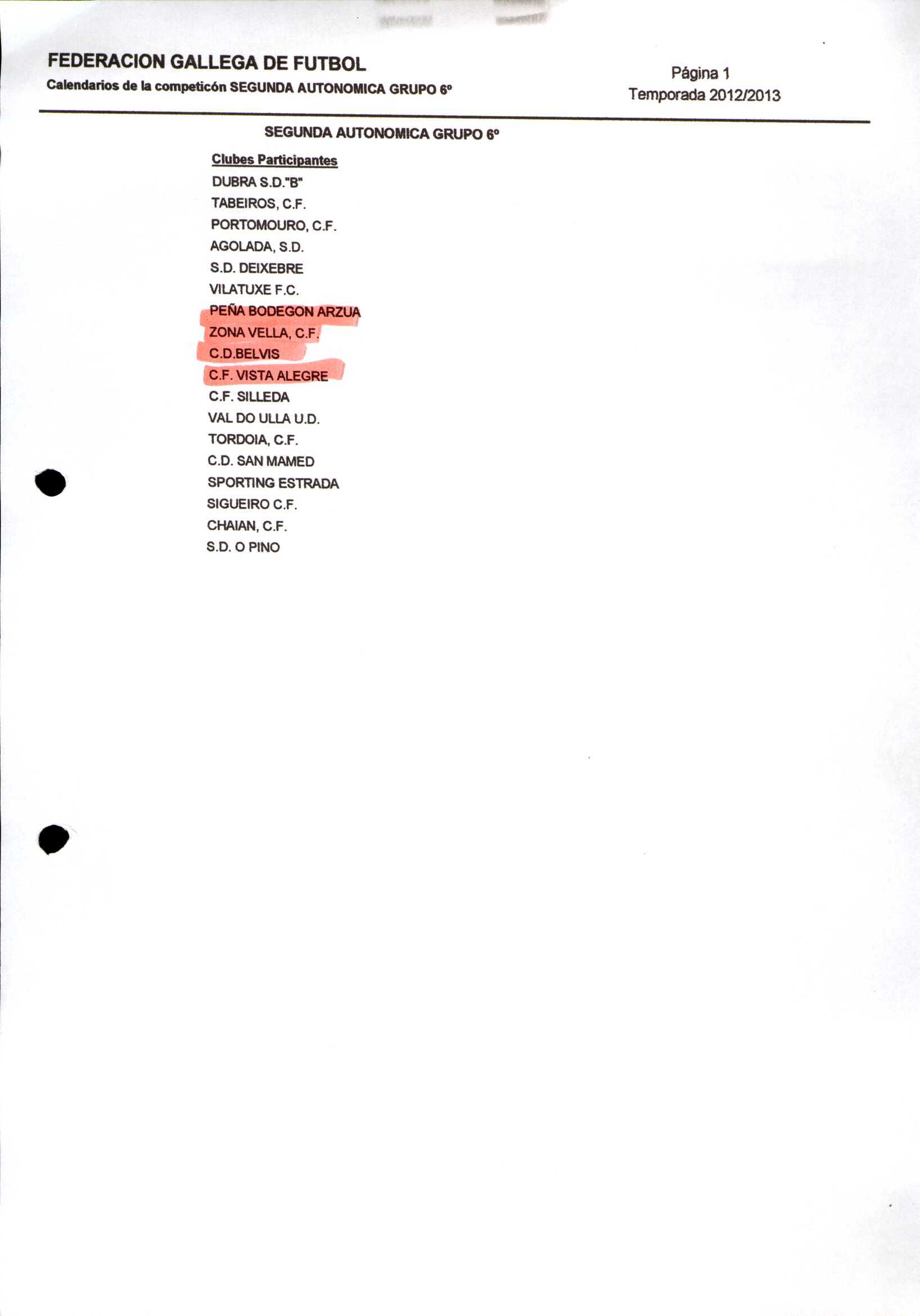 Unidade documental composta 459/2 - Calendario Tempada 2012-2014