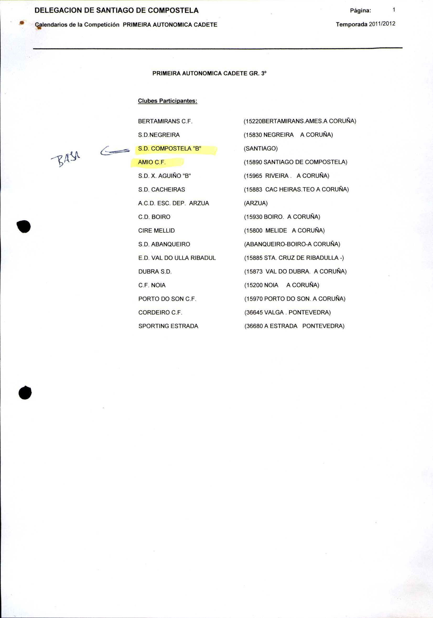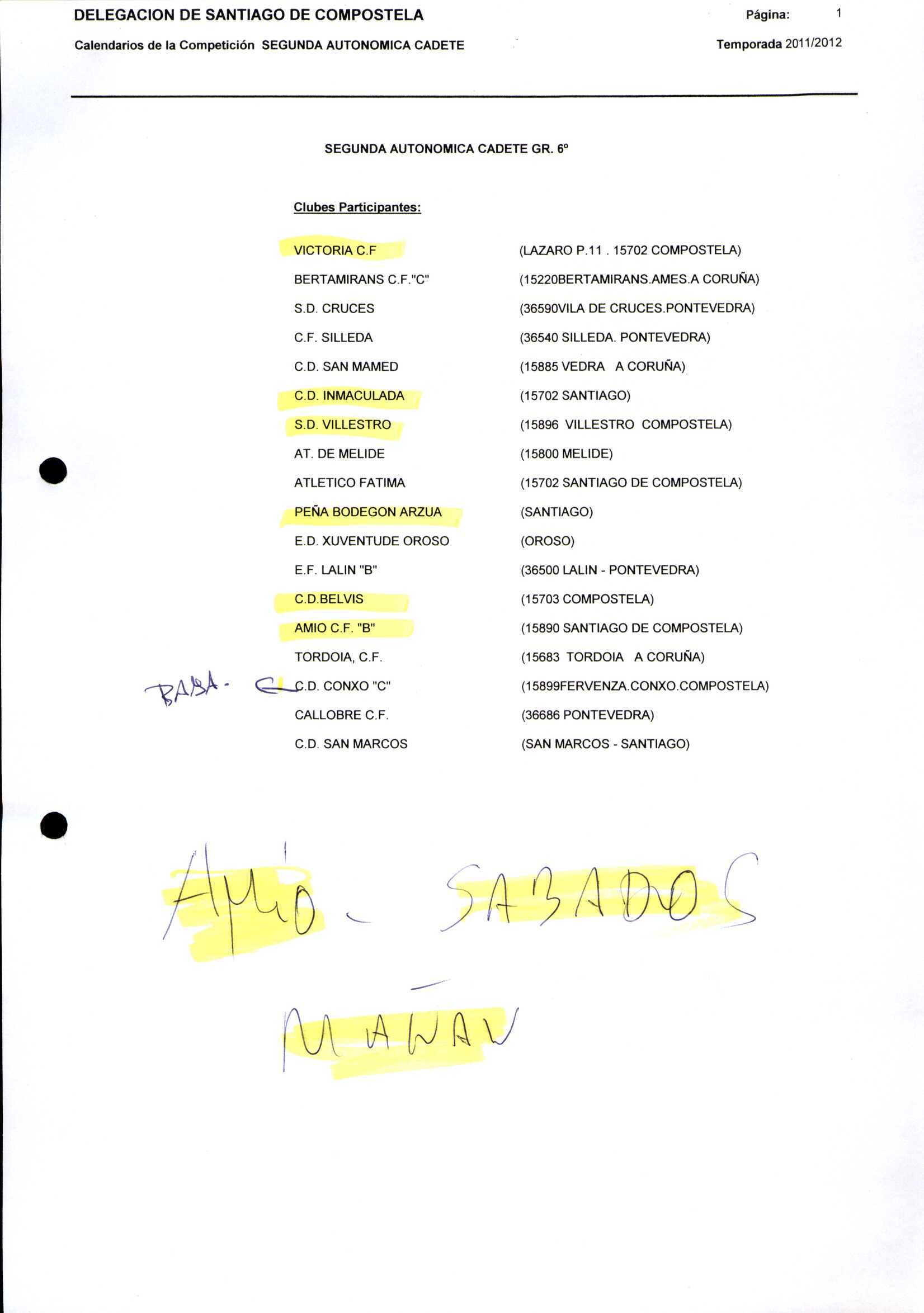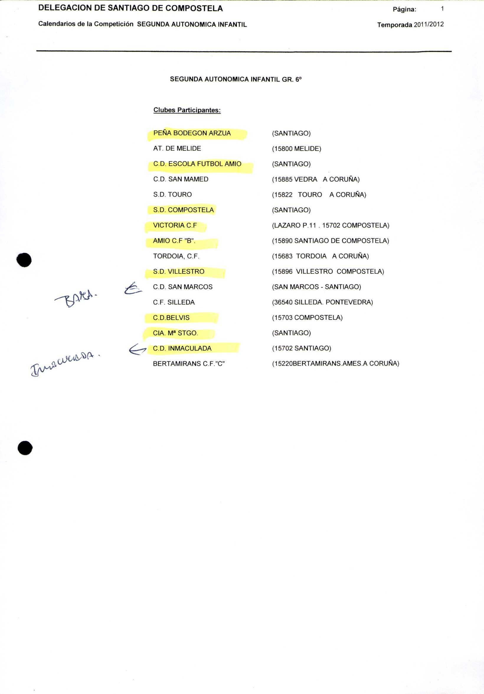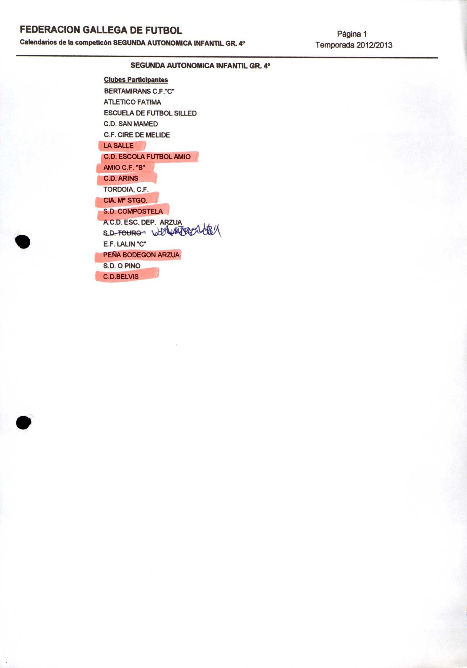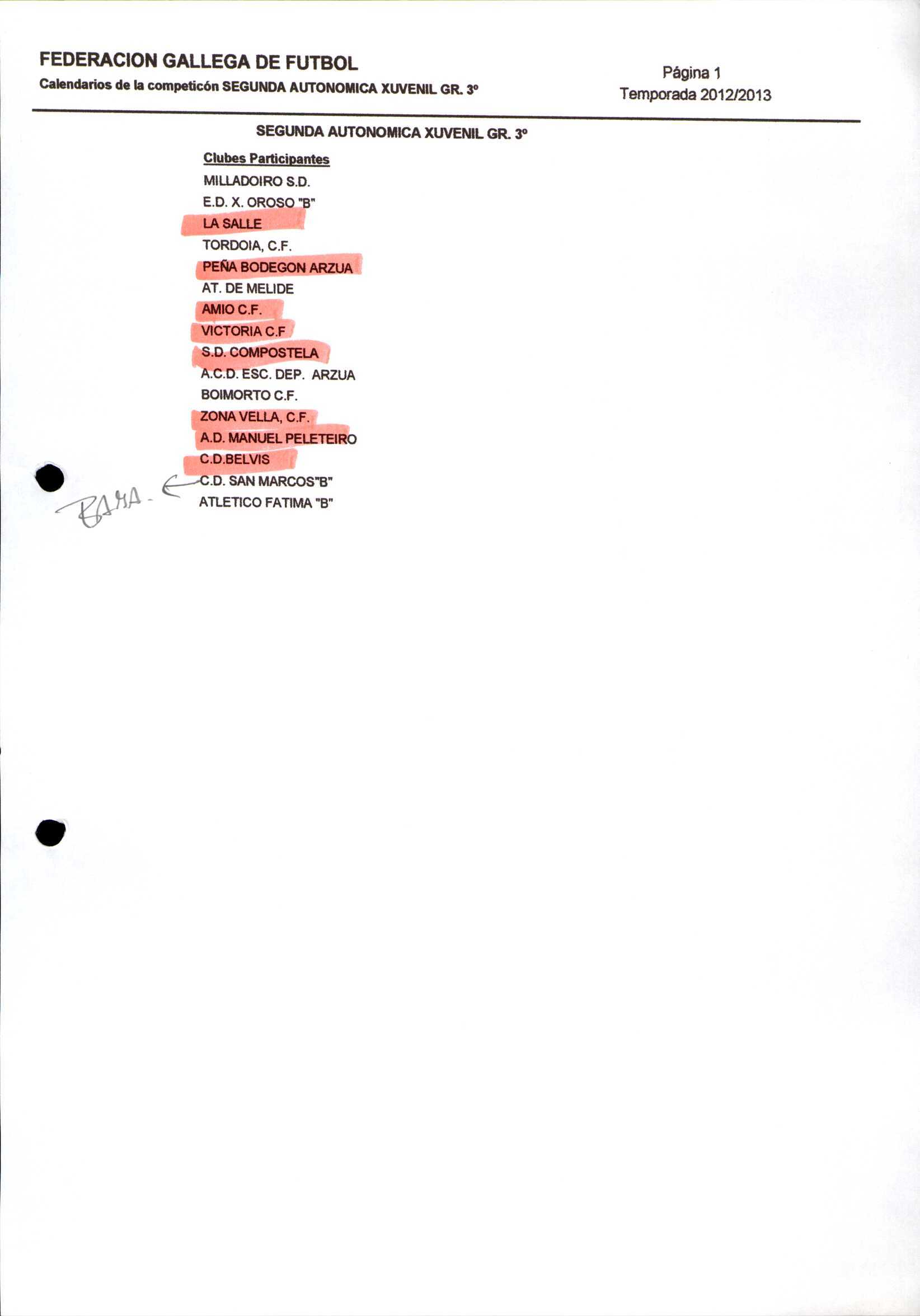 Unidade documental composta 459/2 - Calendario Tempada 2012-2014