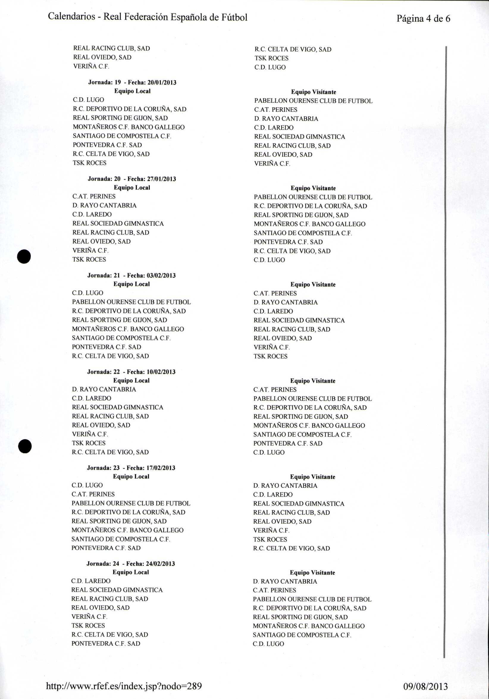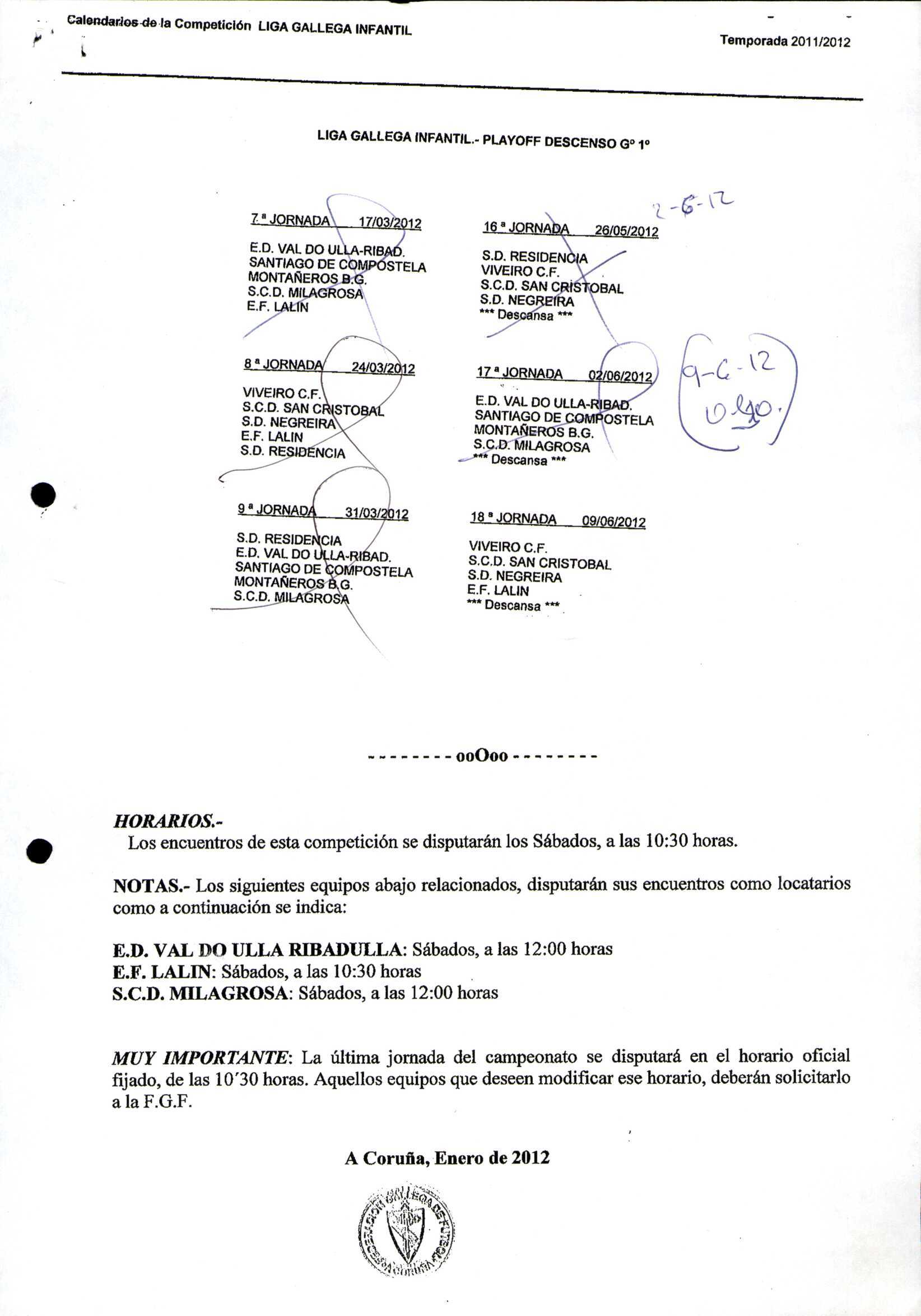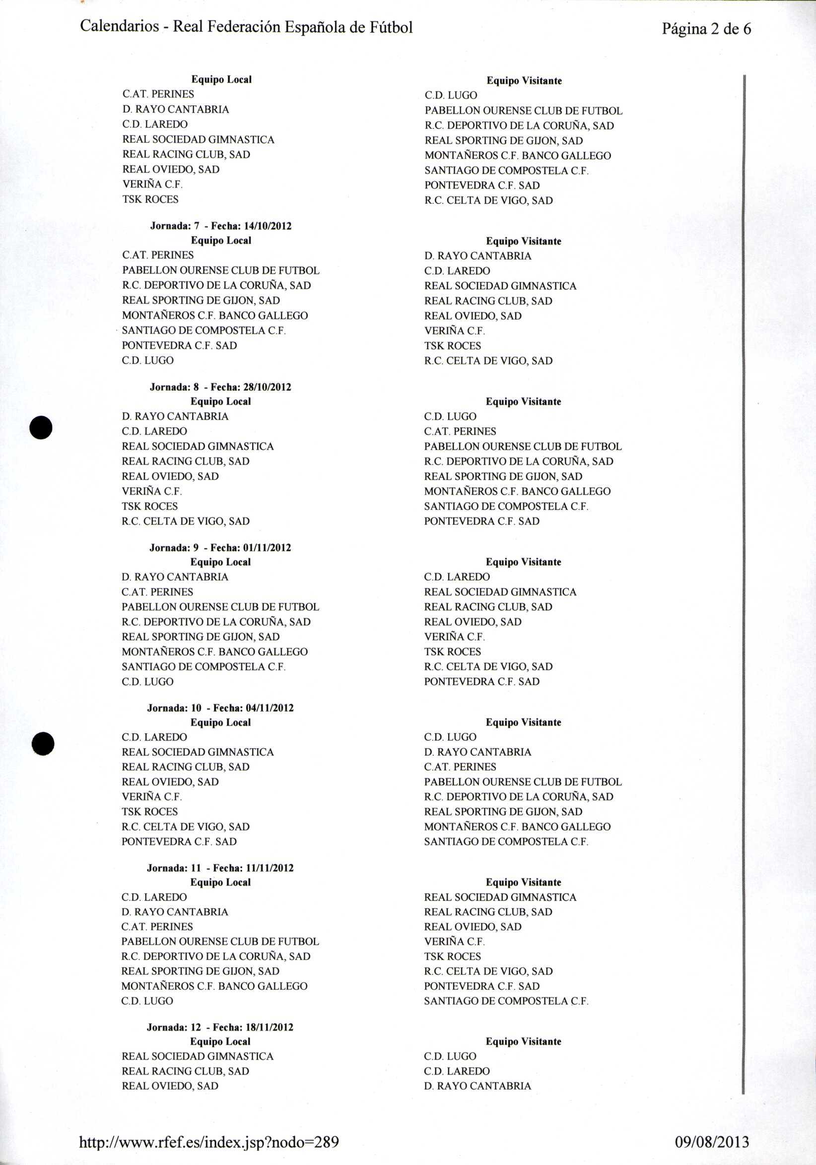 Calendario Tempada 2012-2014