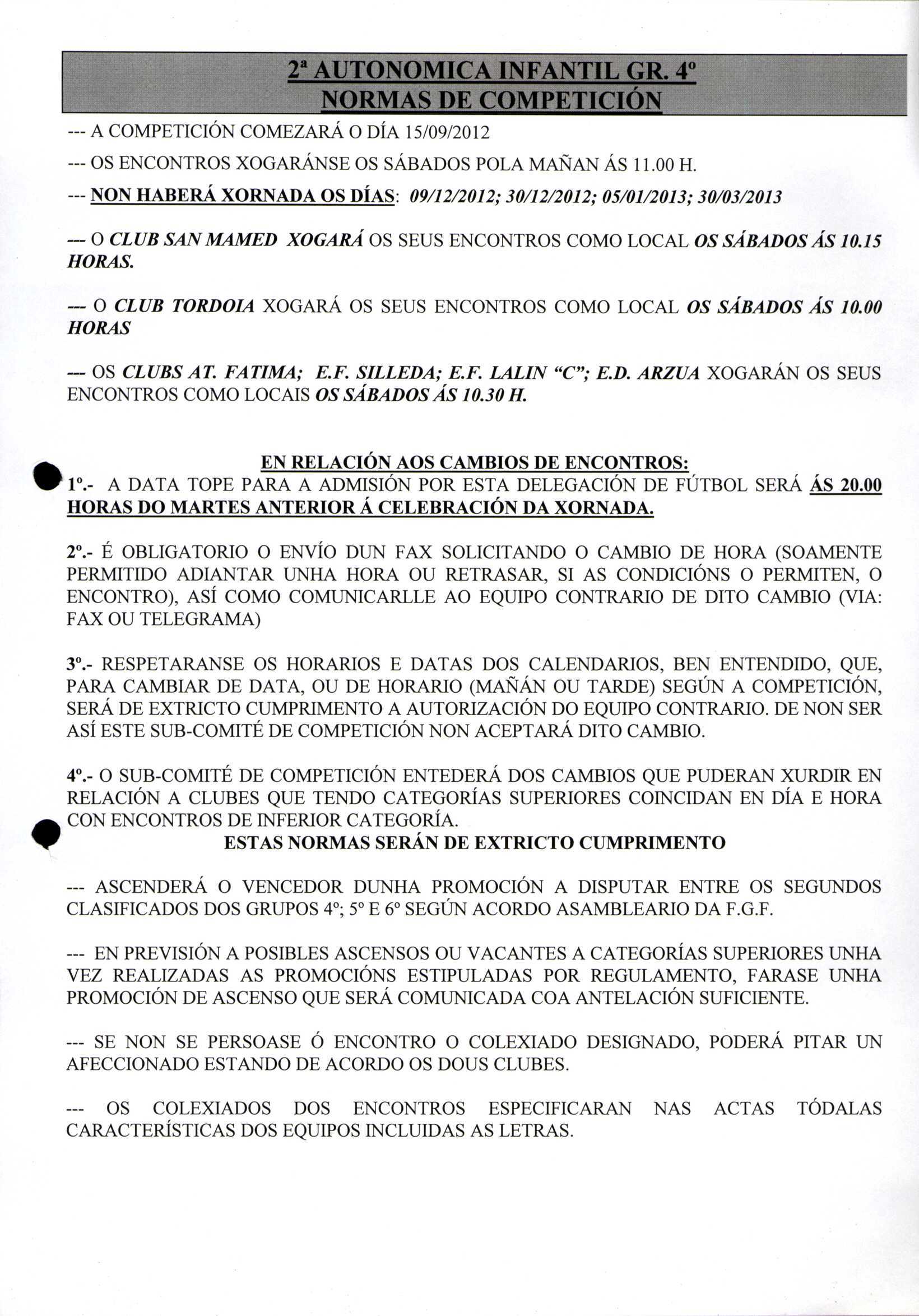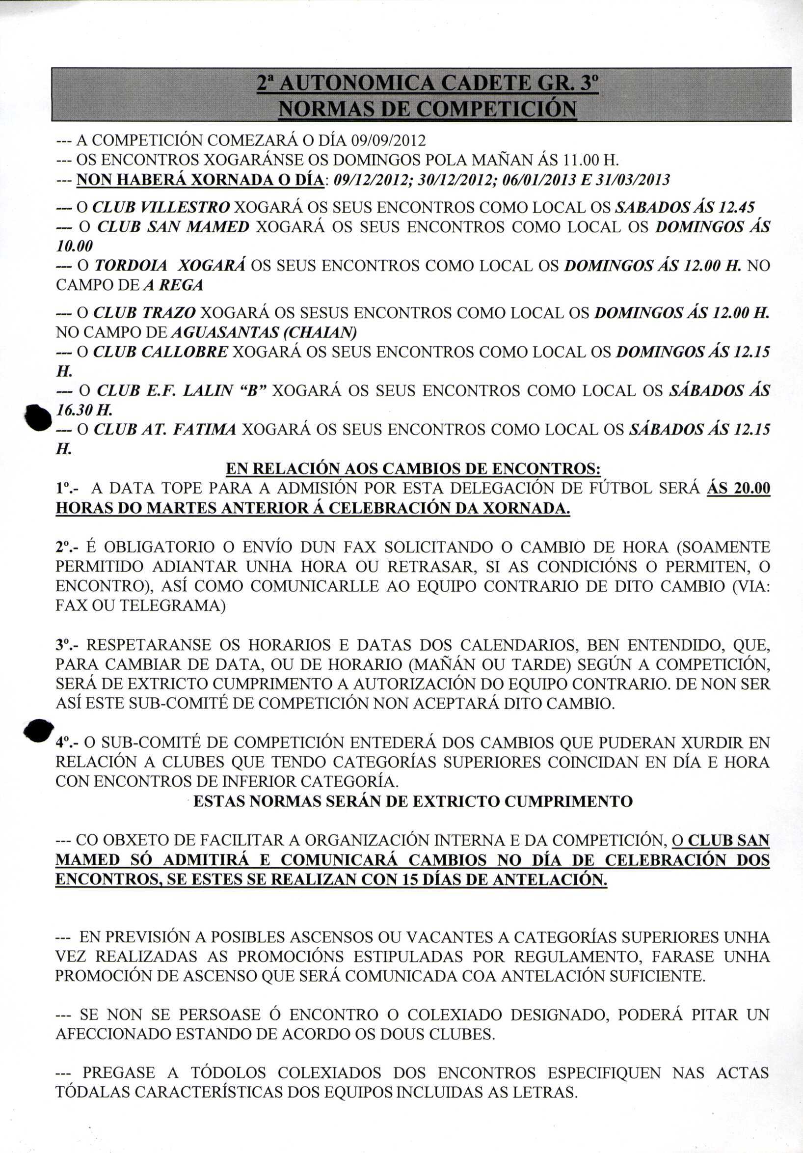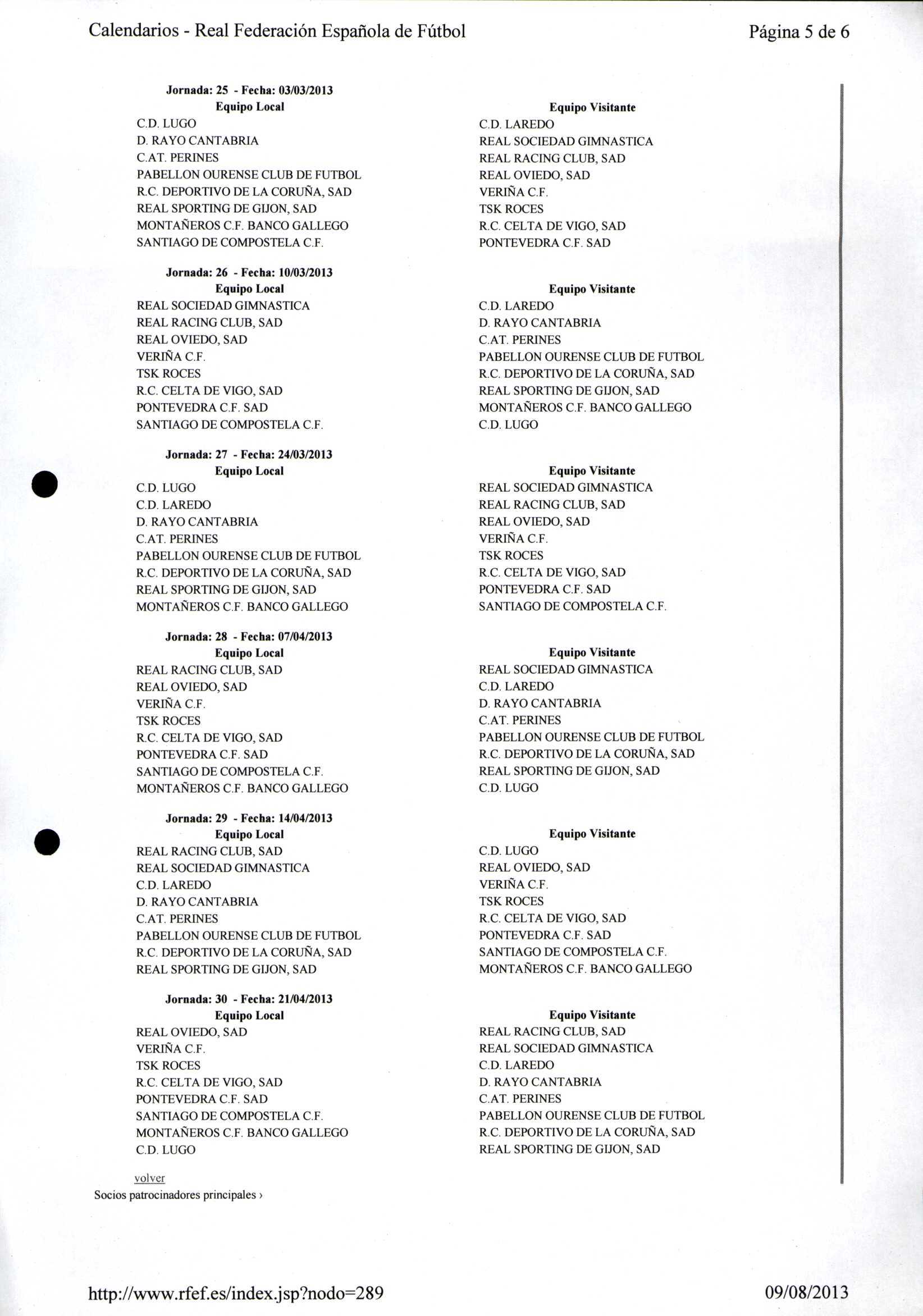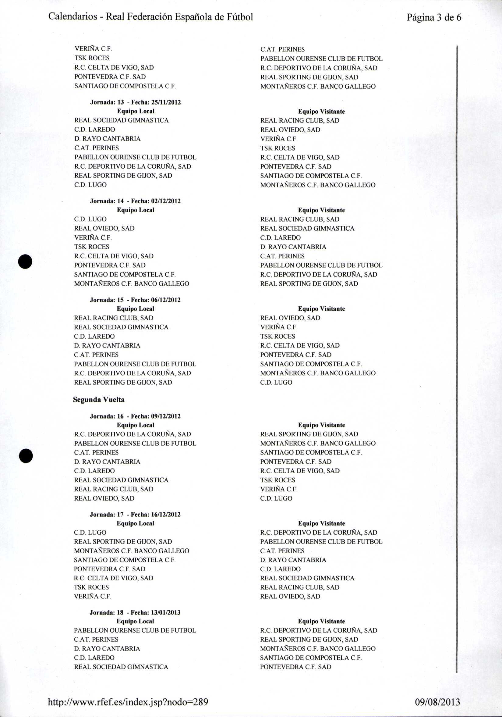 Calendario Tempada 2012-2014