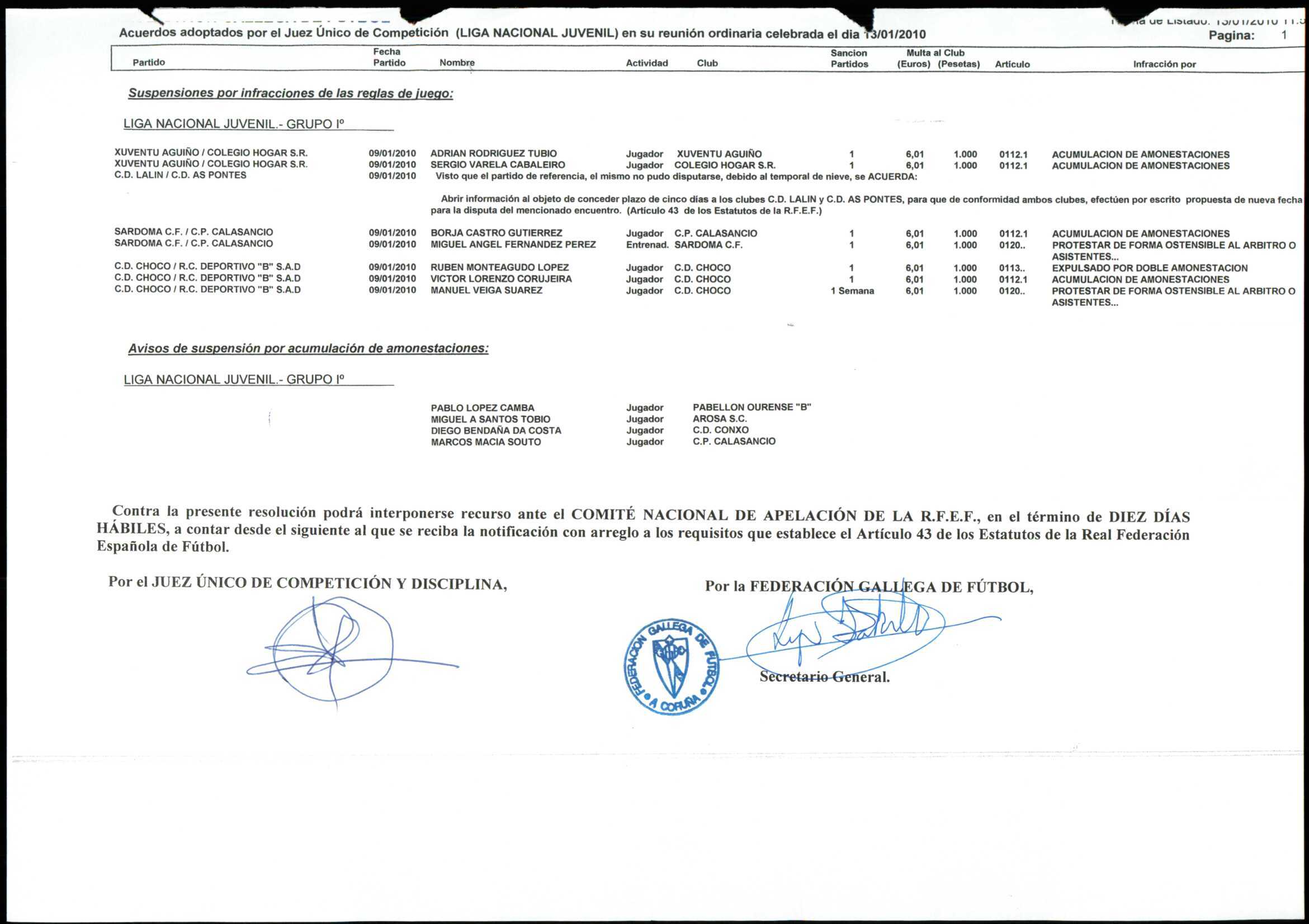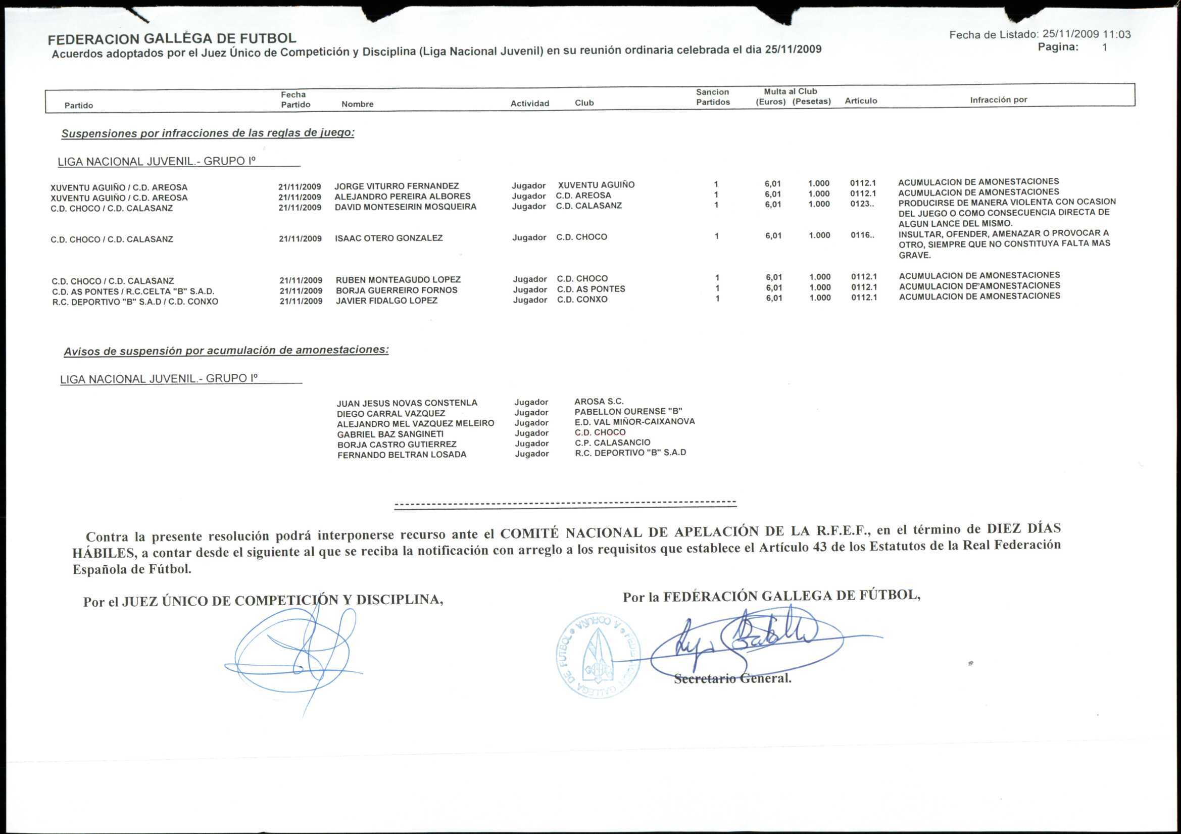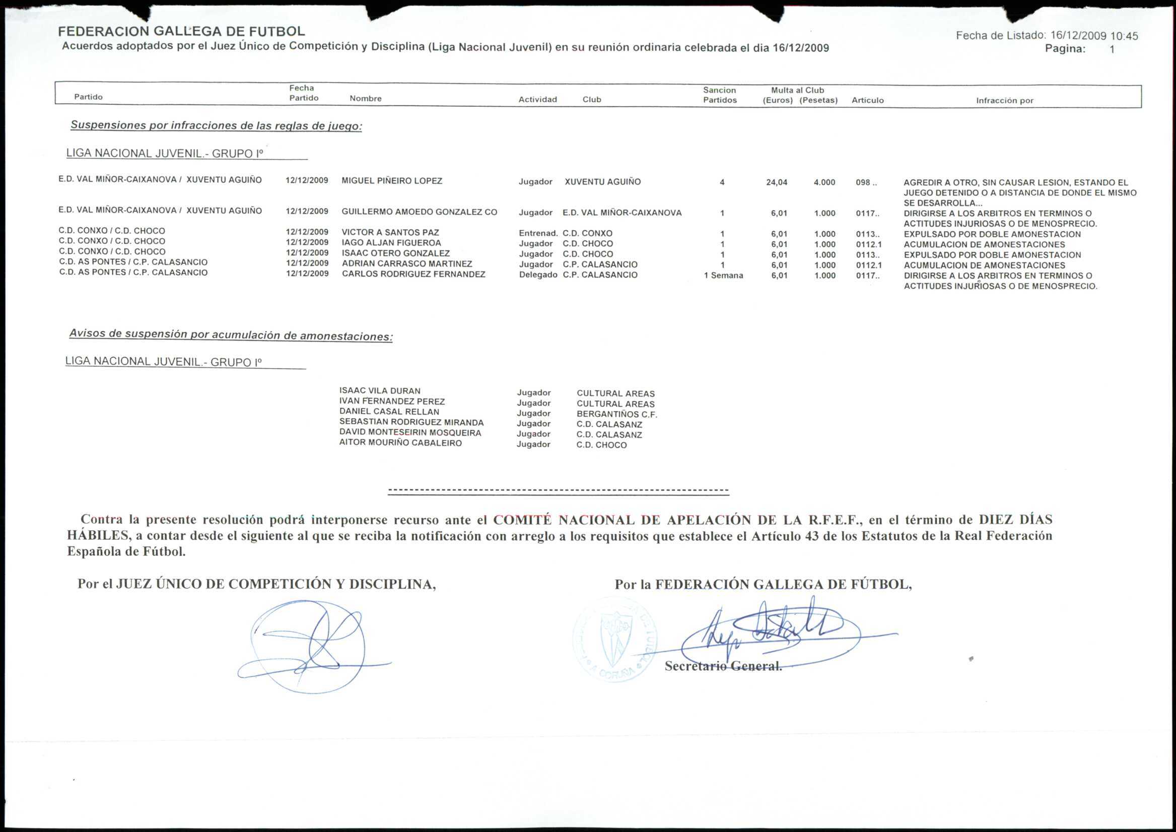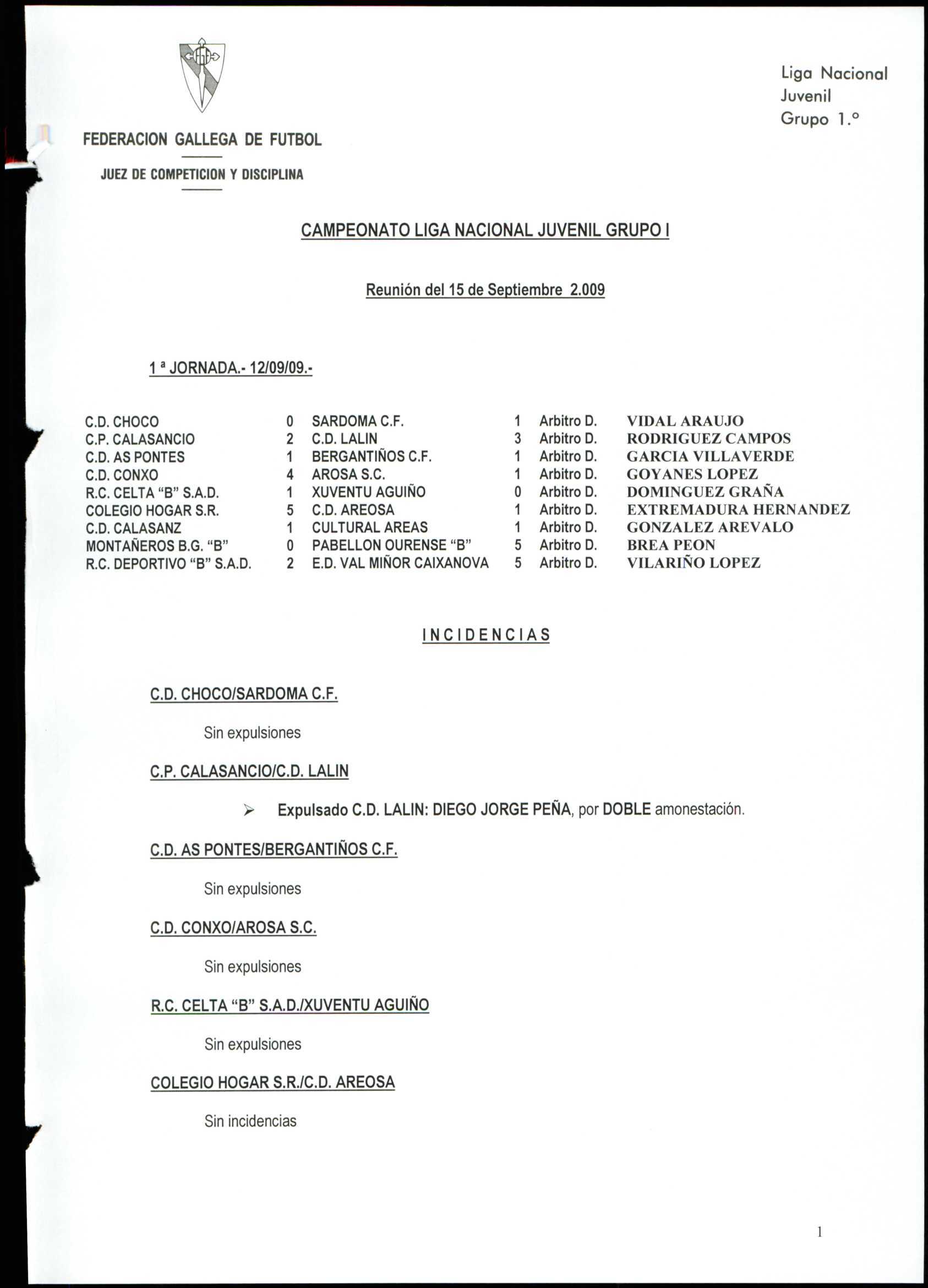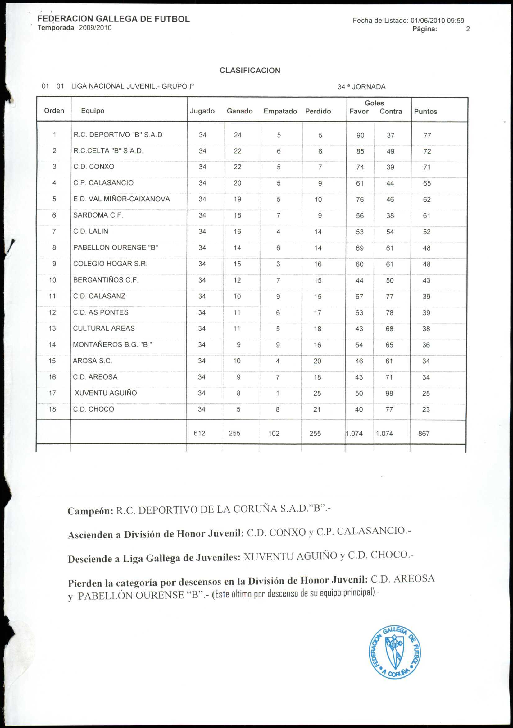 LIGA NACIONAL JUVENIL GRUPO 1 TEMPORADA 2009/10