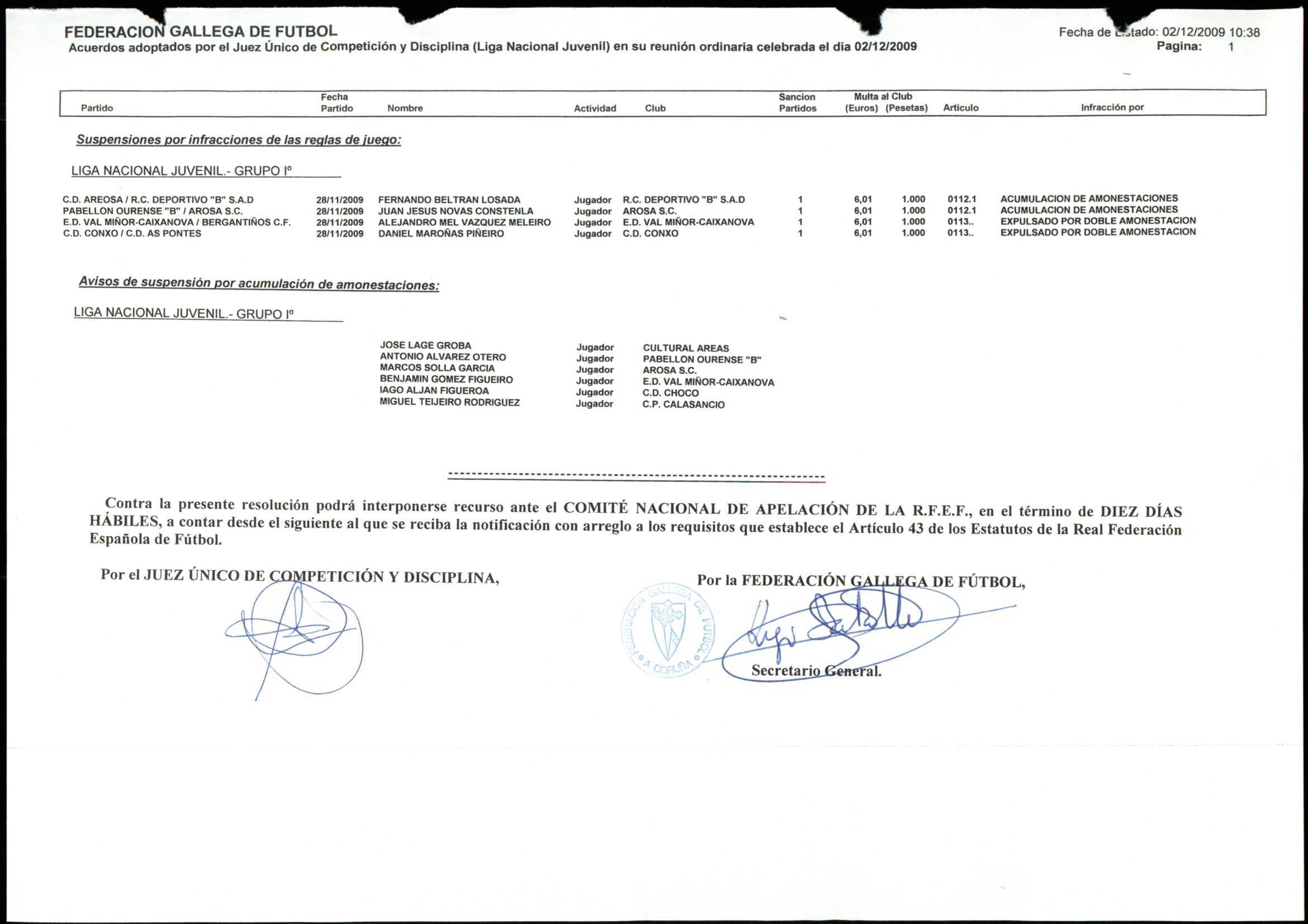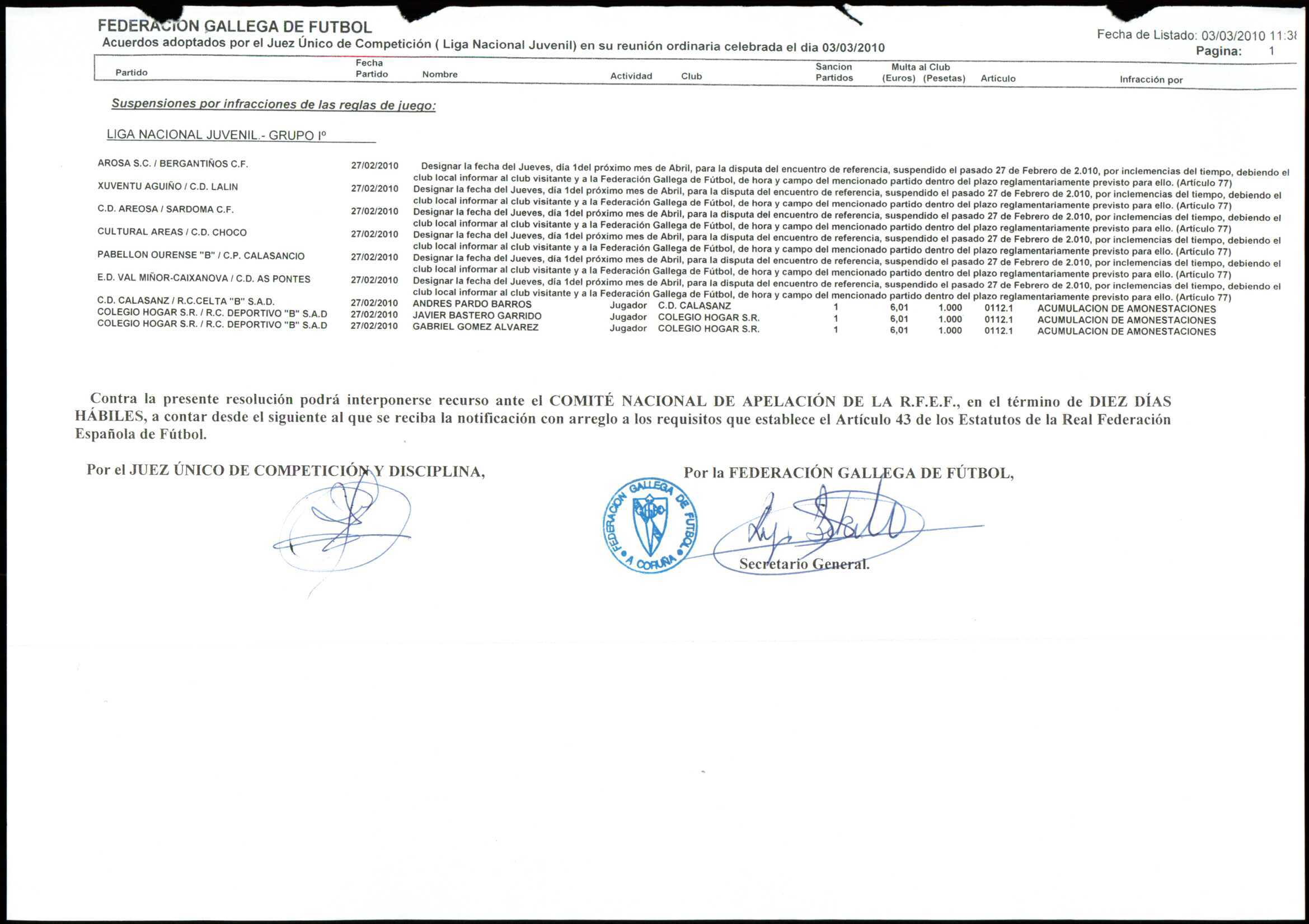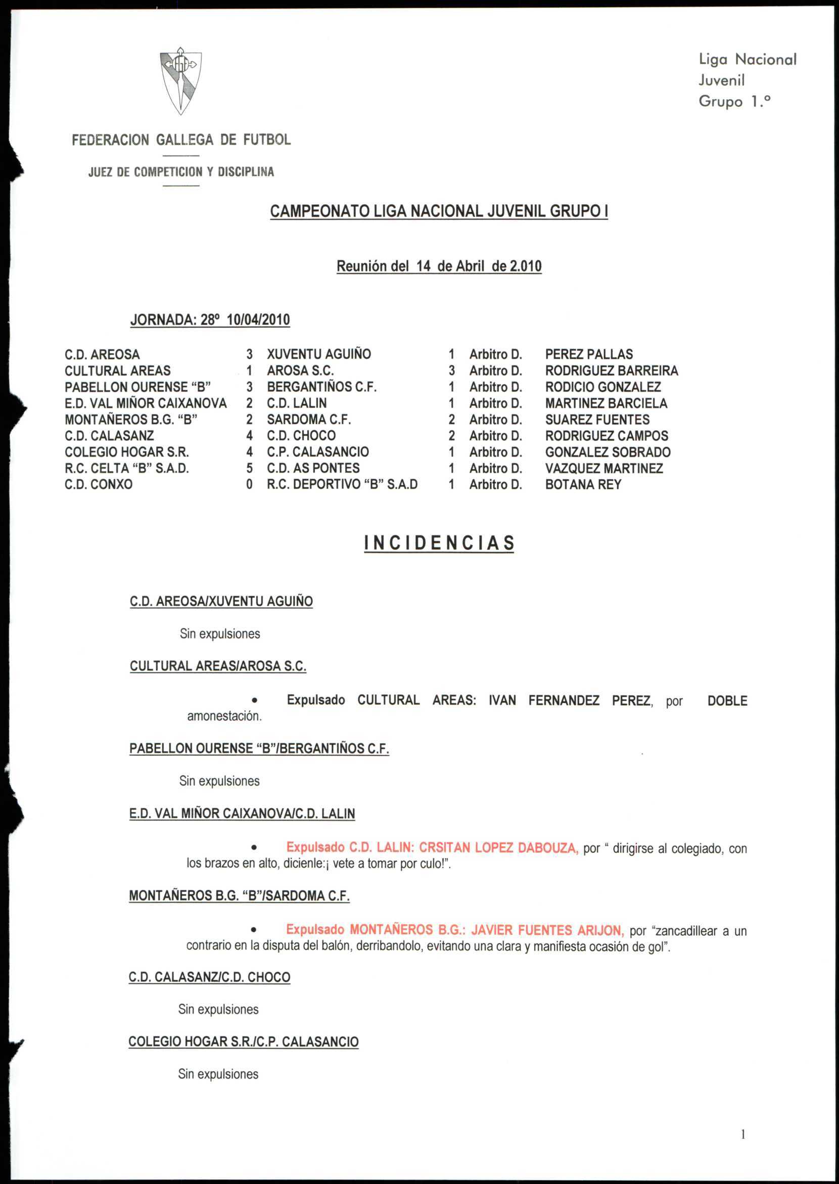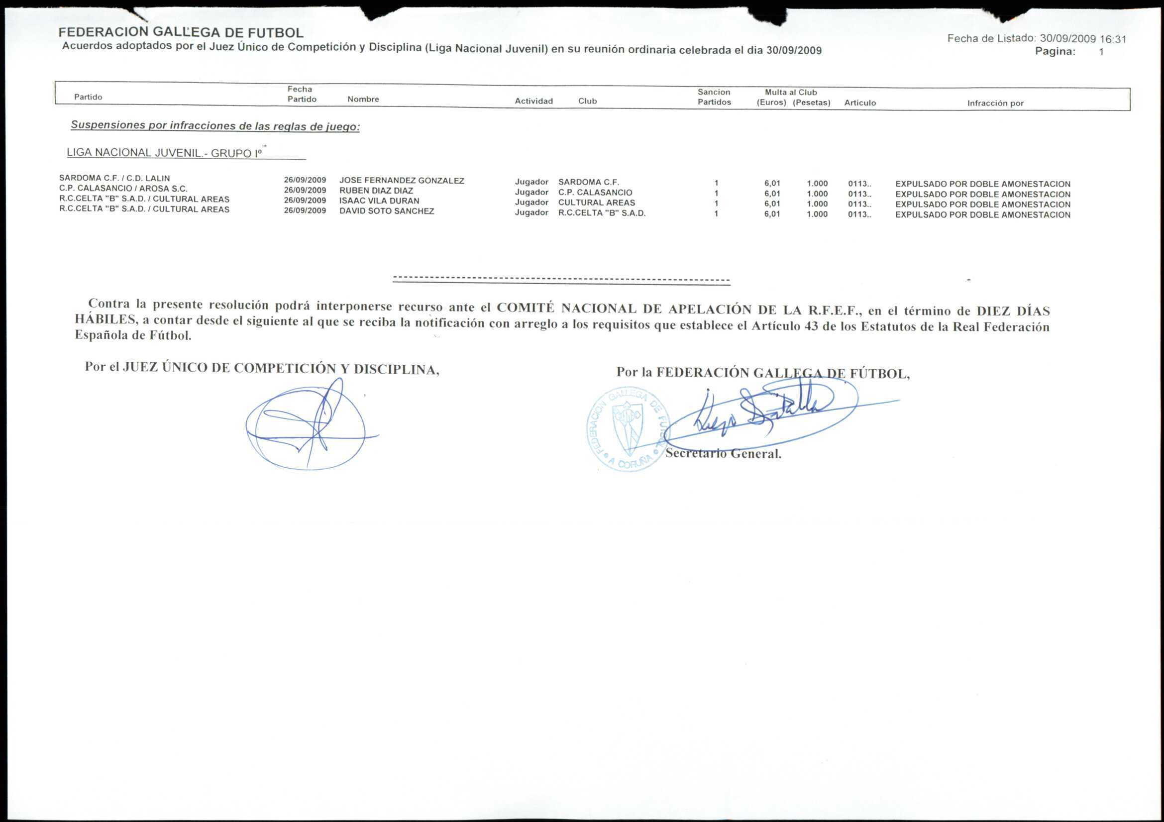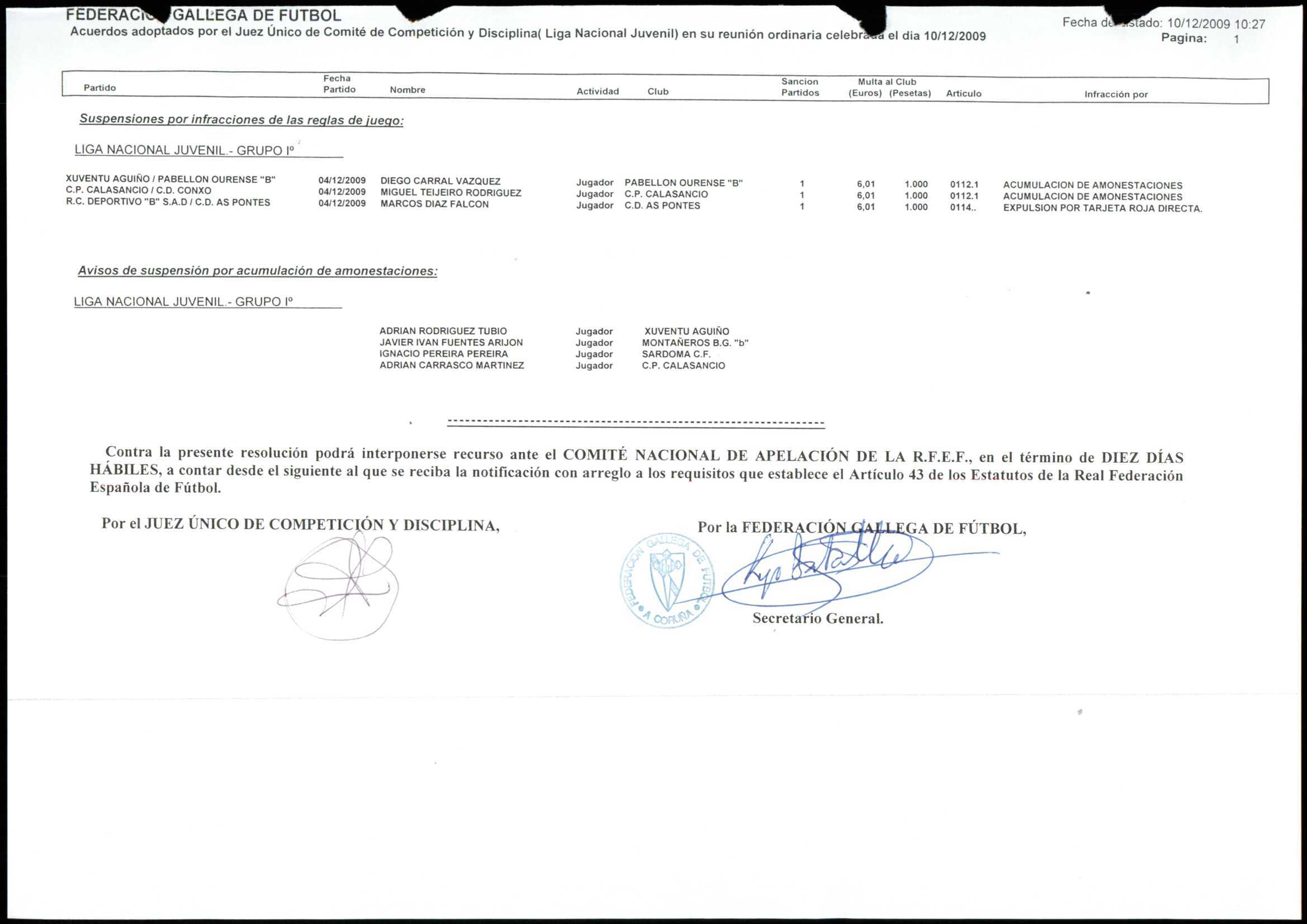 LIGA NACIONAL JUVENIL GRUPO 1 TEMPORADA 2009/10