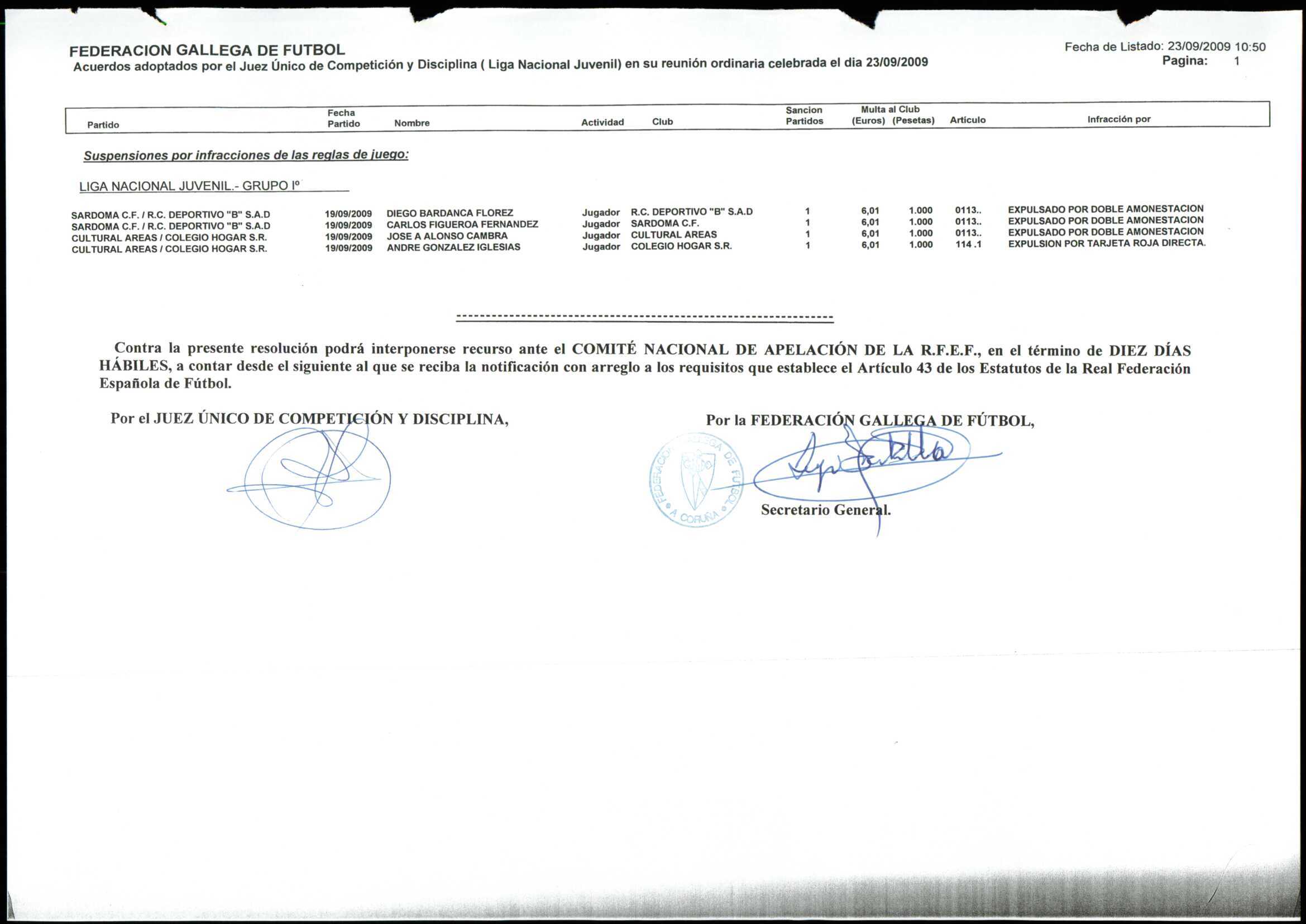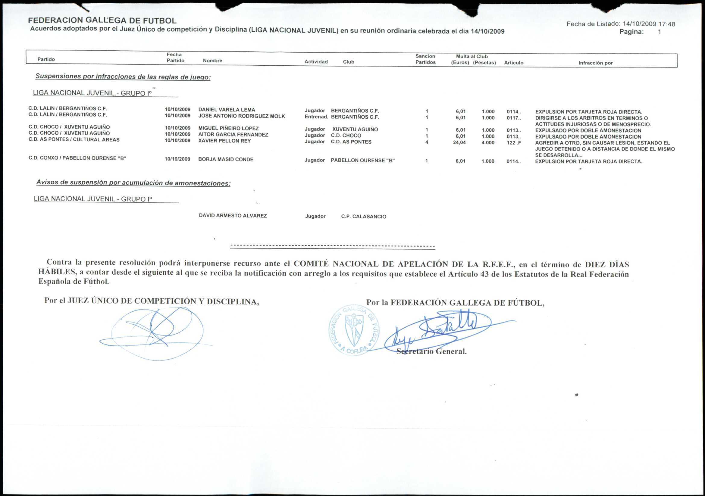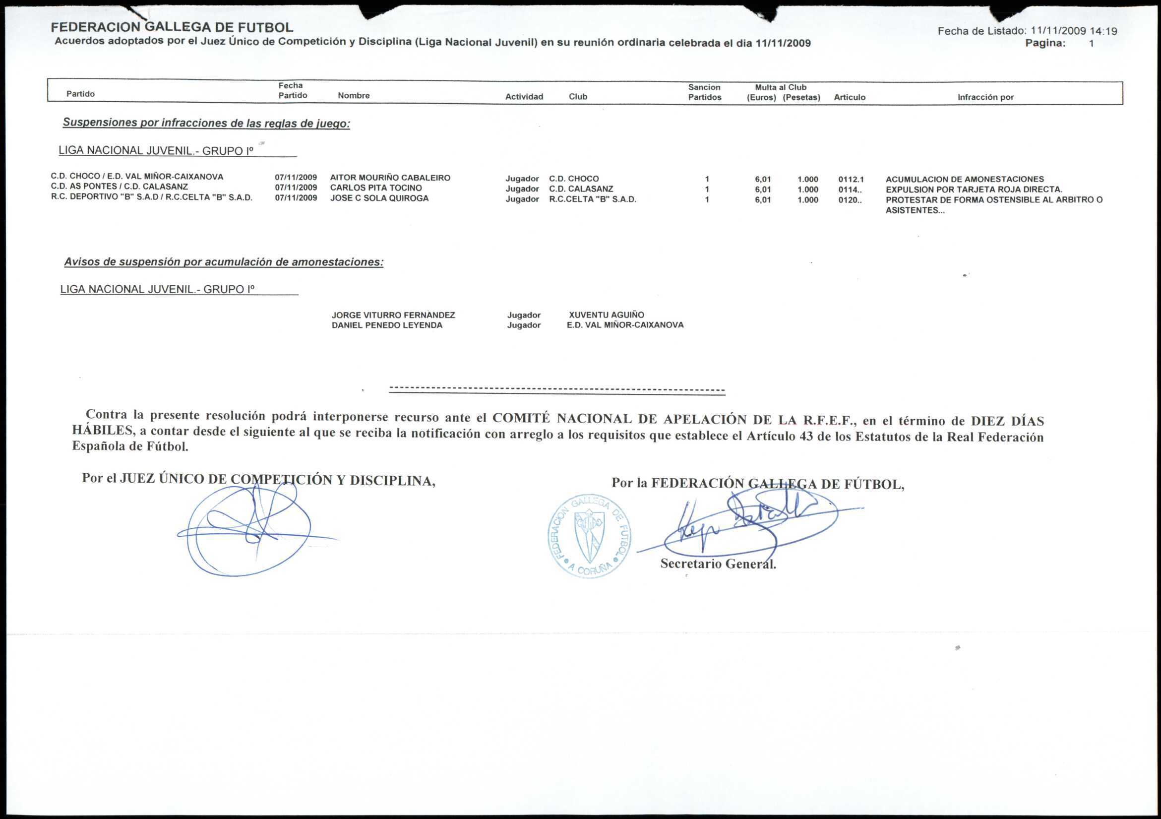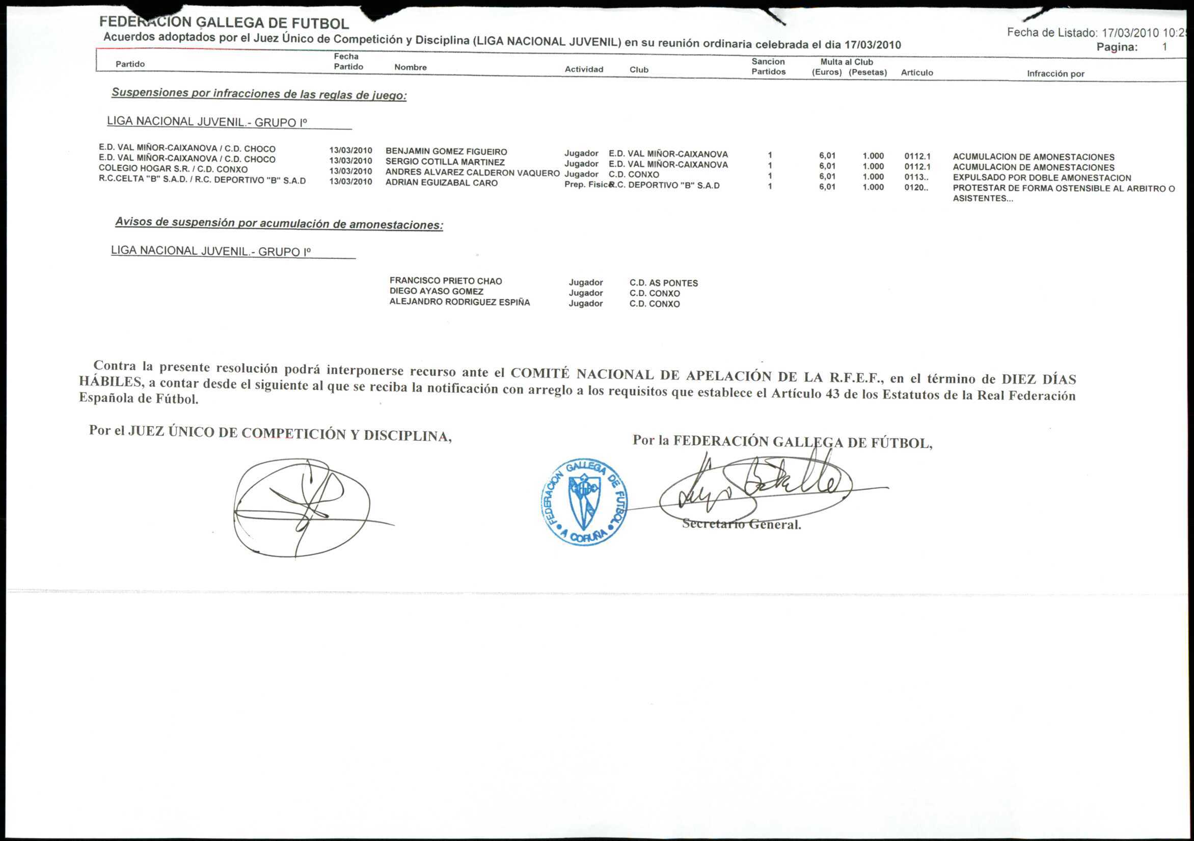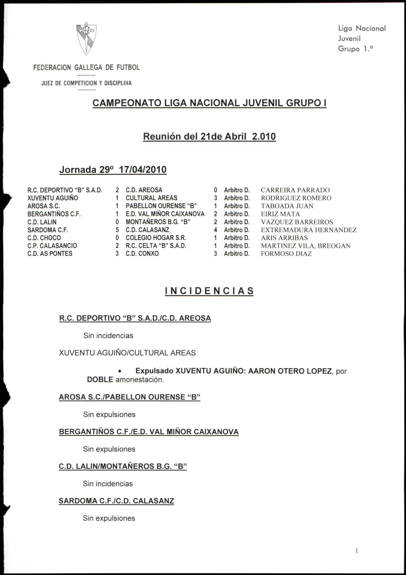 LIGA NACIONAL JUVENIL GRUPO 1 TEMPORADA 2009/10