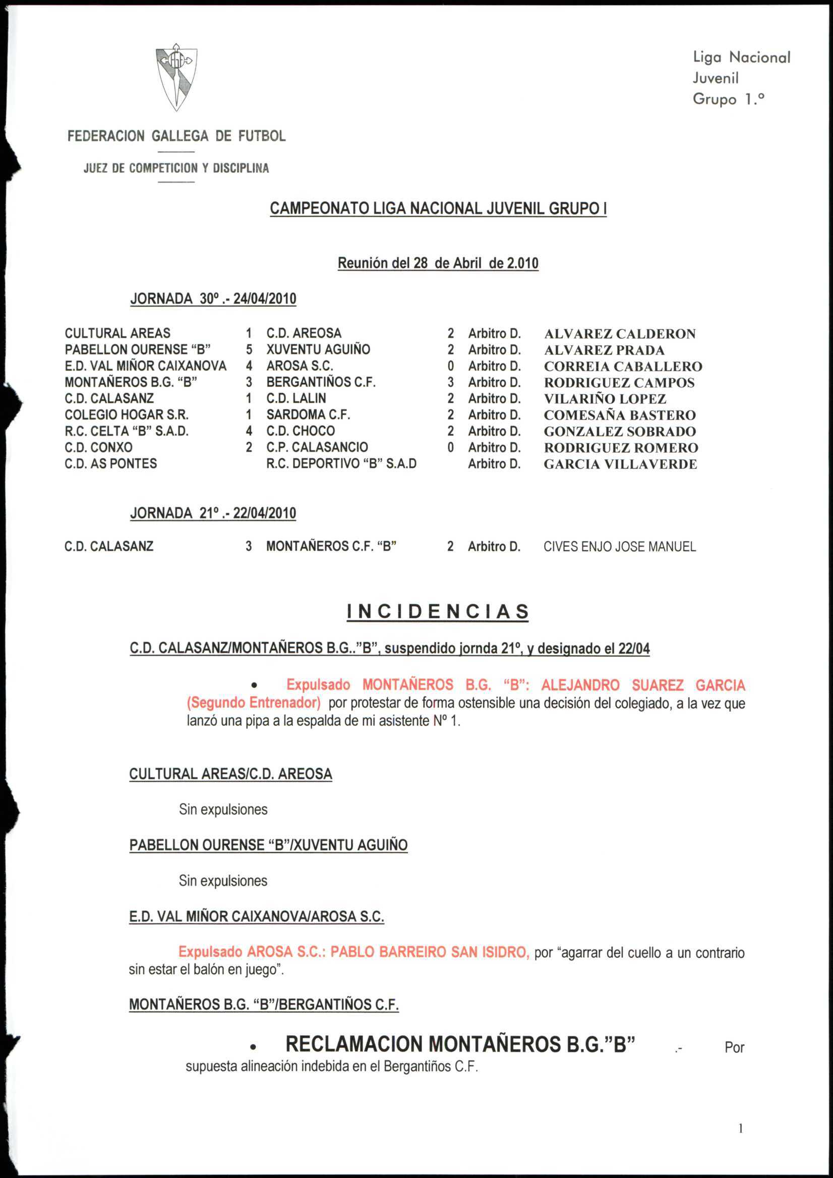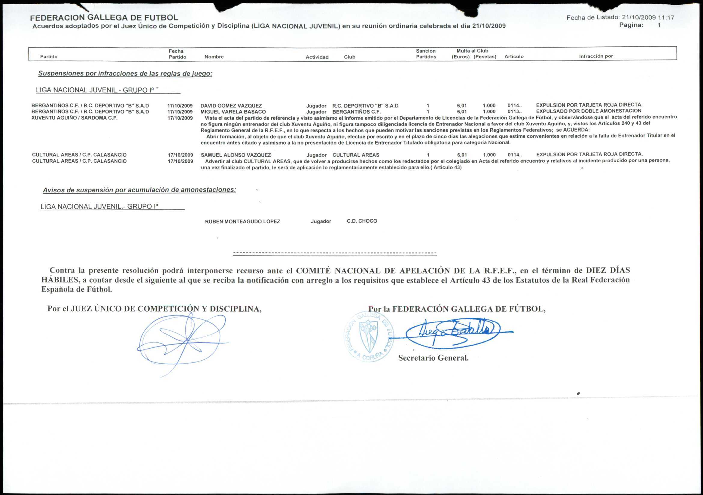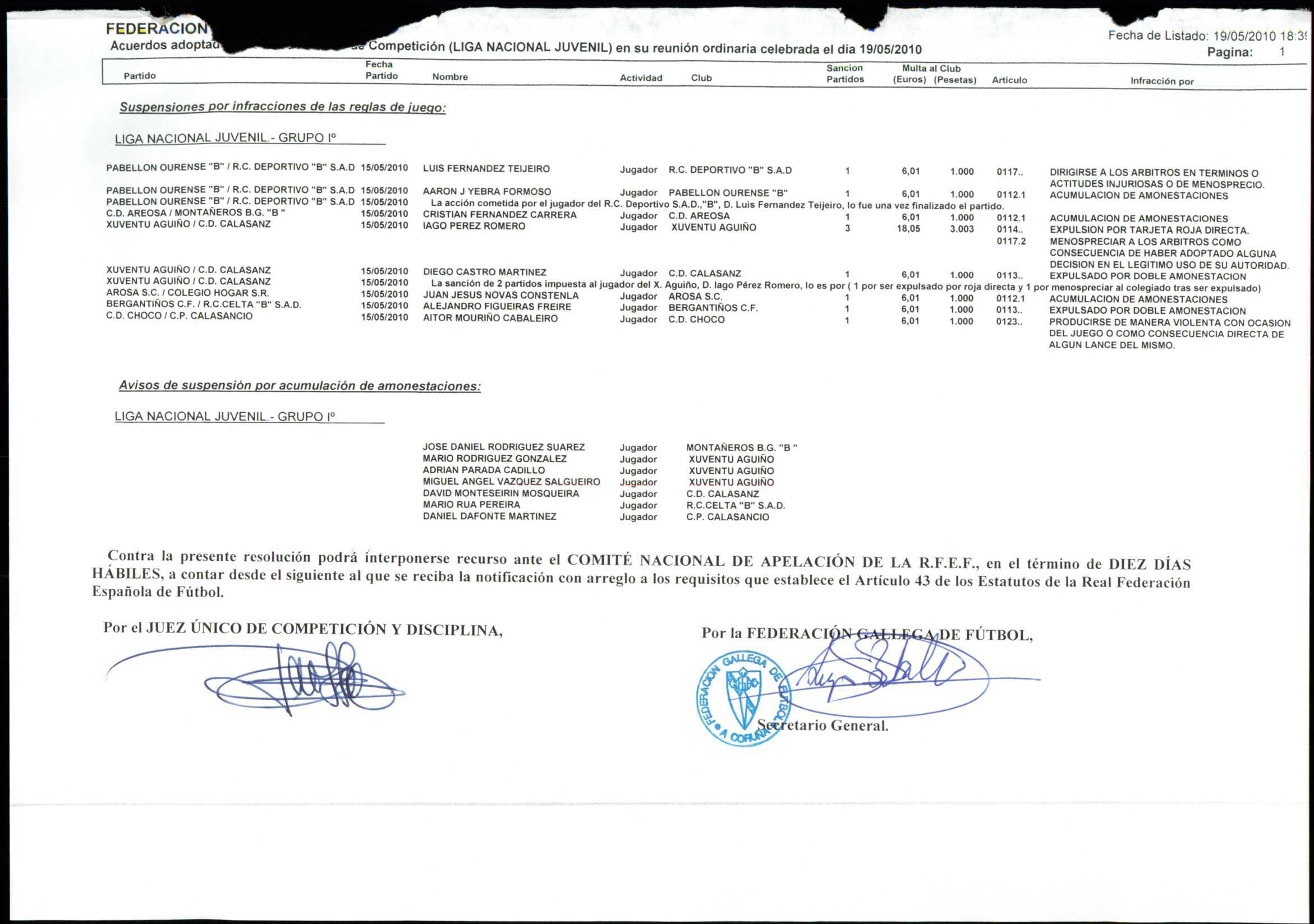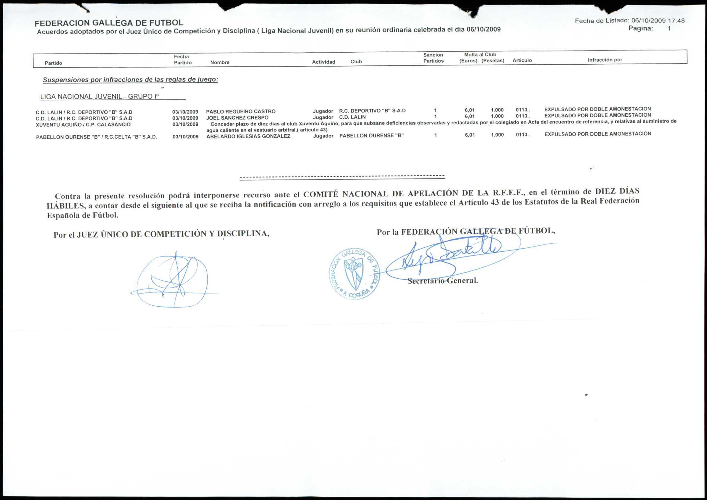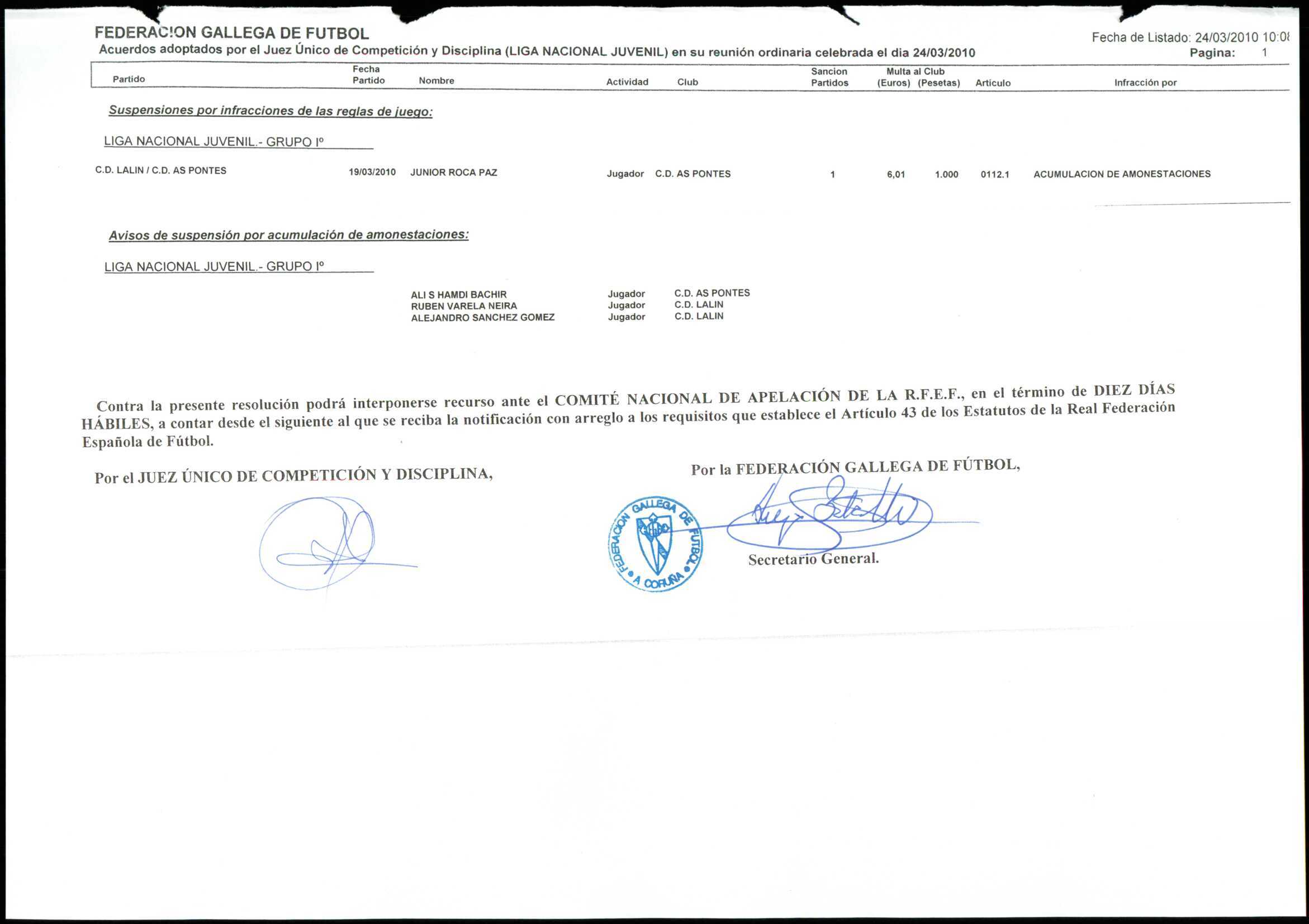 LIGA NACIONAL JUVENIL GRUPO 1 TEMPORADA 2009/10