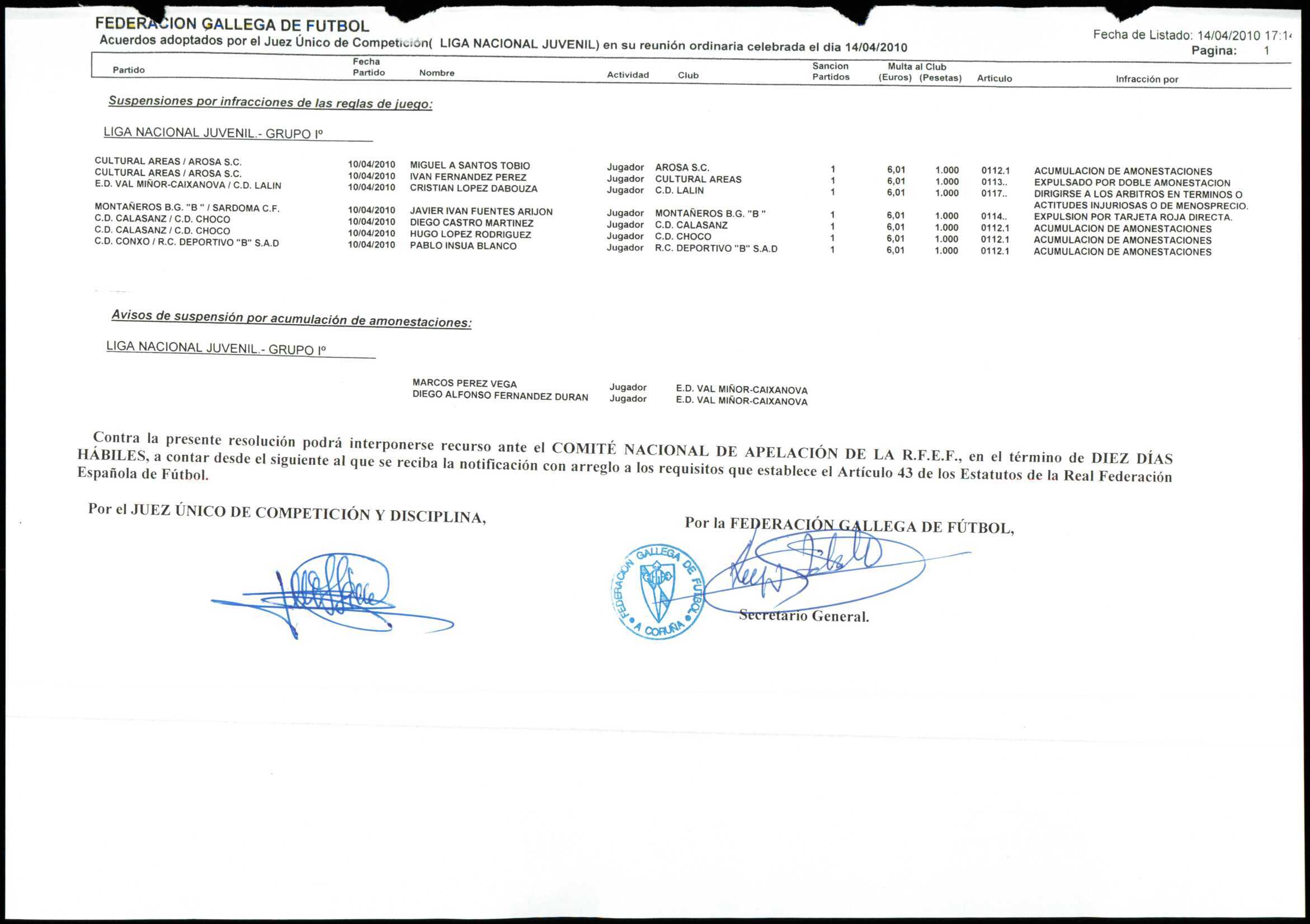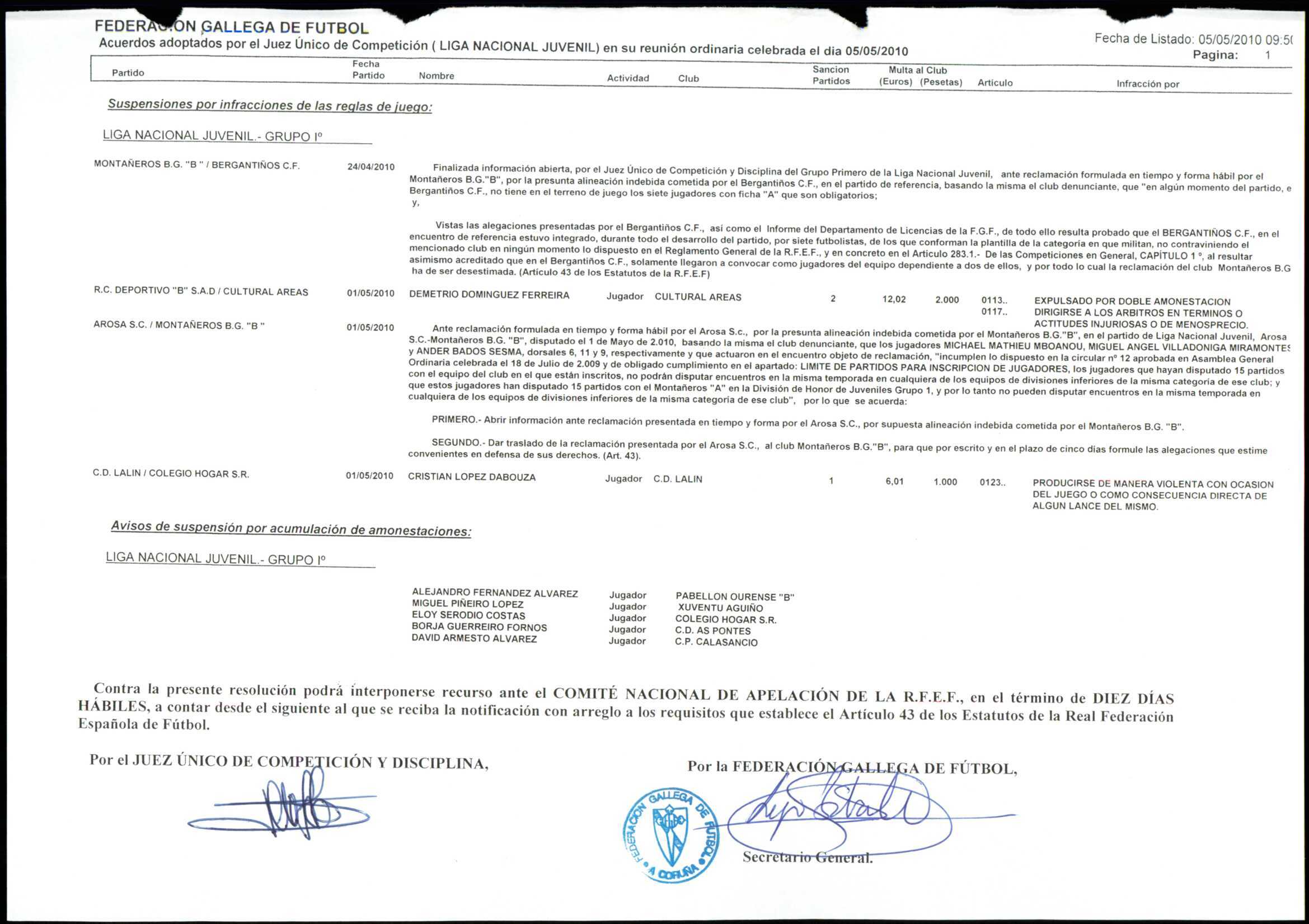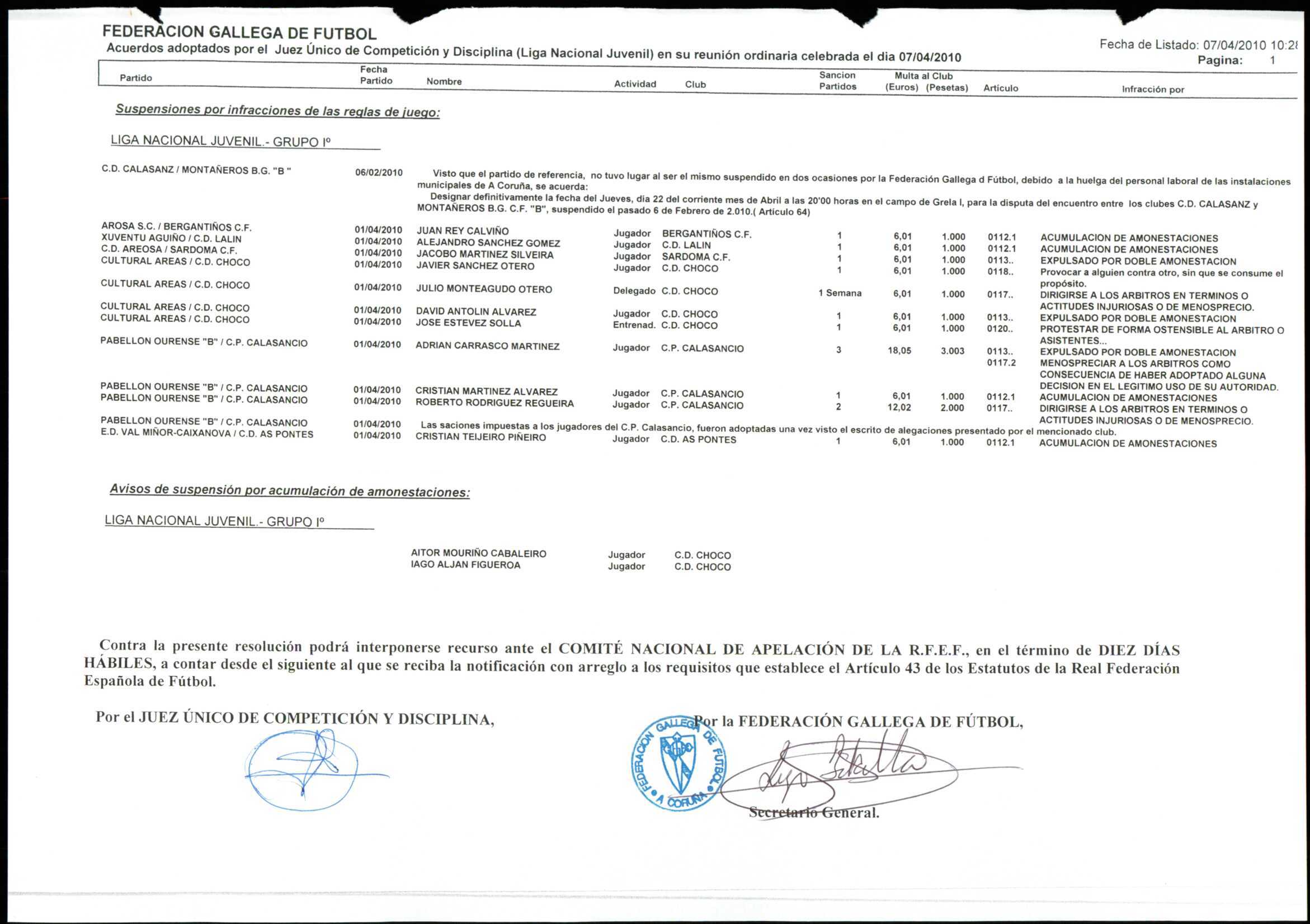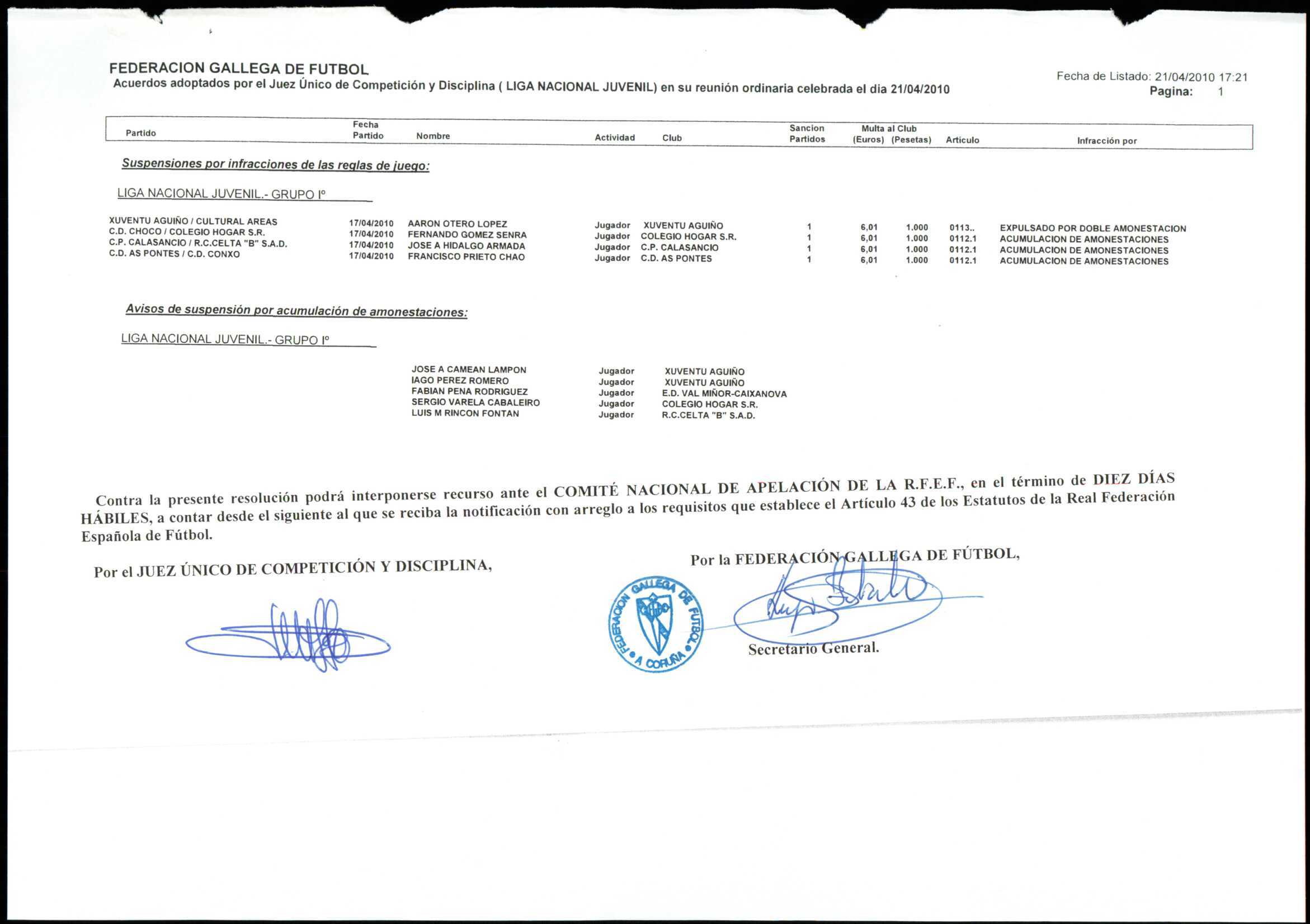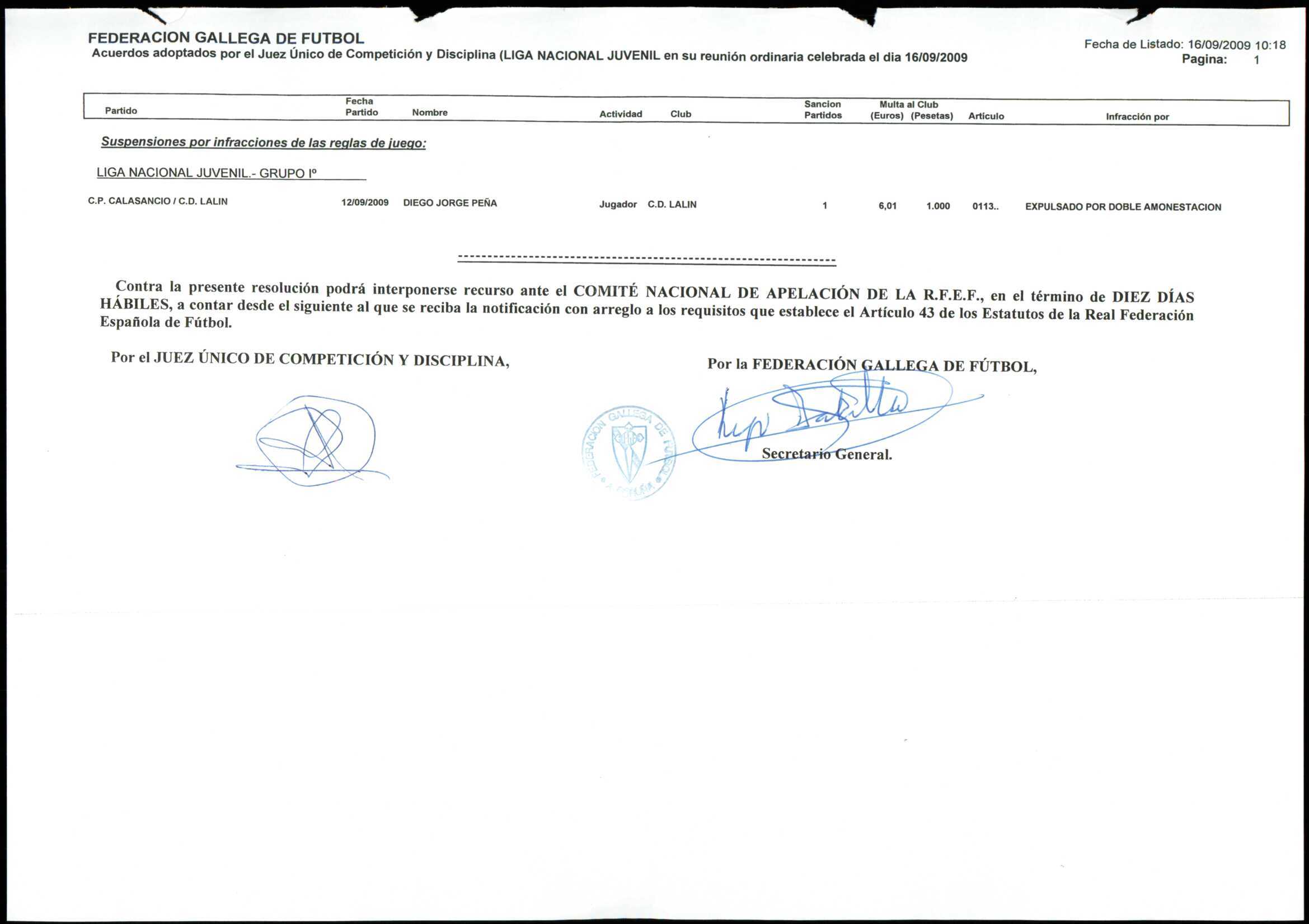 LIGA NACIONAL JUVENIL GRUPO 1 TEMPORADA 2009/10