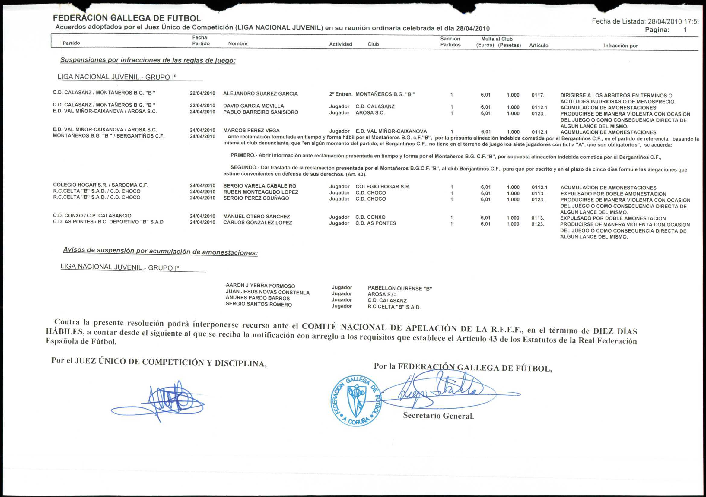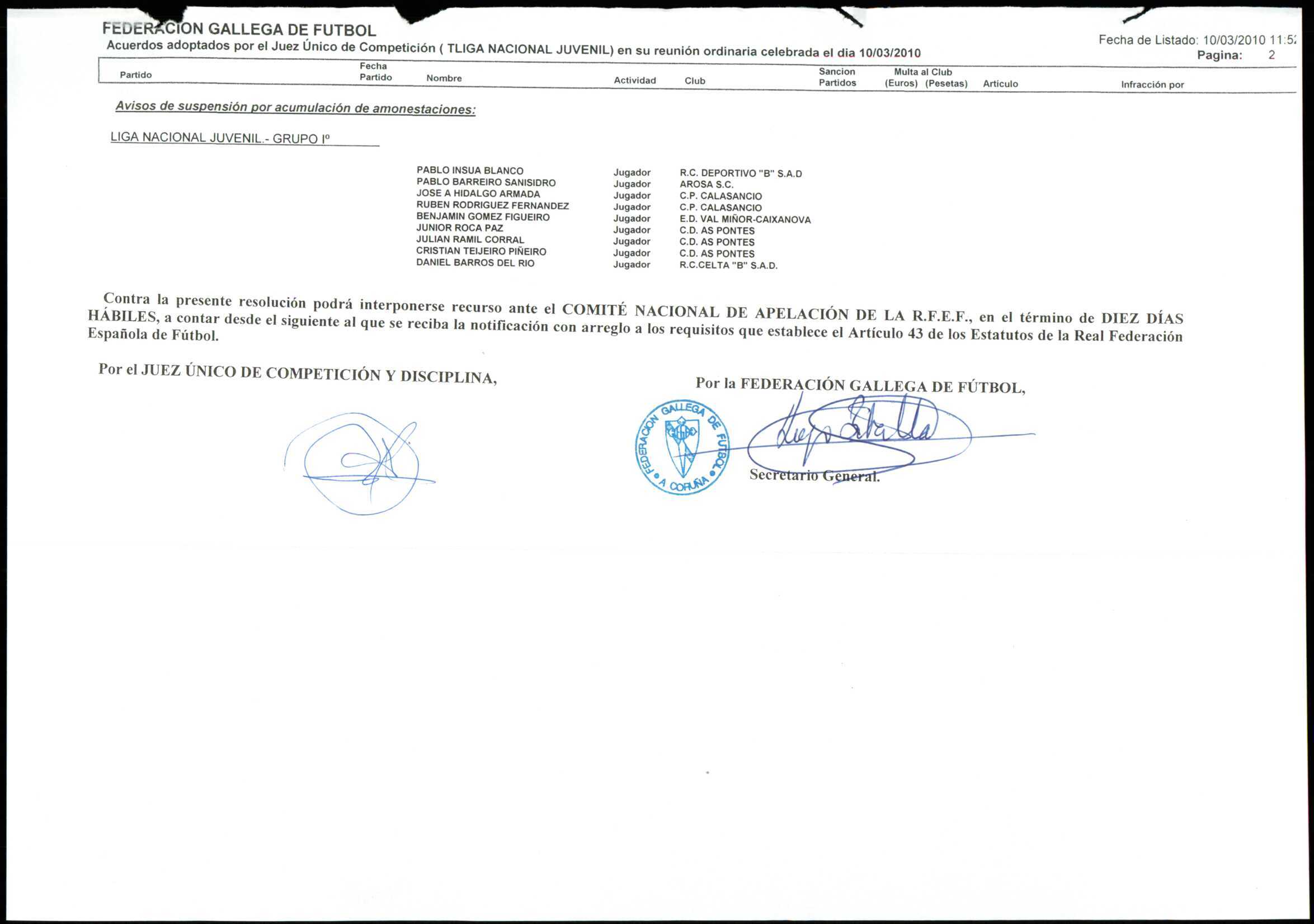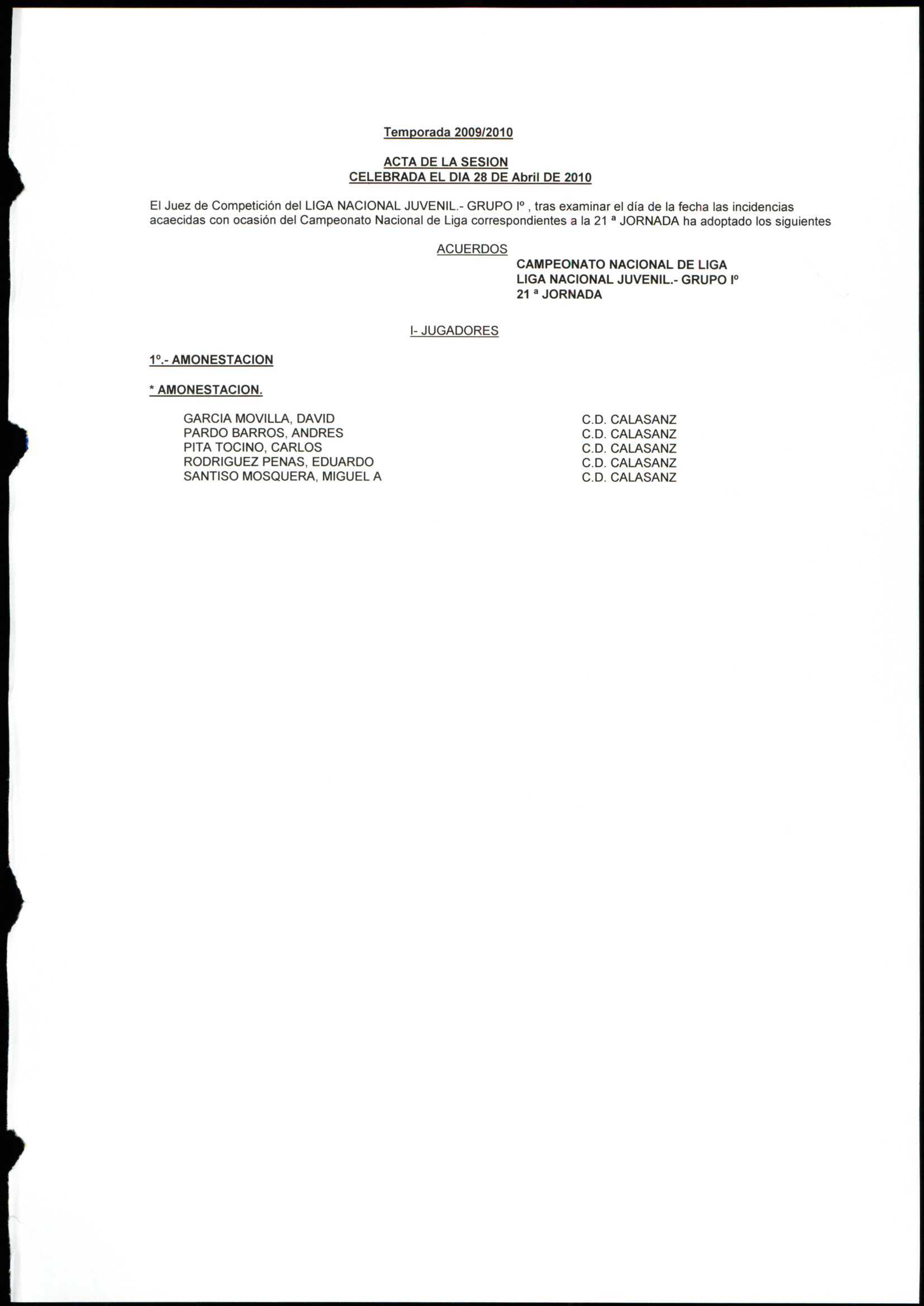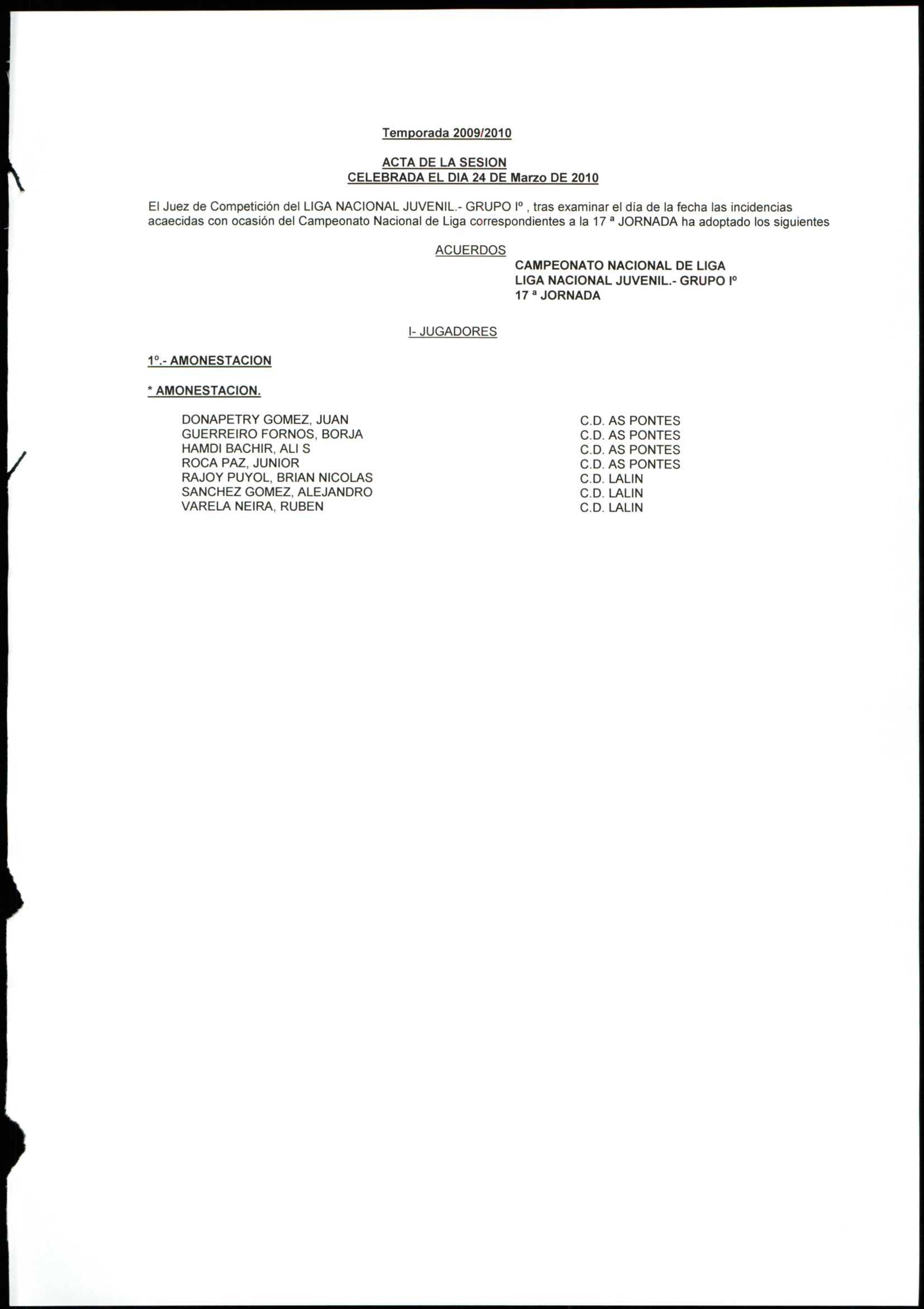 Unidade documental simple 78/4 - LIGA NACIONAL JUVENIL GRUPO 1 TEMPORADA 2009/10
