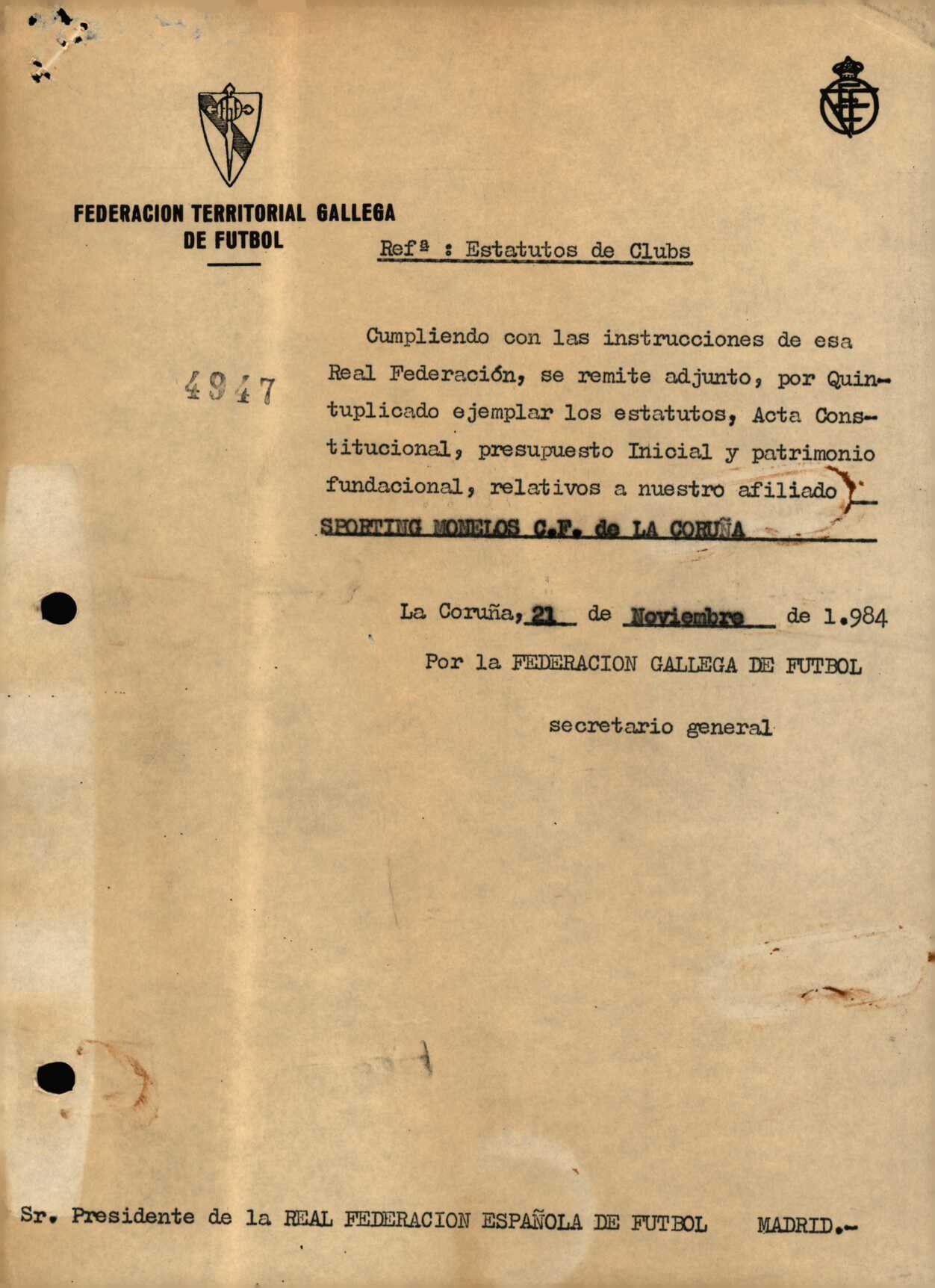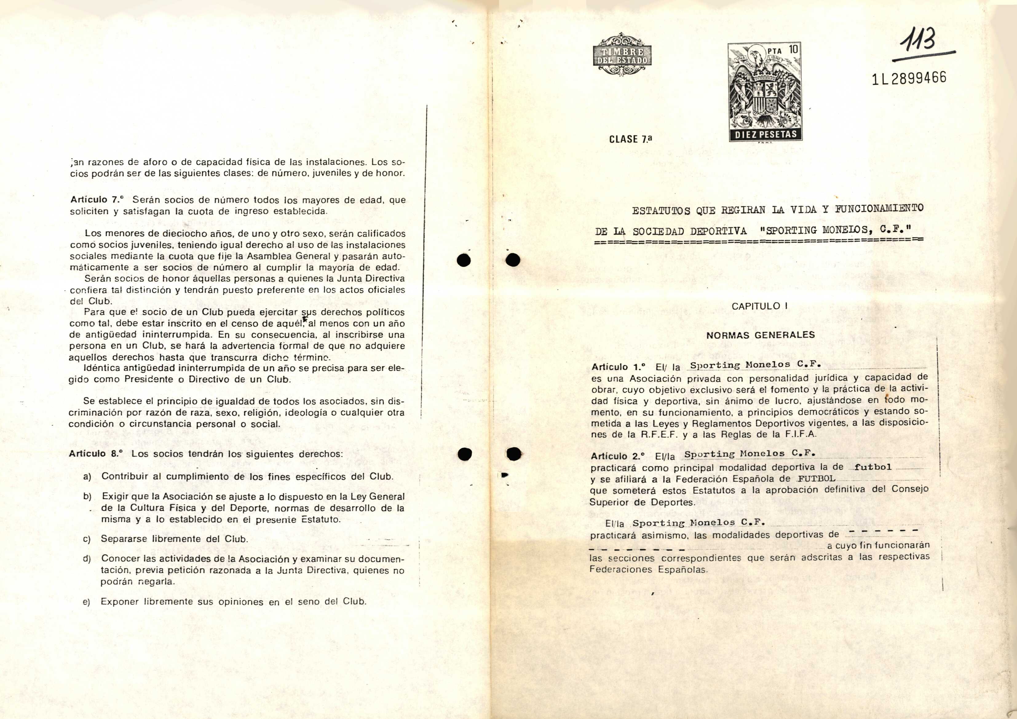 R. 1-113. SPORTING MONELOS C.F. A Coruña