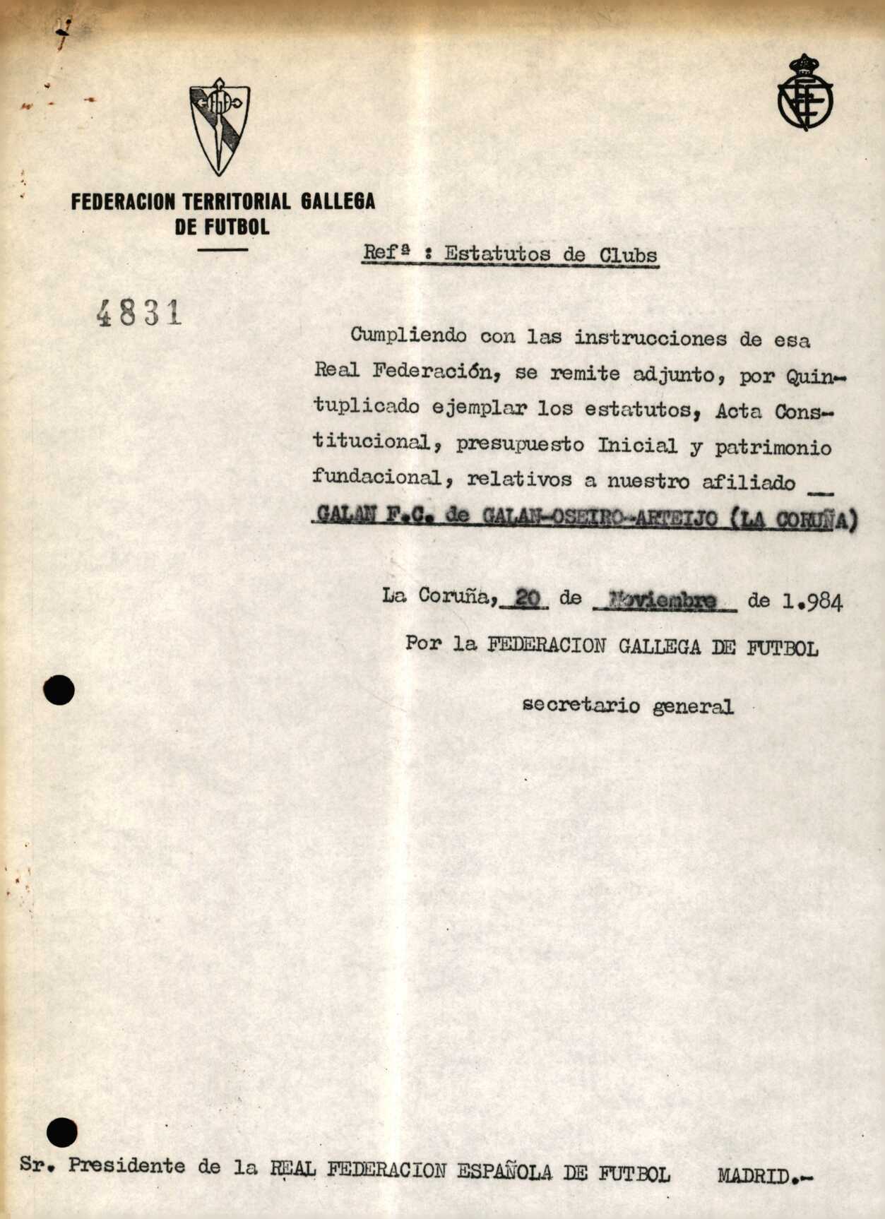R. 1-139. GALÁN F.C. Oseiro, Arteixo