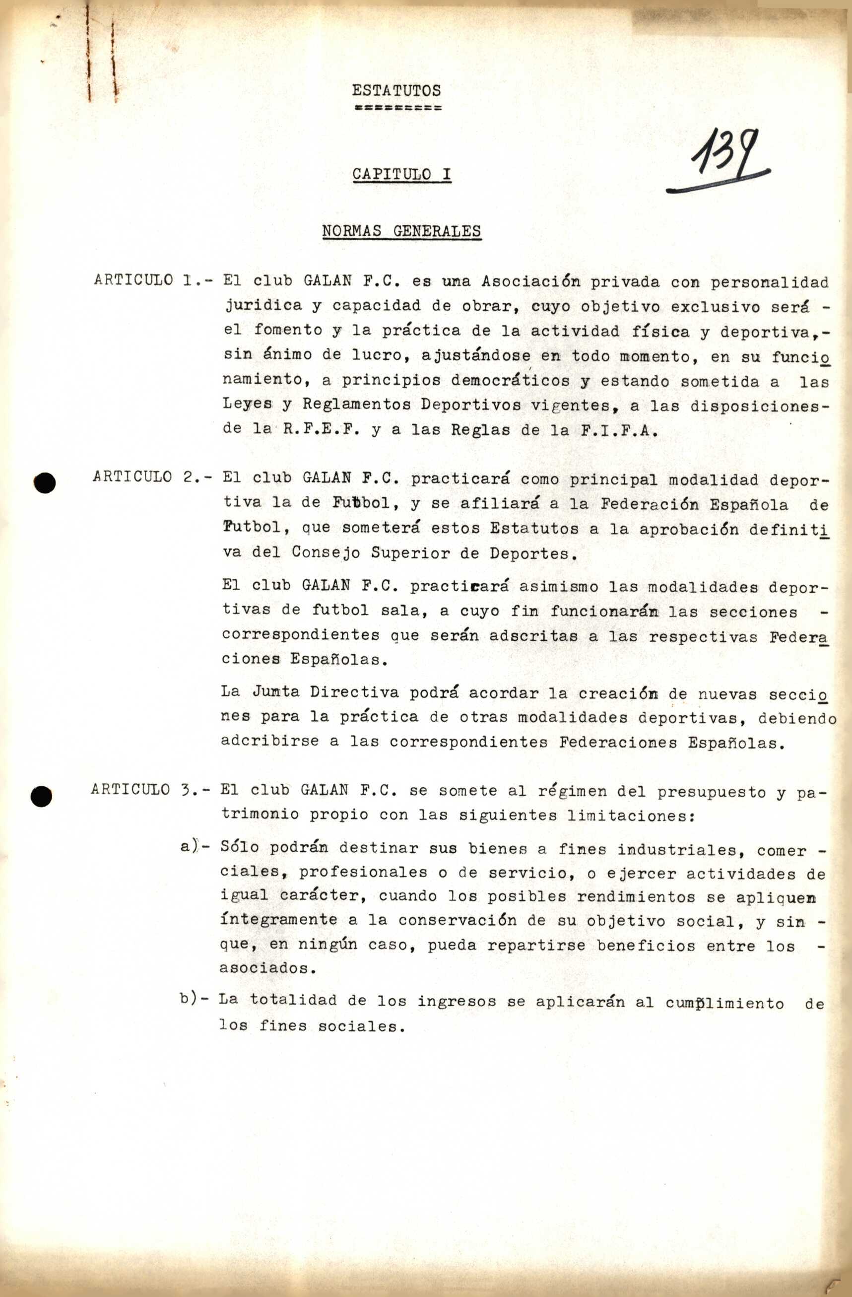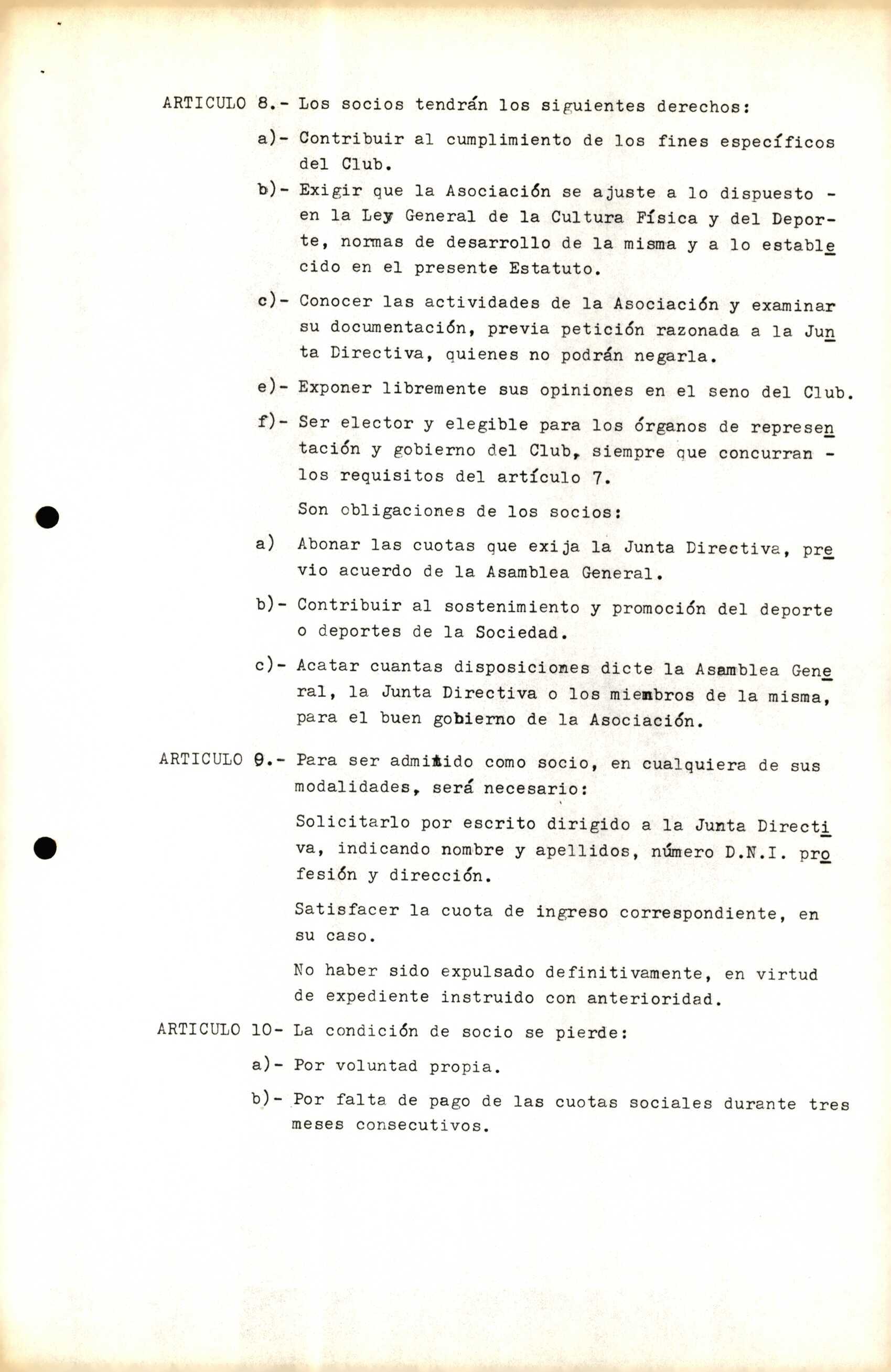Contén os estatutos da entidade deportiva