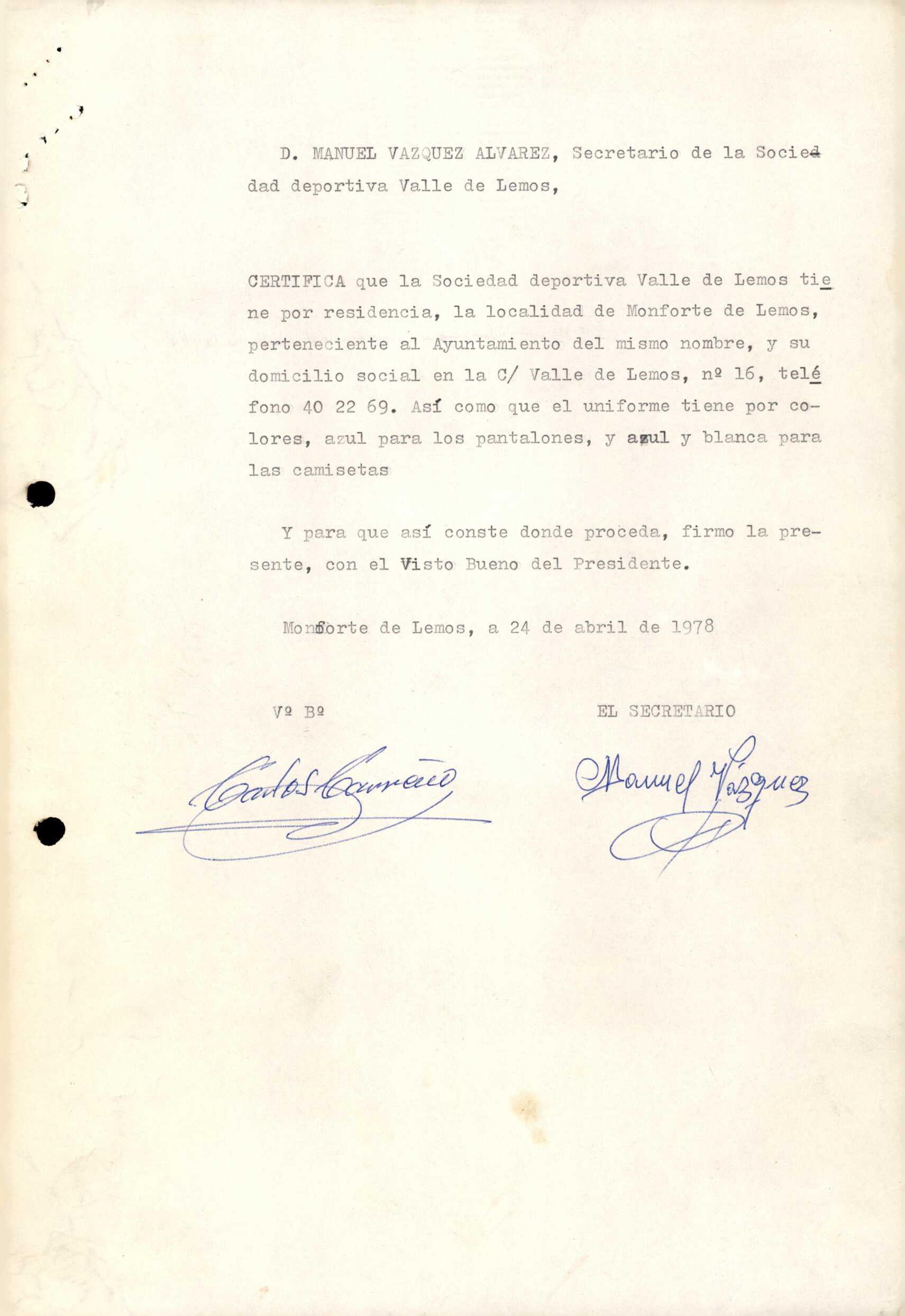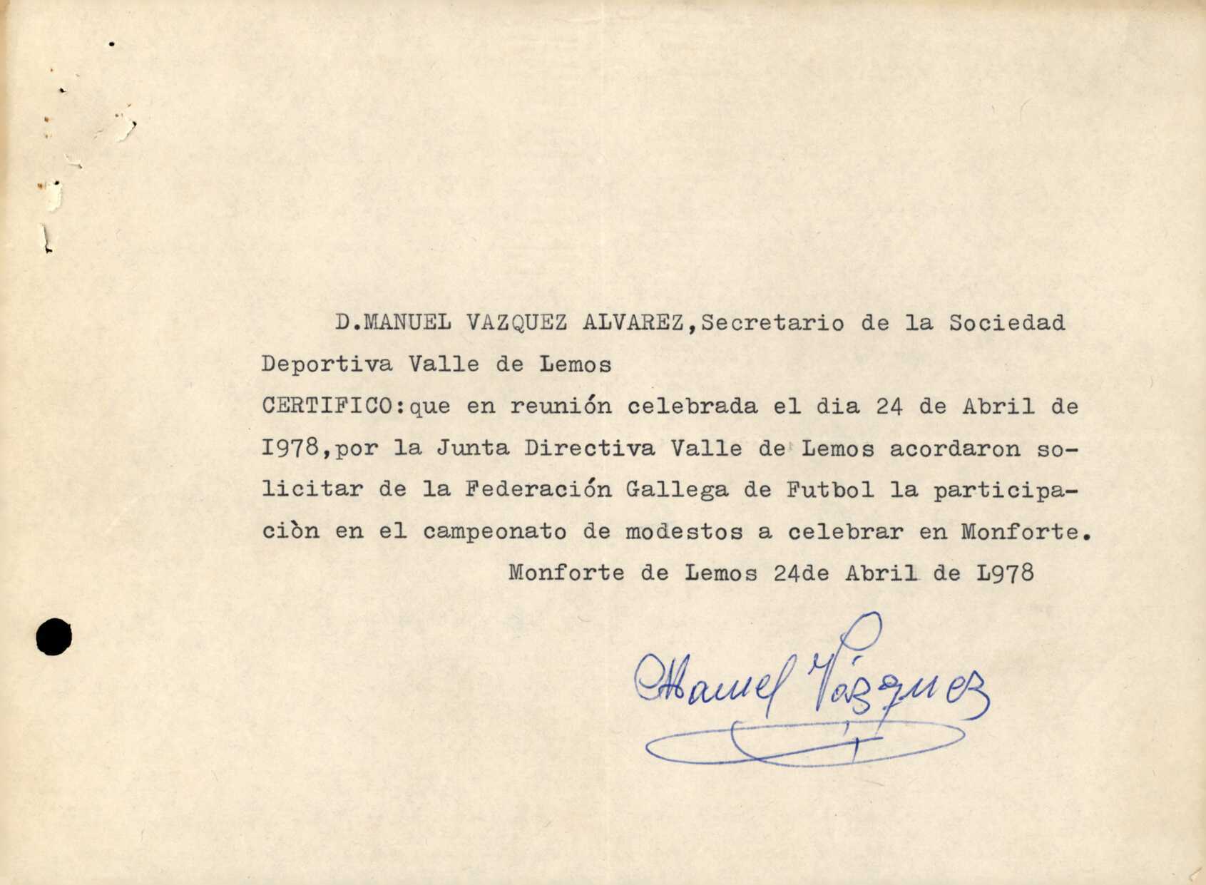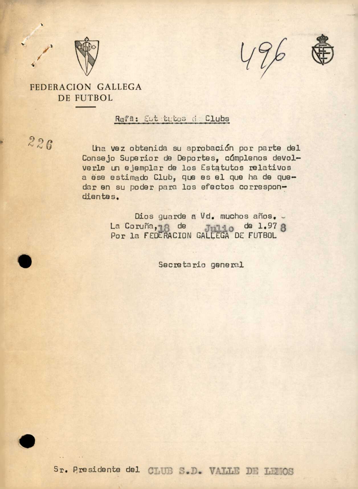 R. 1-496. CLUB S.D. VALLE DE LEMOS. Monforte de Lemos