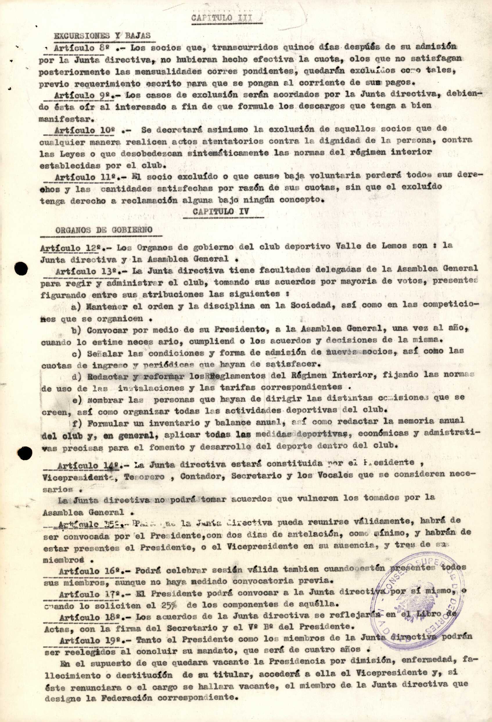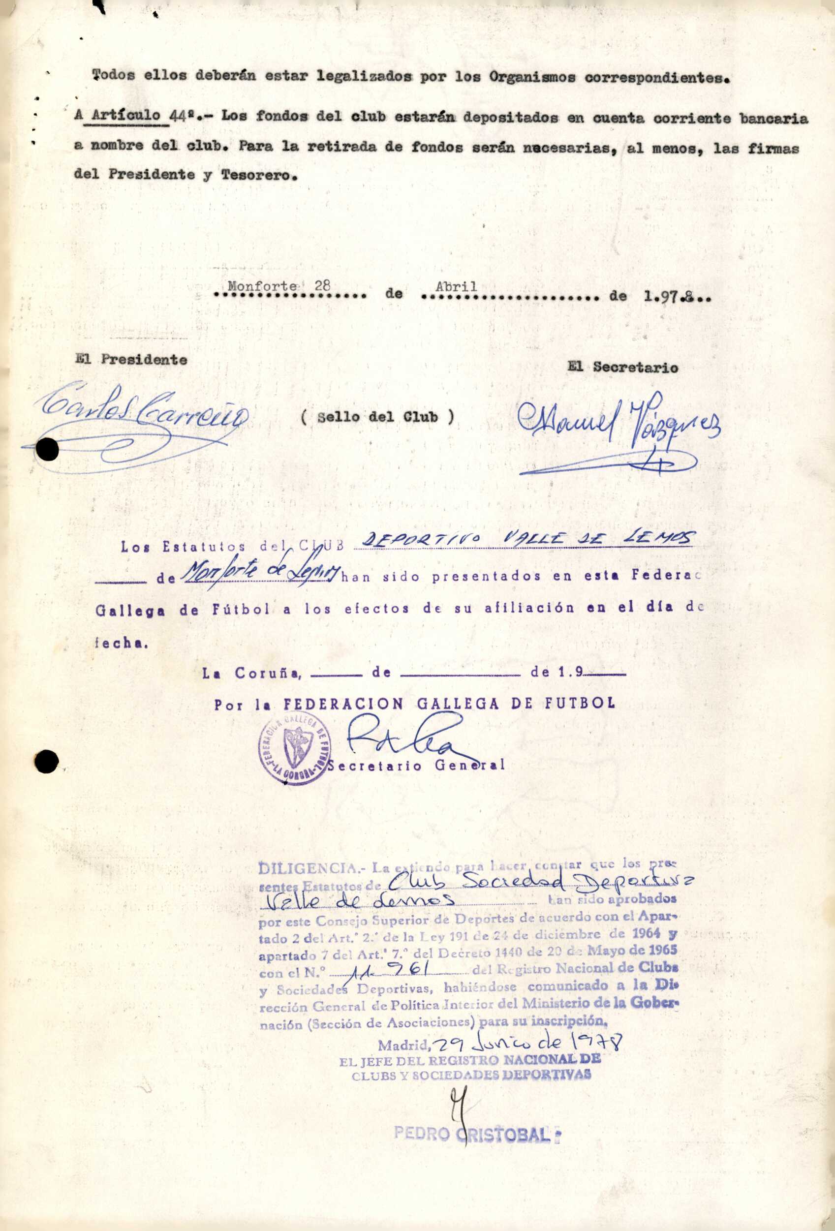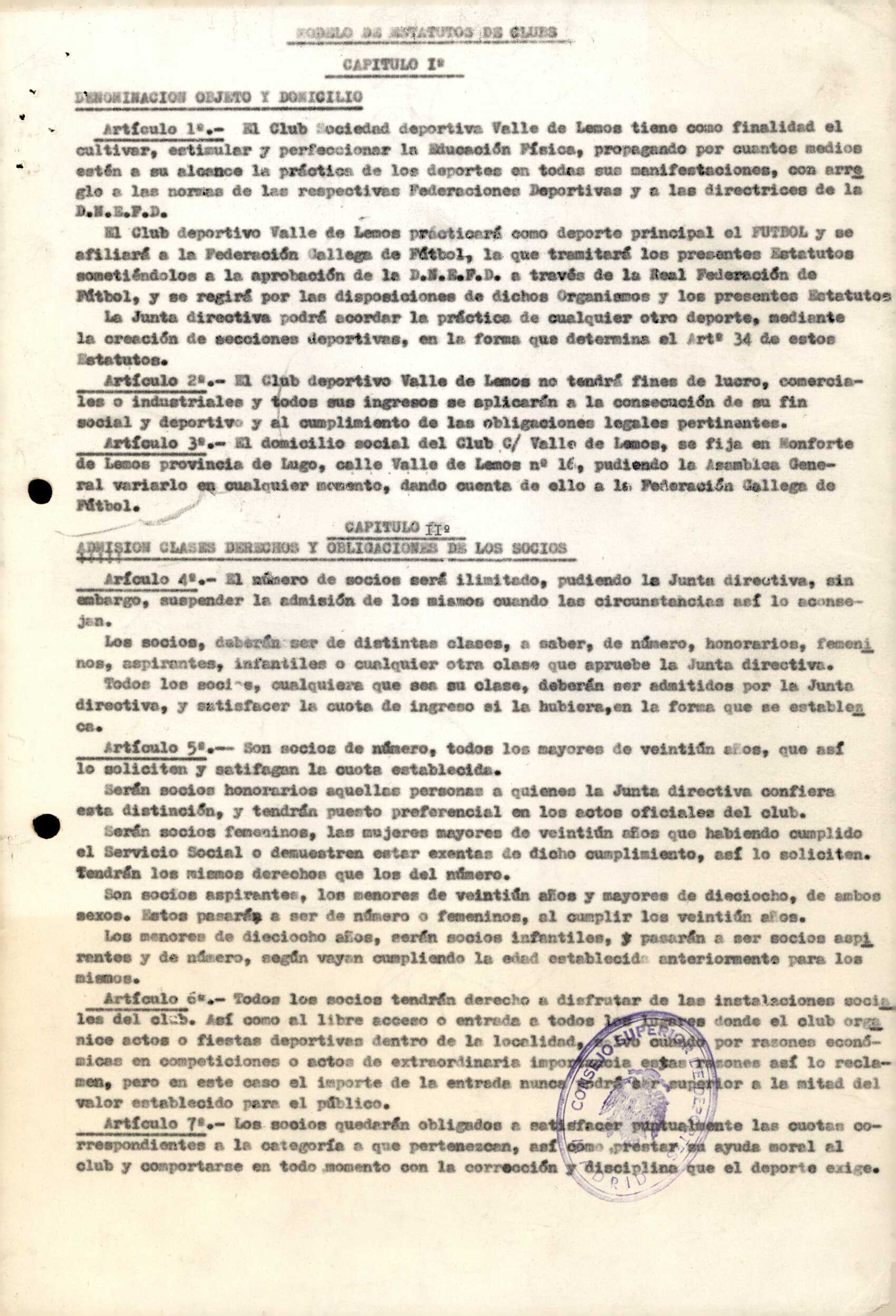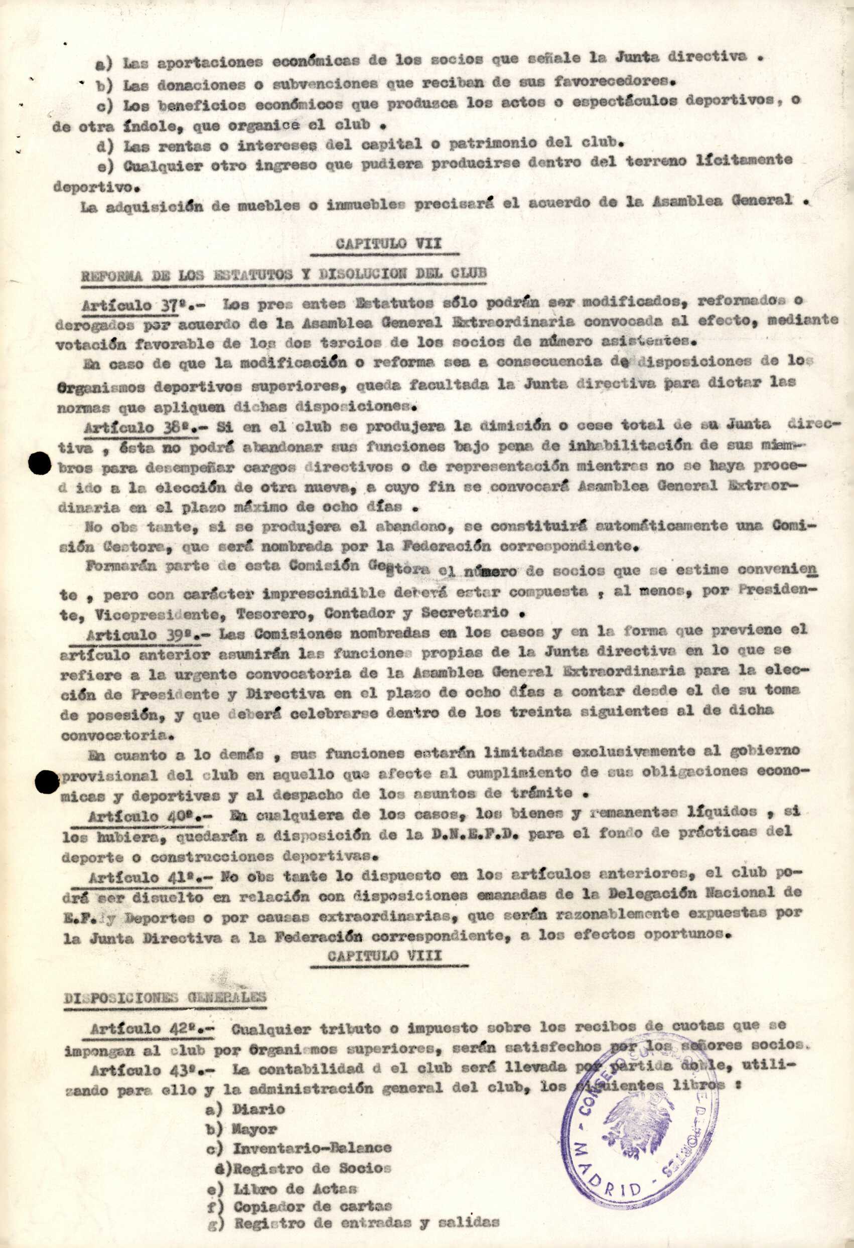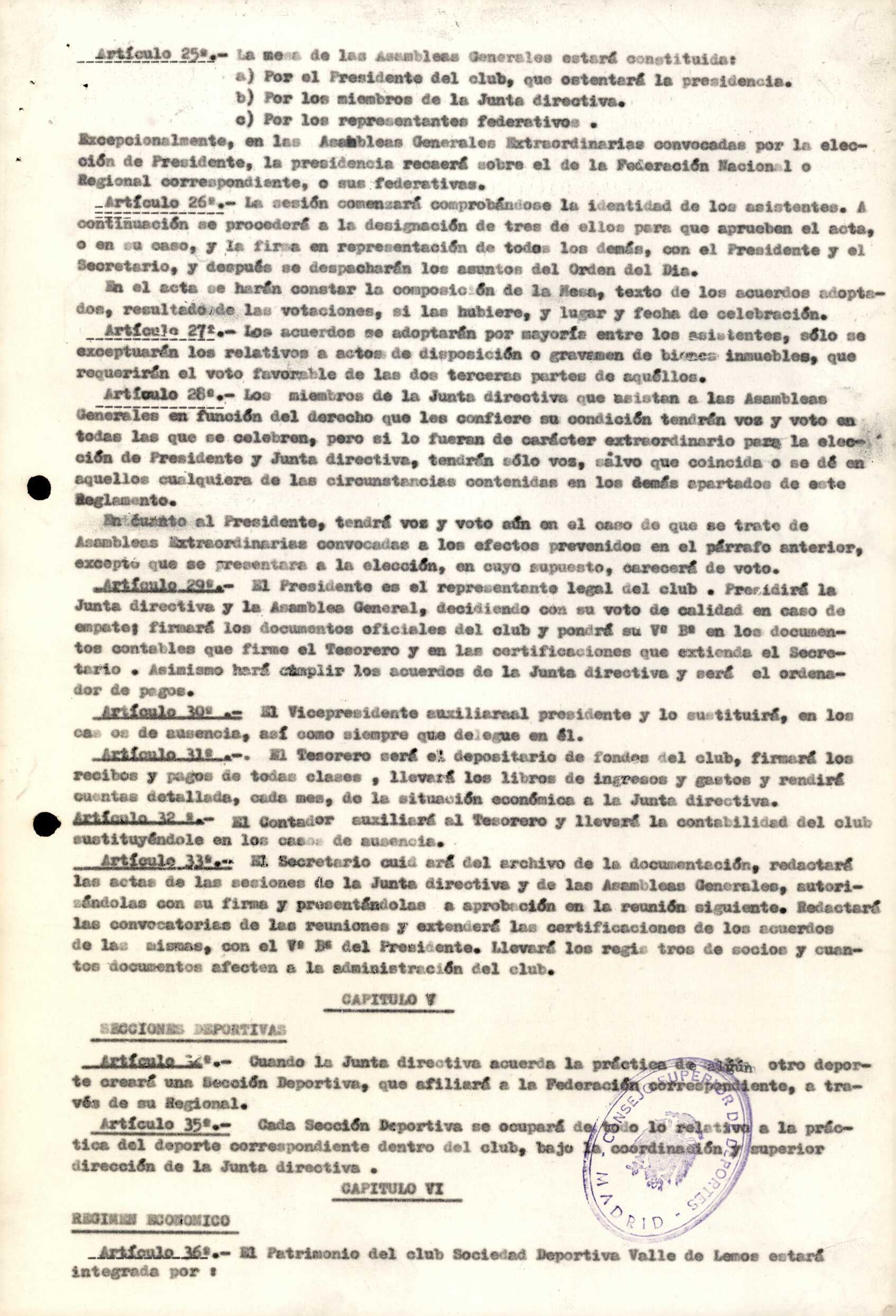 Contén os estatutos da entidade deportiva