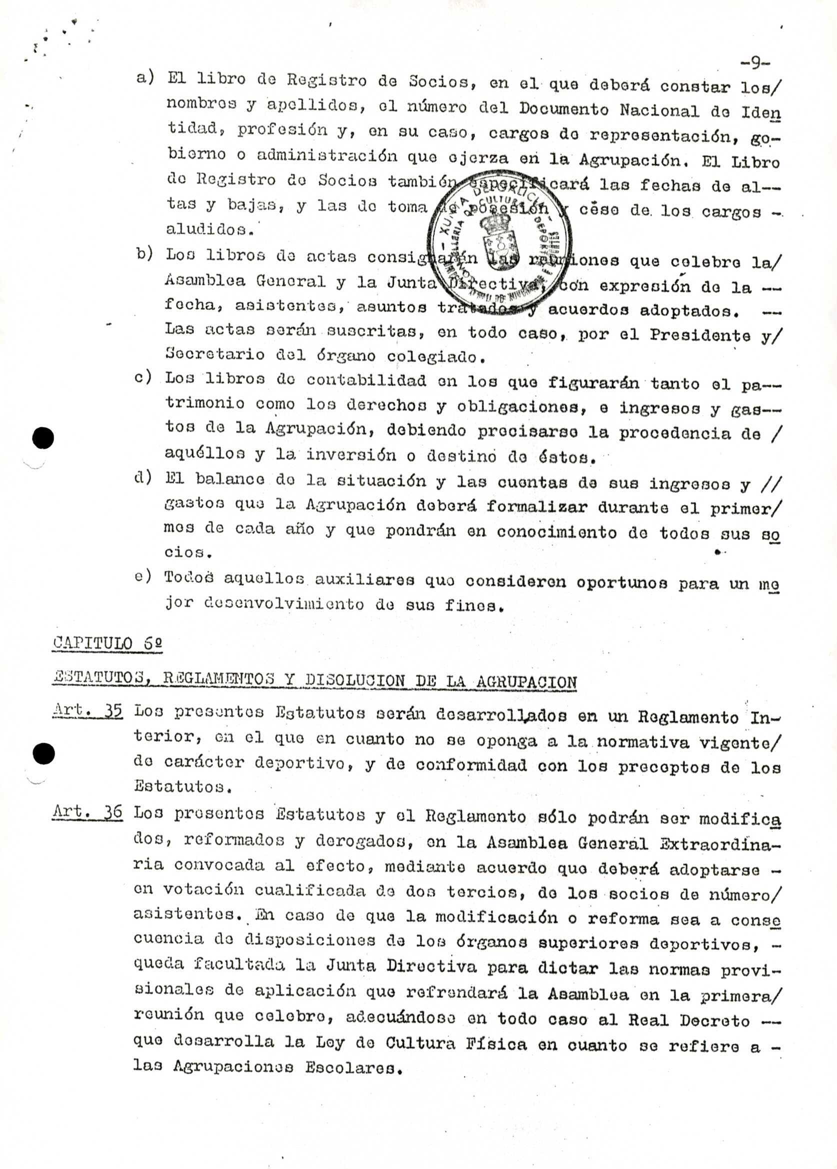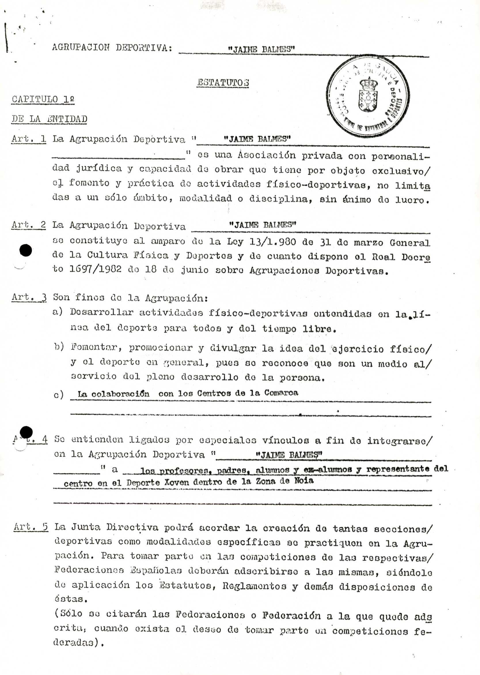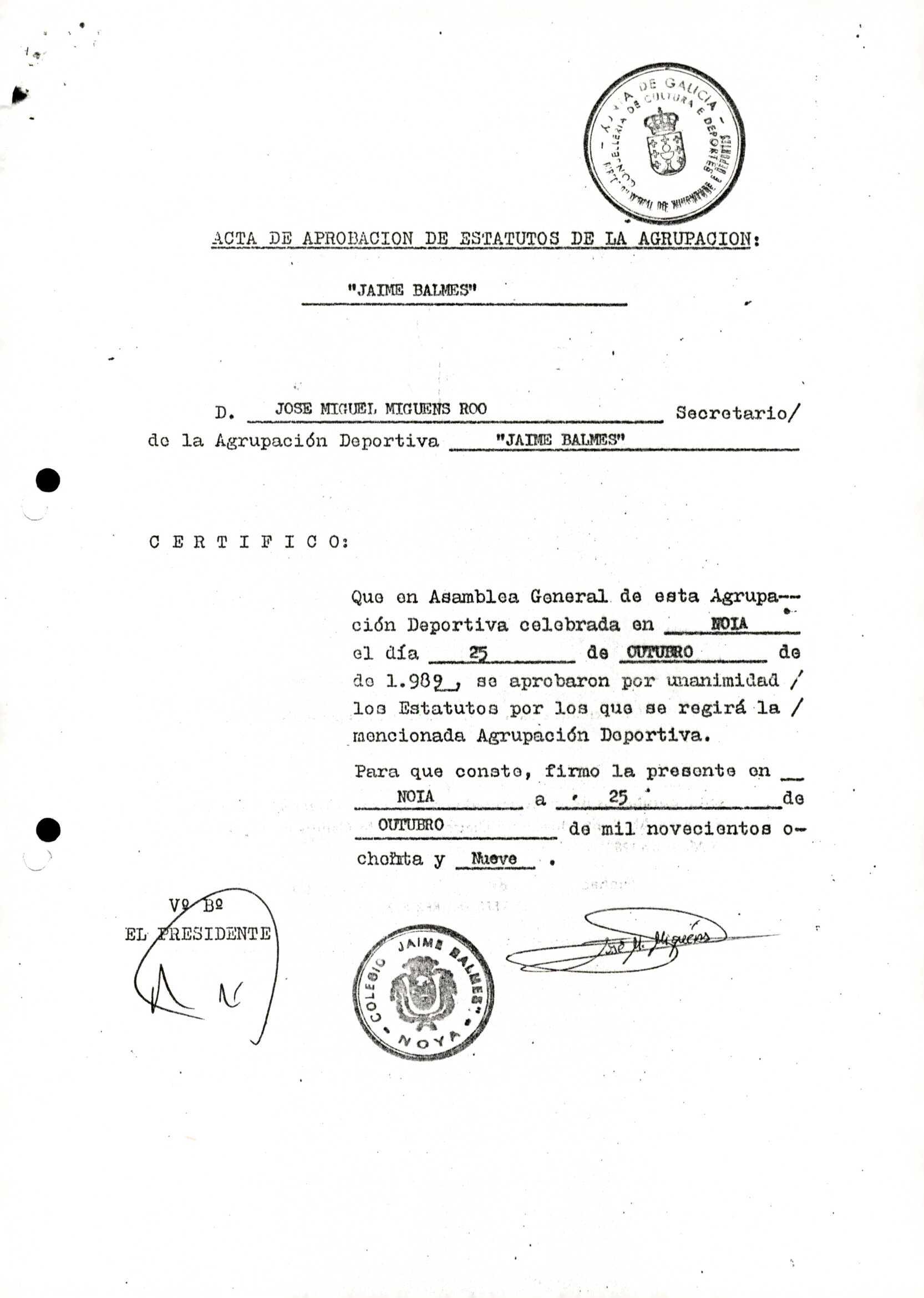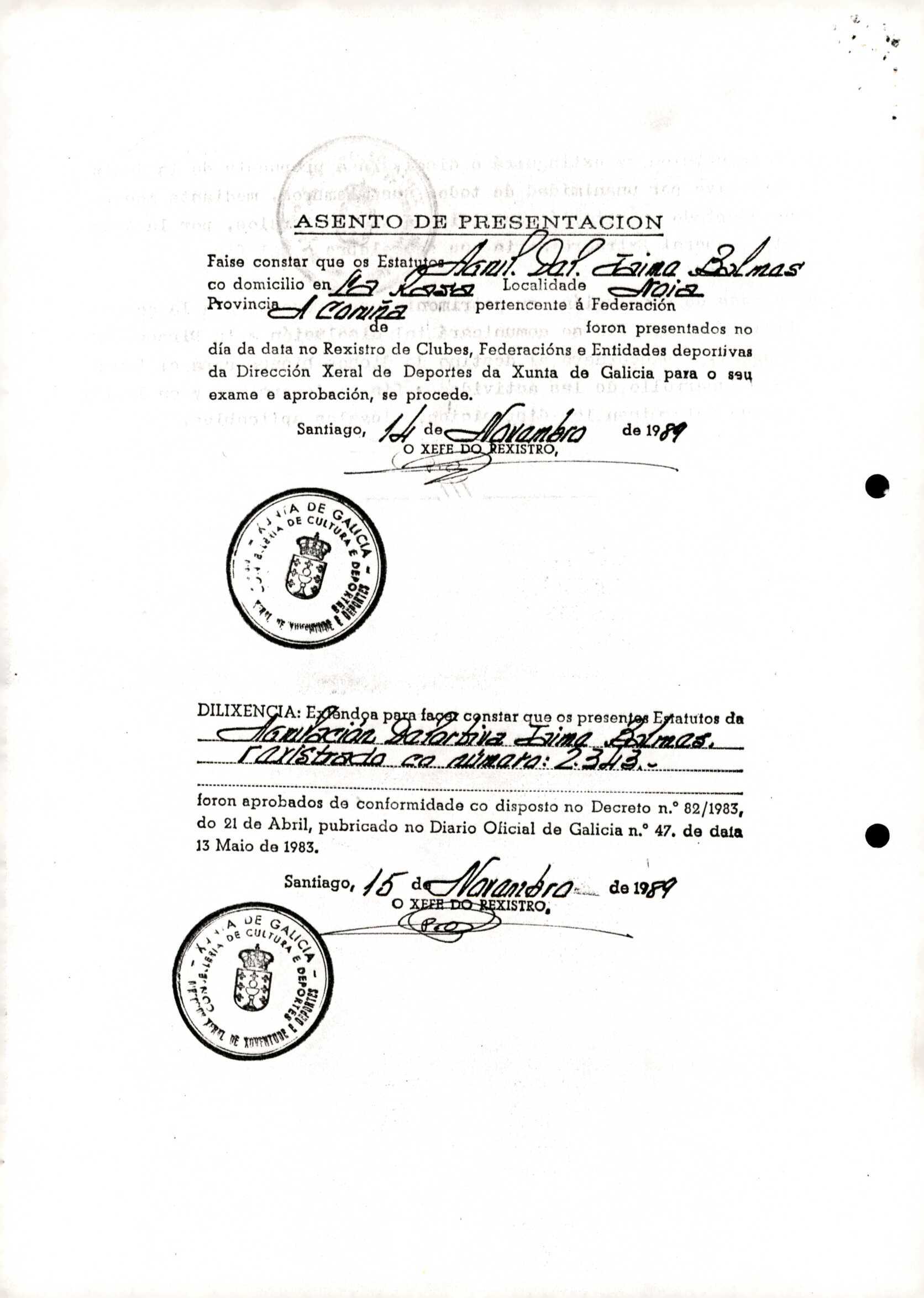 Contén o Acta da fundación e os estatutos da entidade deportiva