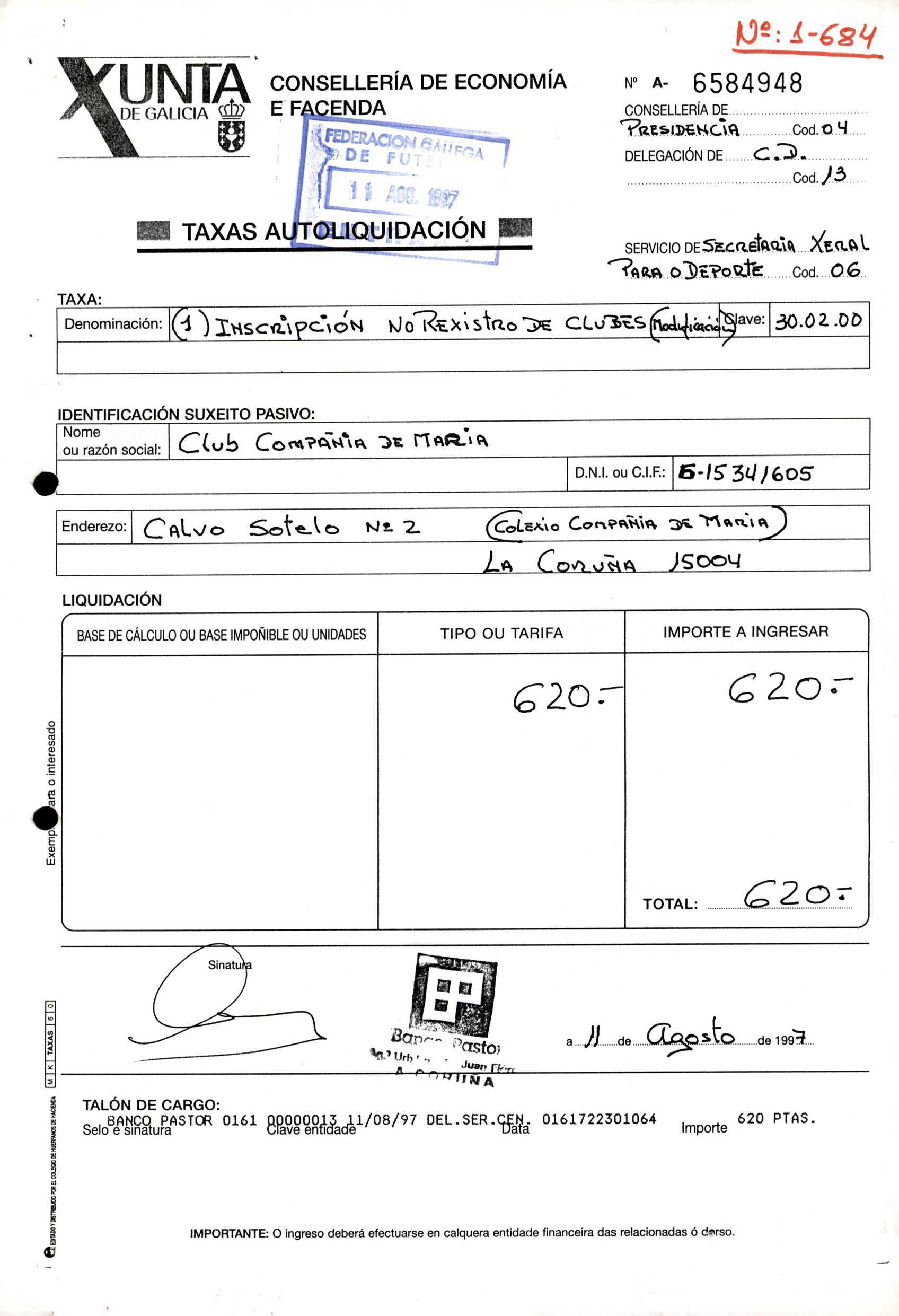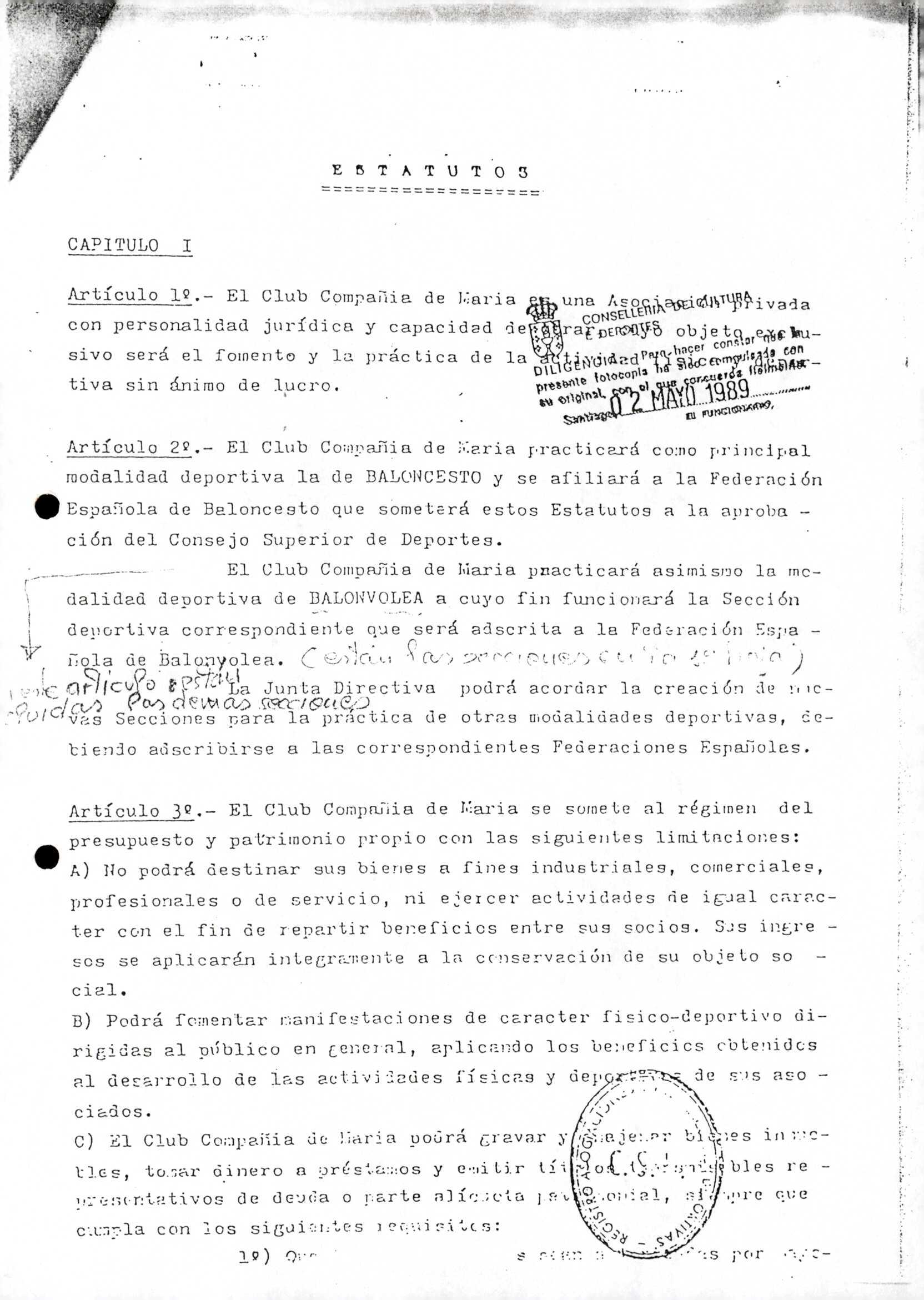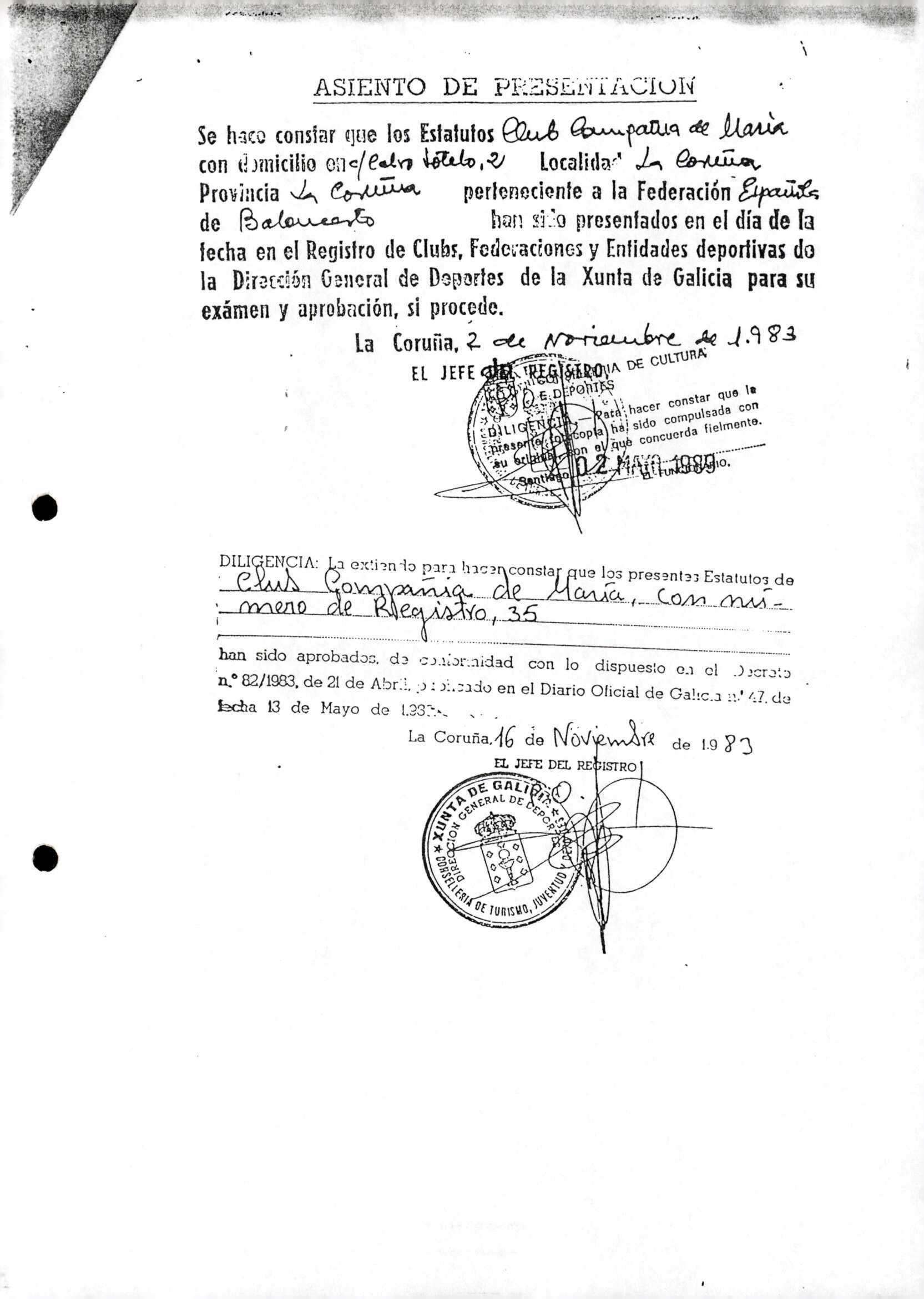 R. 1-684. CLUB COMPAÑÍA DE MARÍA. Baloncesto. A Coruña