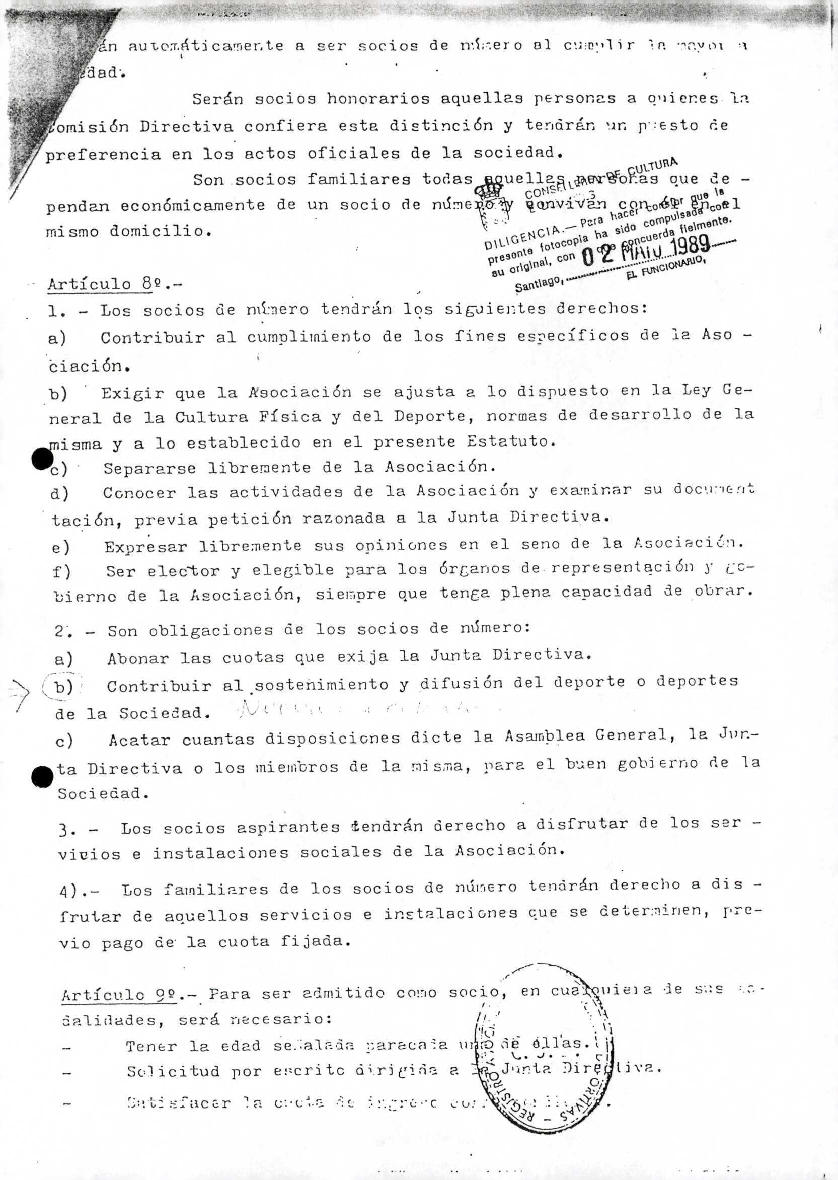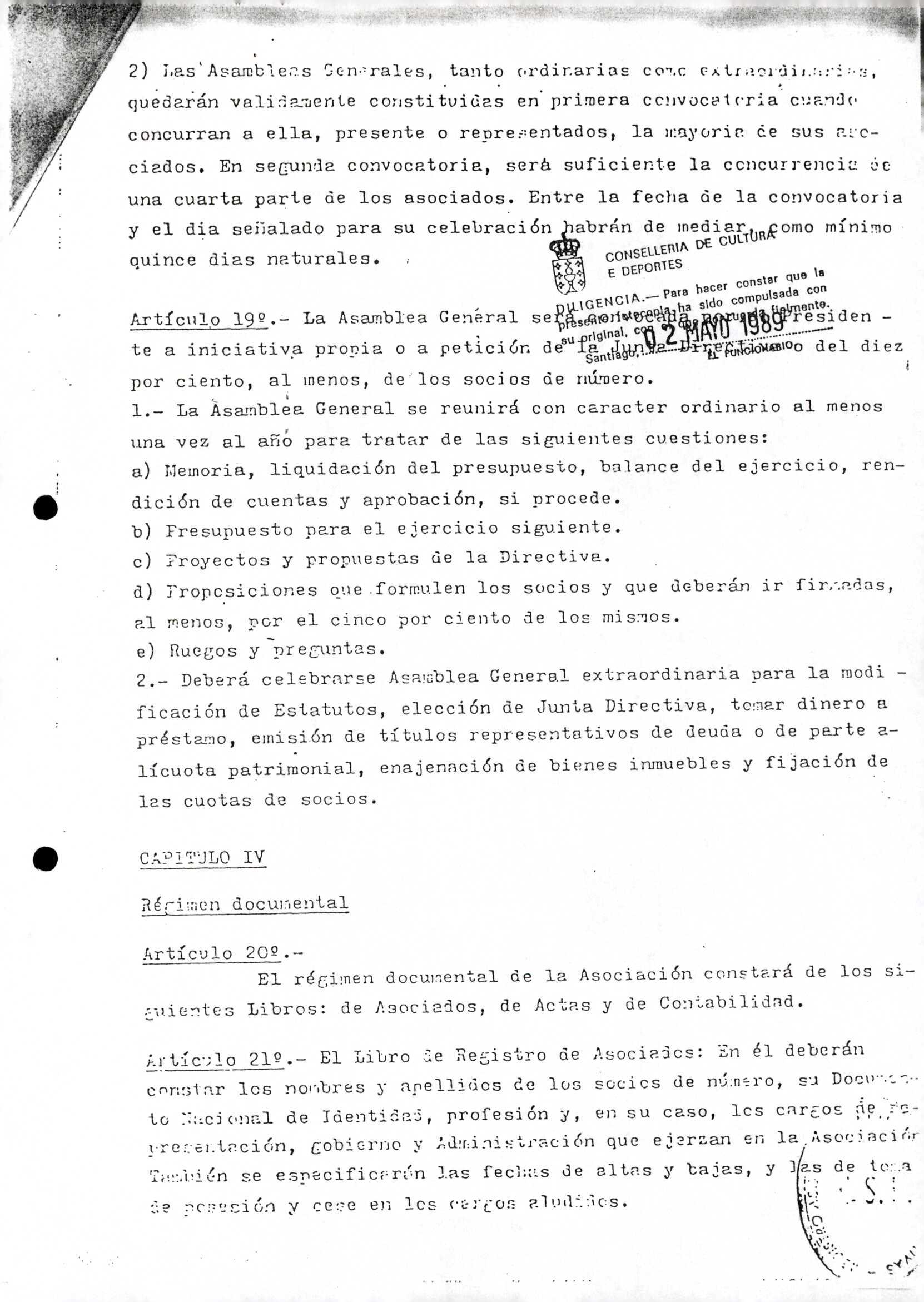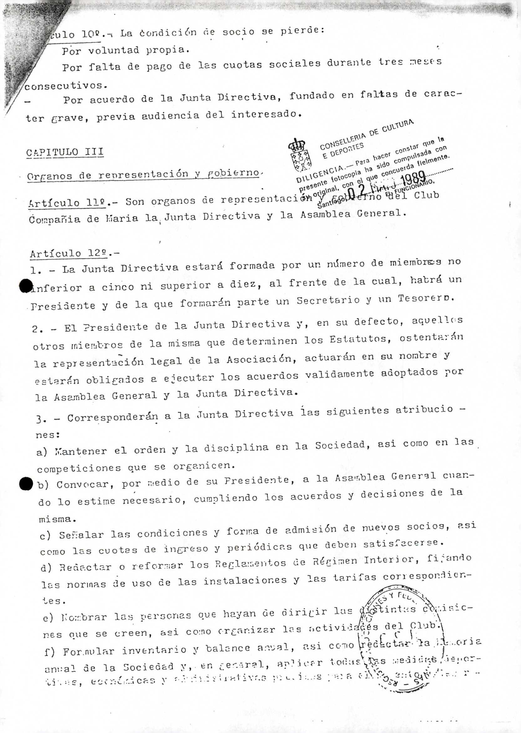 Contén os estatutos da entidade deportiva