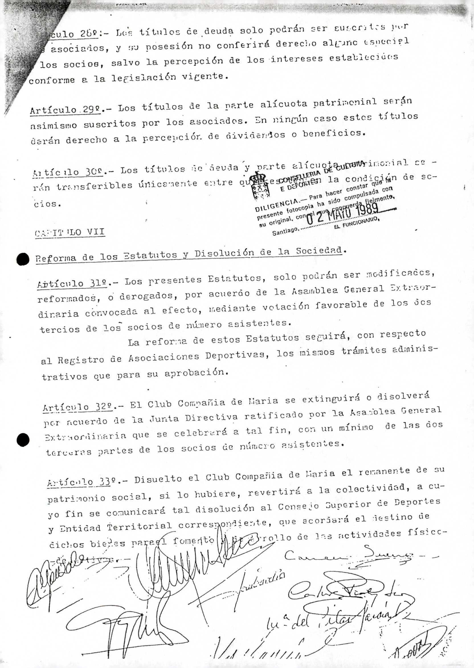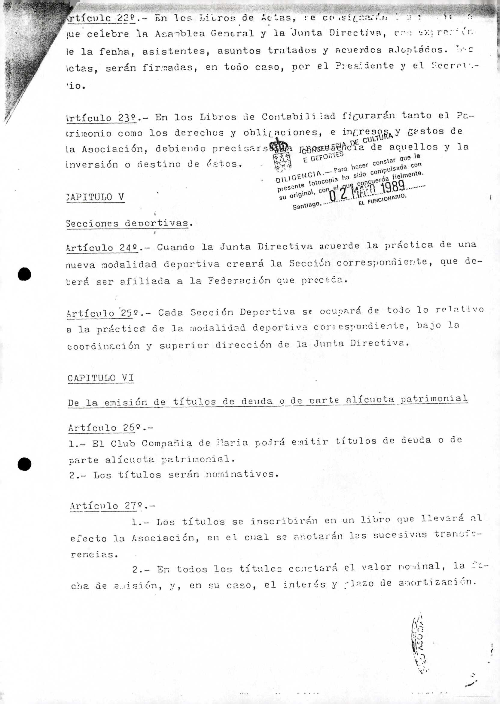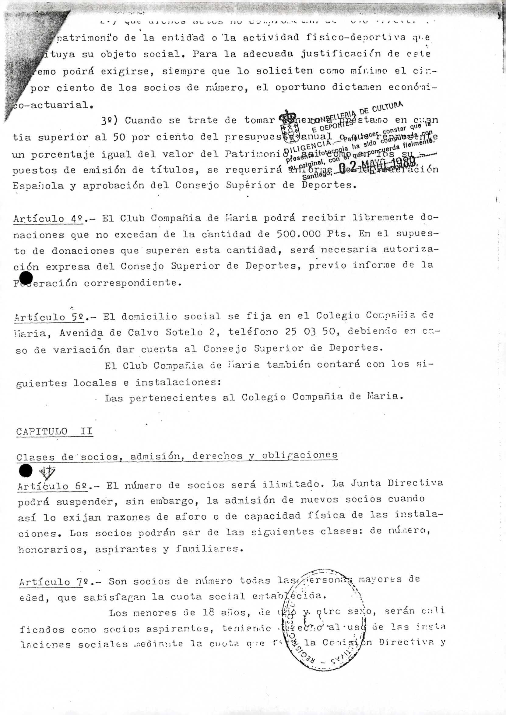 Contén os estatutos da entidade deportiva