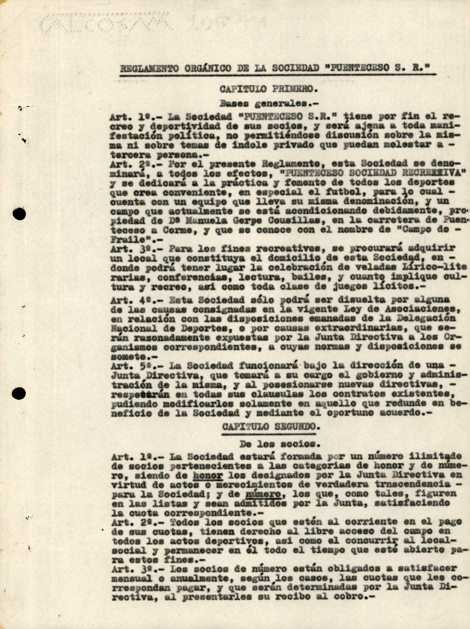 R. 1-81. PUENTECESO SOCIEDAD RECREATIVA. Puenteceso