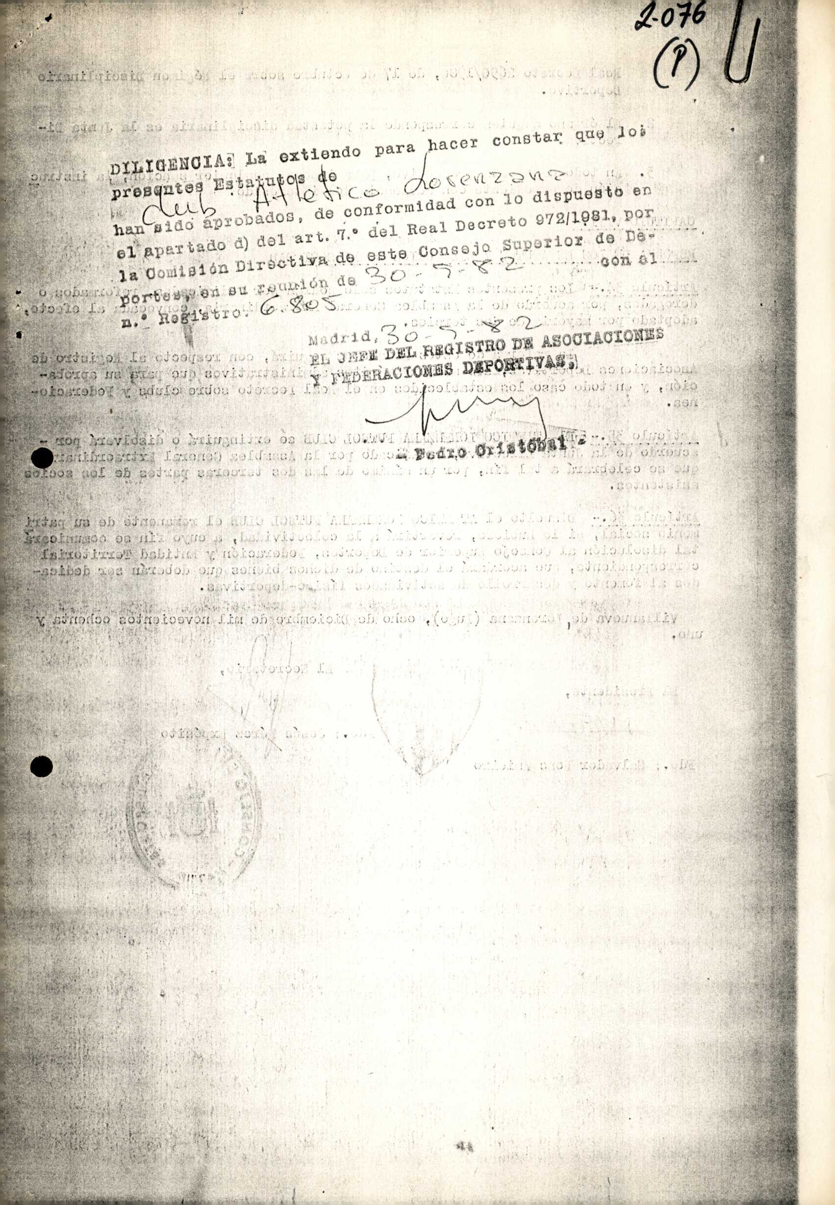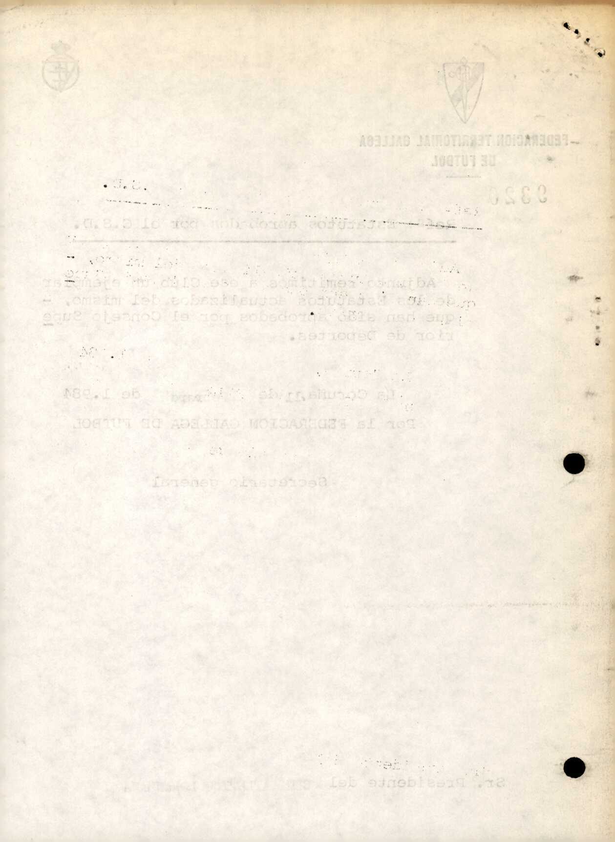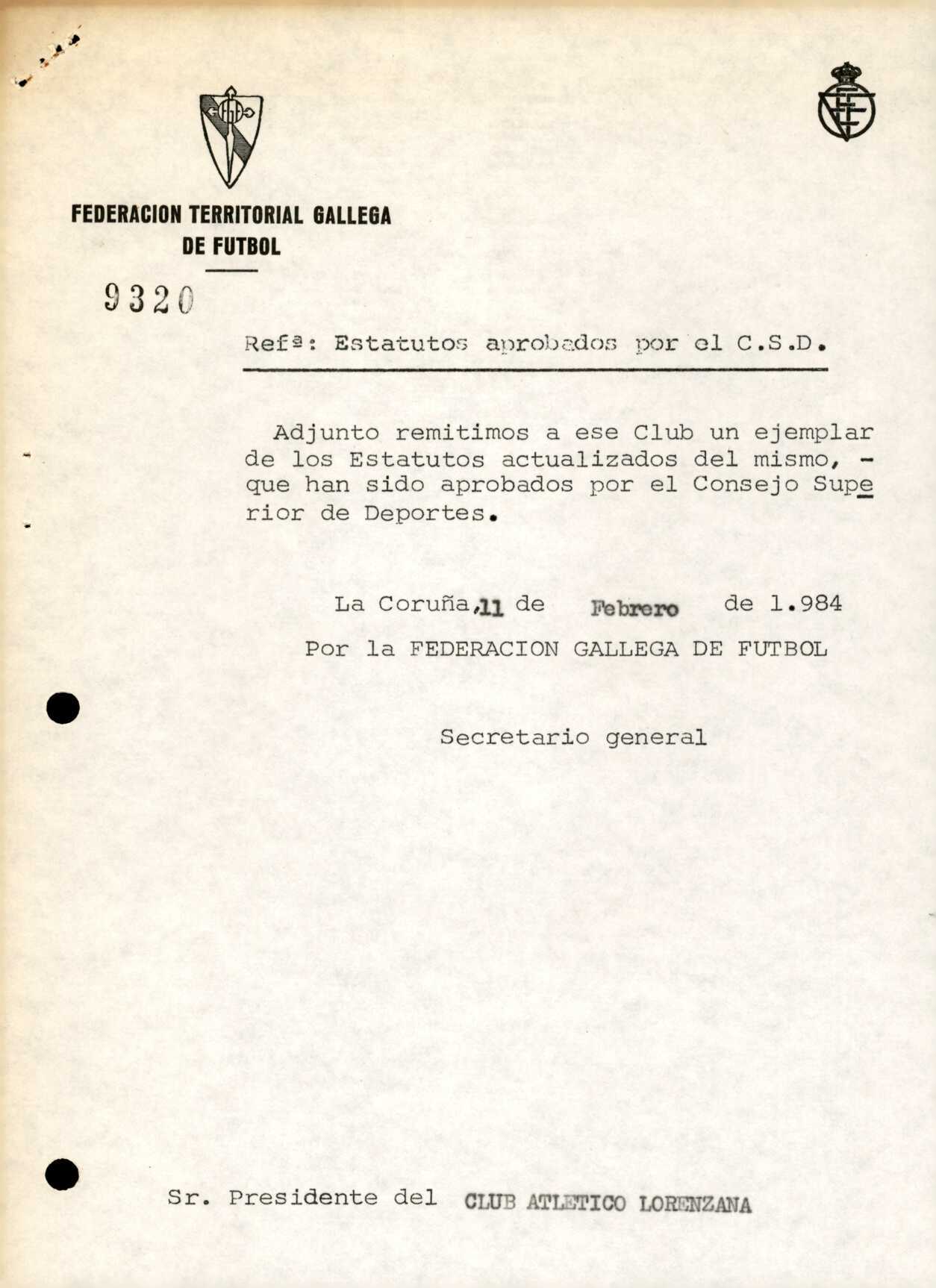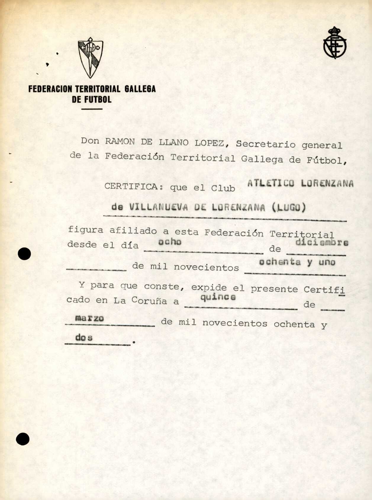 Unidade documental simple 16/1 - R. 2-076. CLUB ATLETICO LORENZANA. Villanueva de Lorenzana