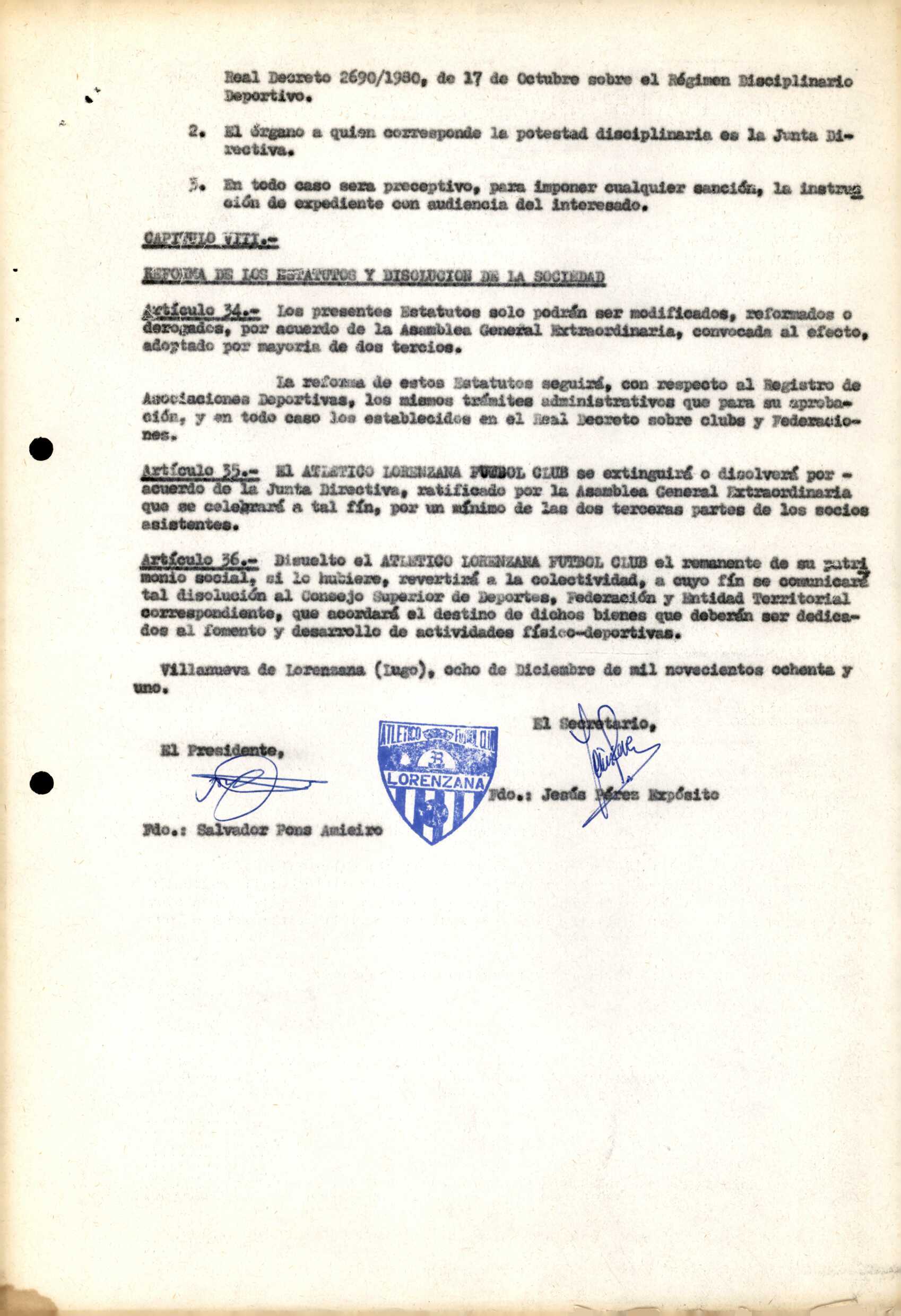 Contén os estatutos da entidade deportiva