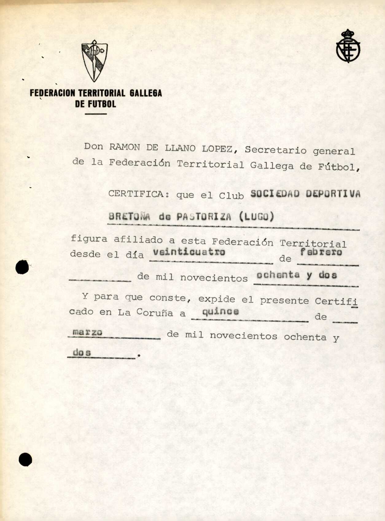 R. 2-086. SOCIEDAD DEPORTIVA BRETOÑA. Pastiriza