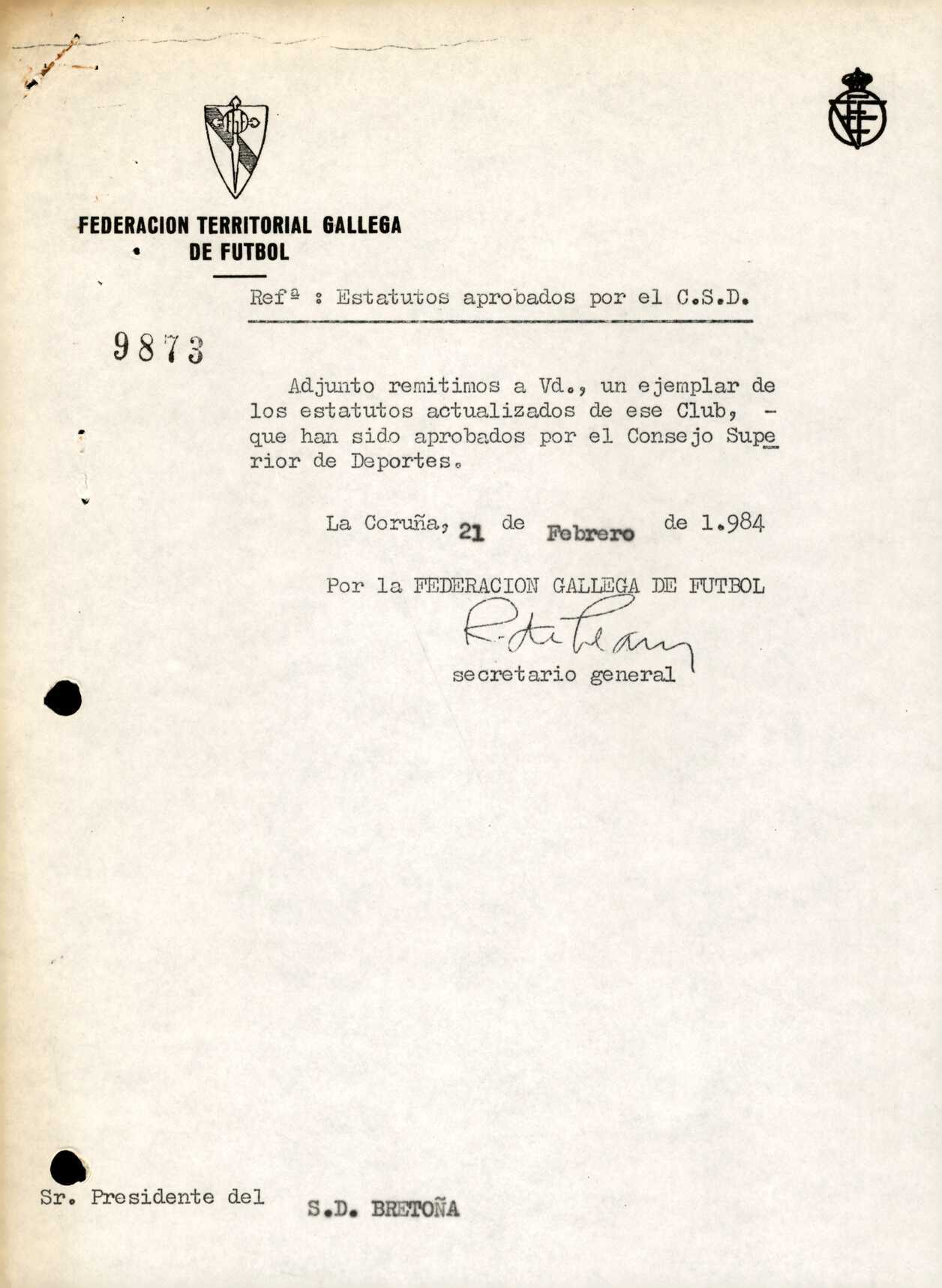 Contén os estatutos da entidade deportiva