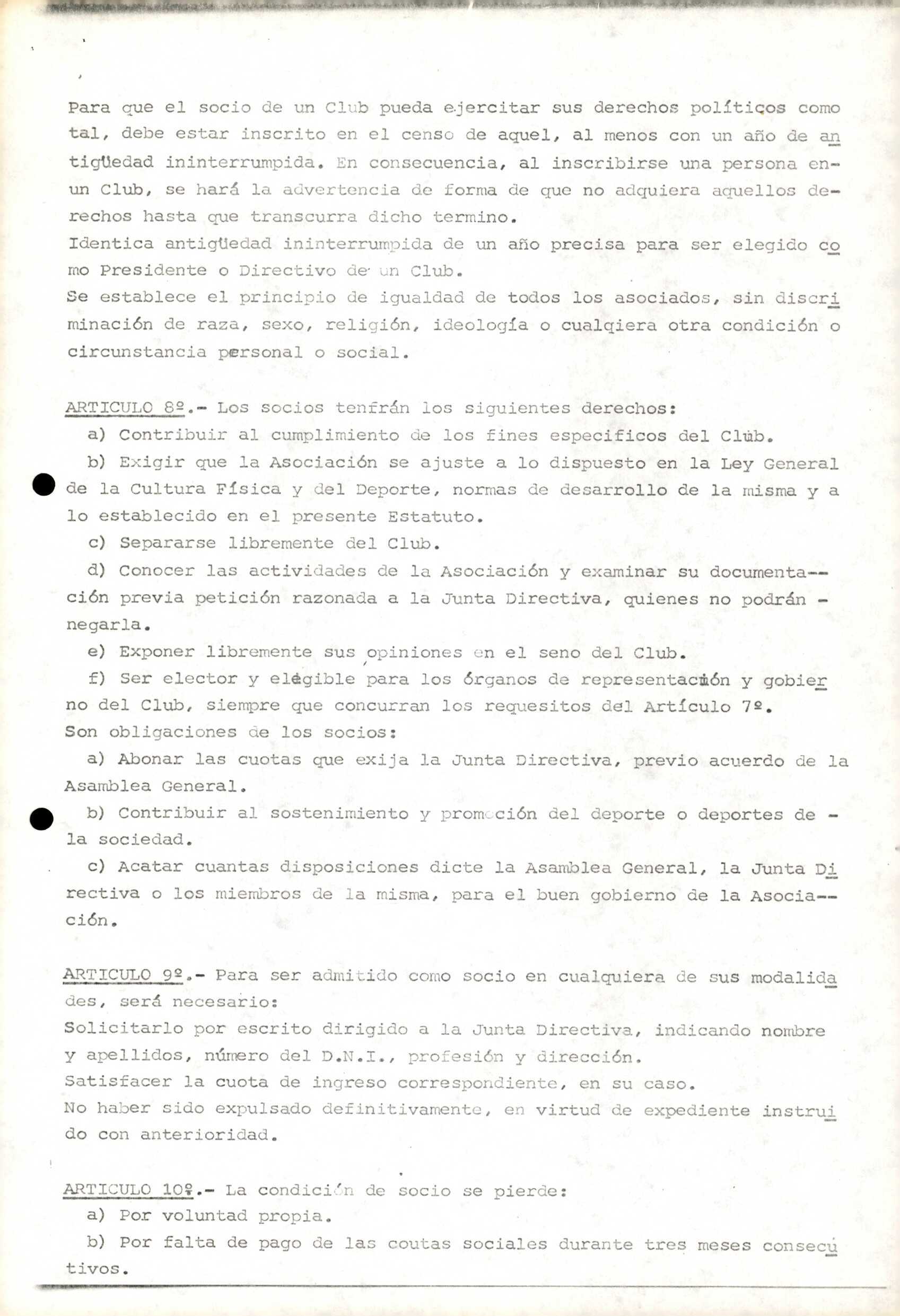 Contén os estatutos da entidade deportiva