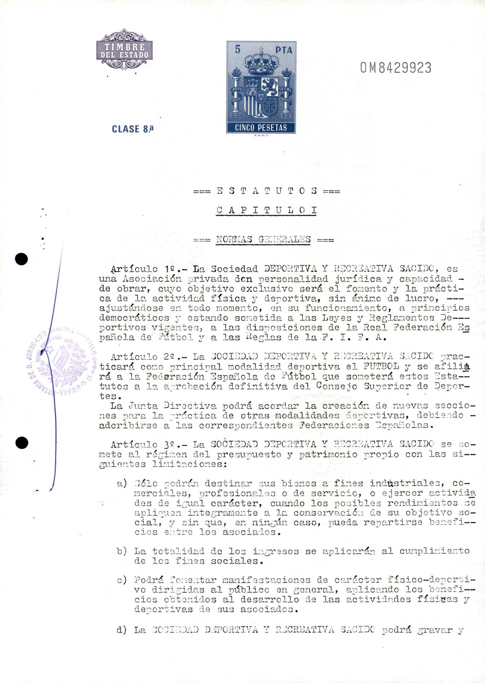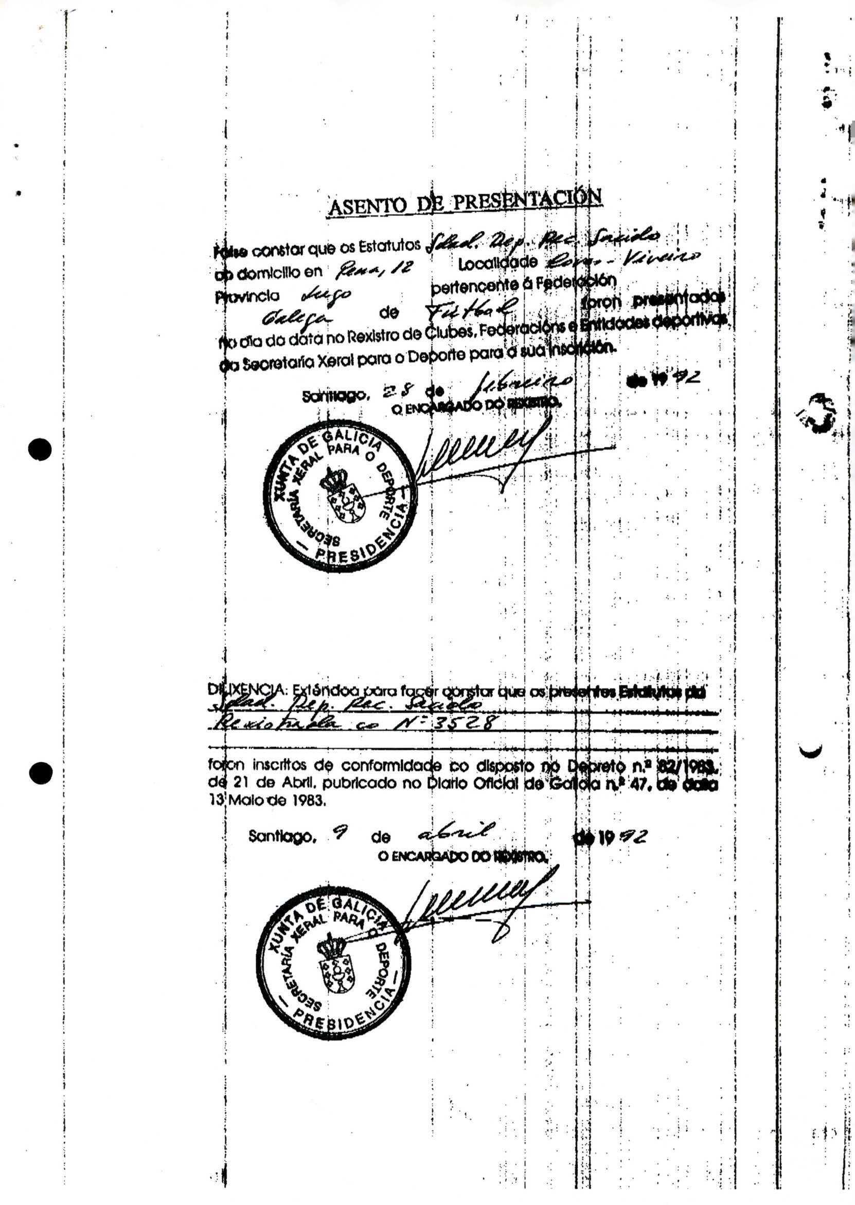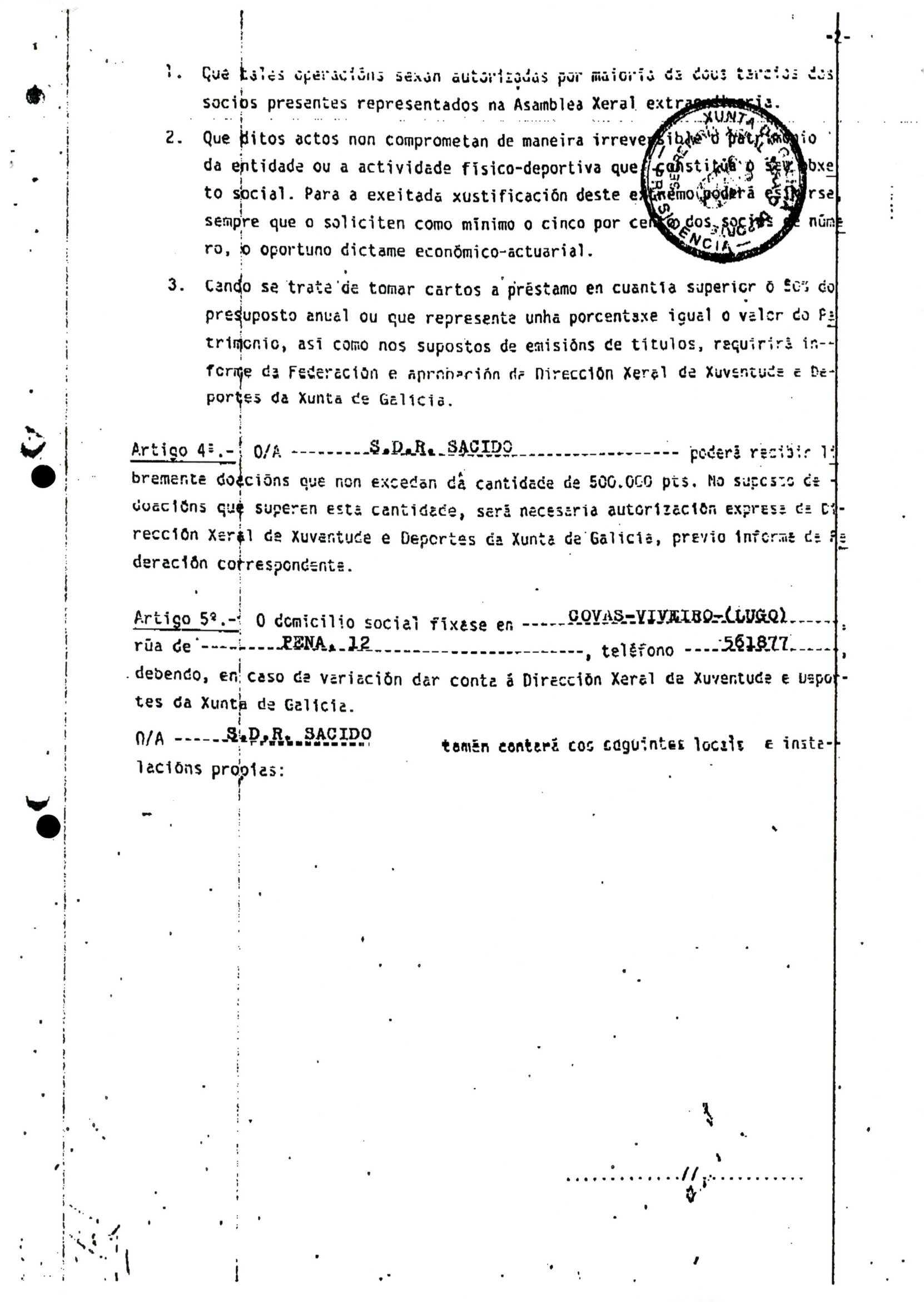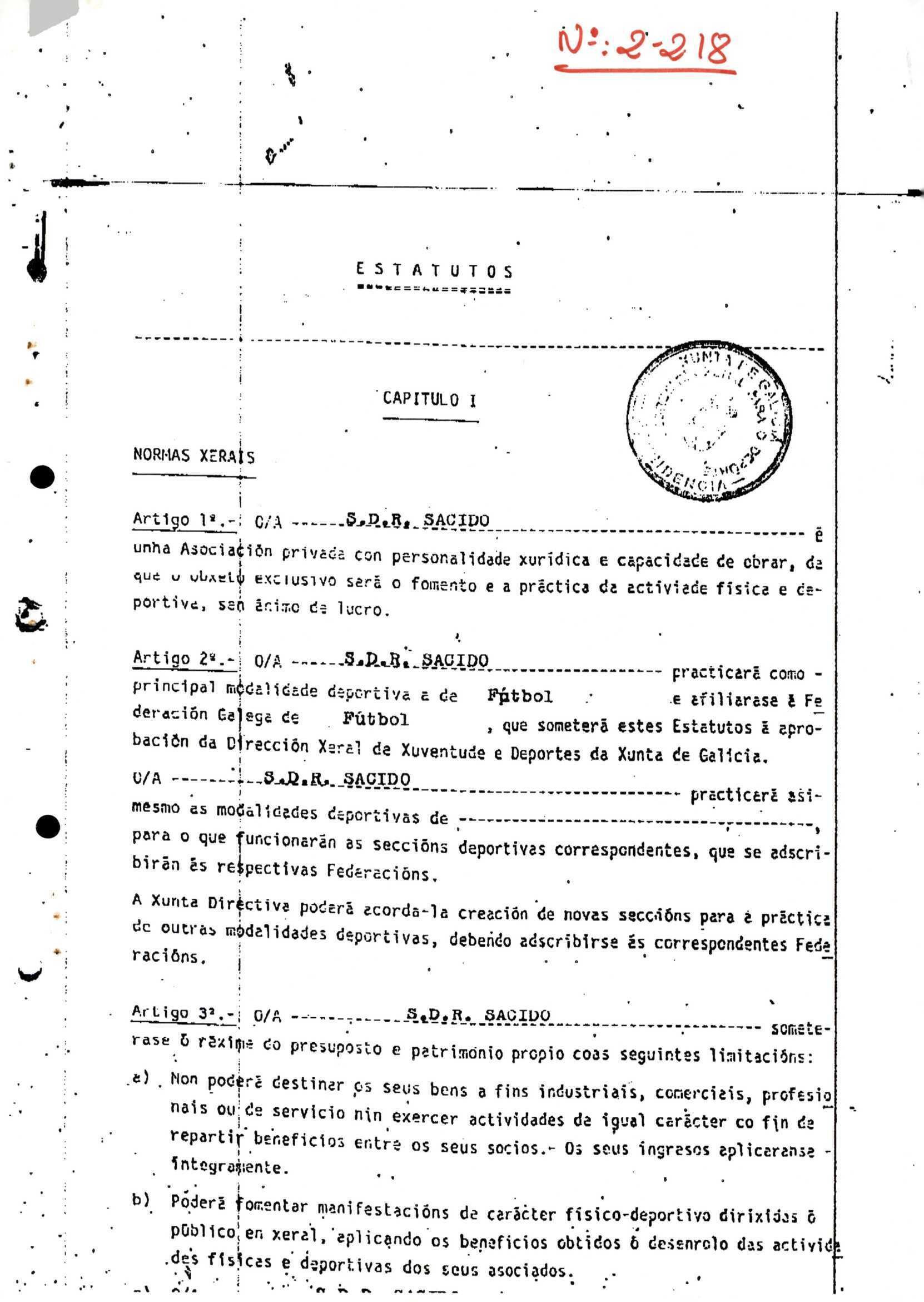 Contén o Acta da fundación e os estatutos da entidade deportiva