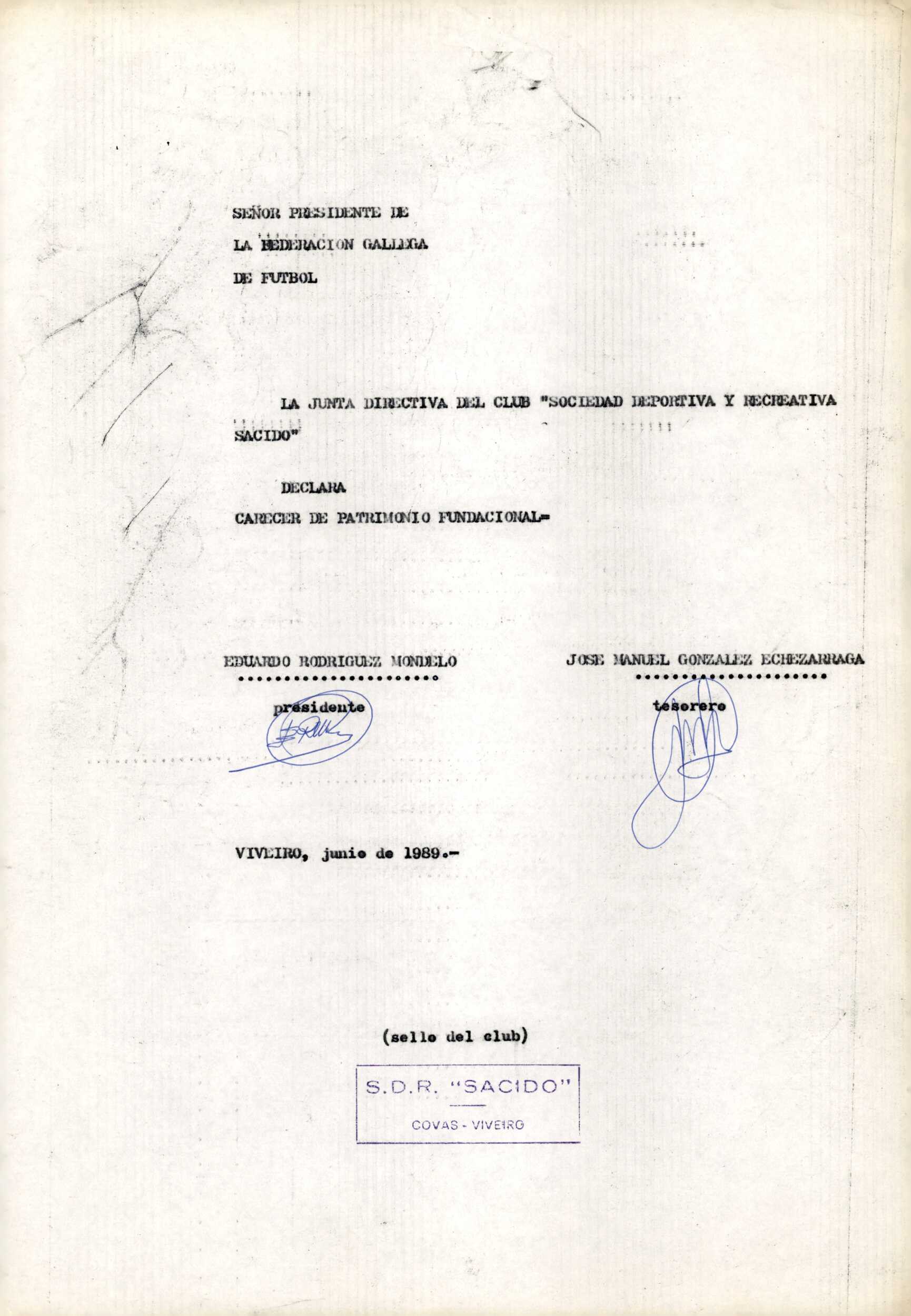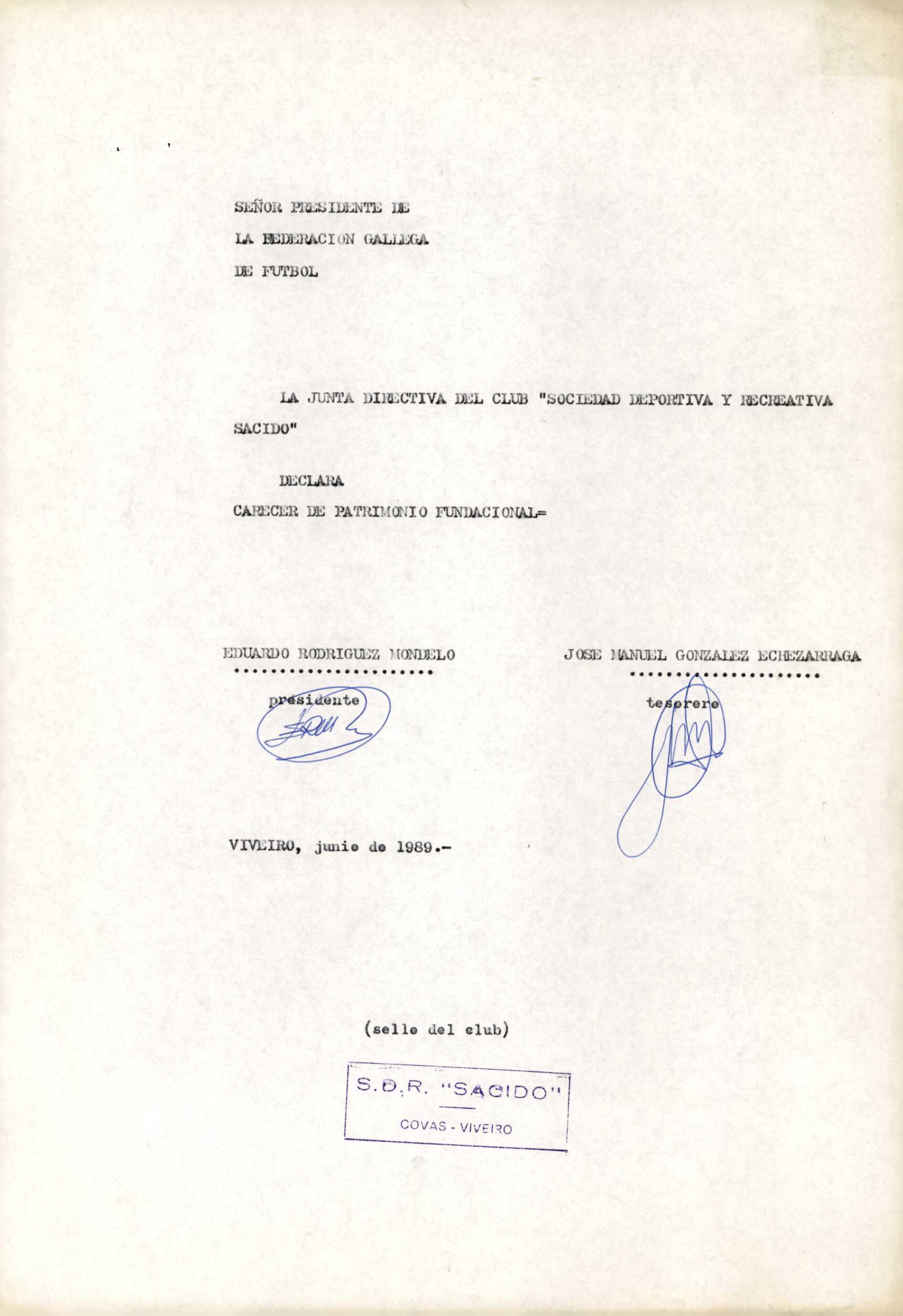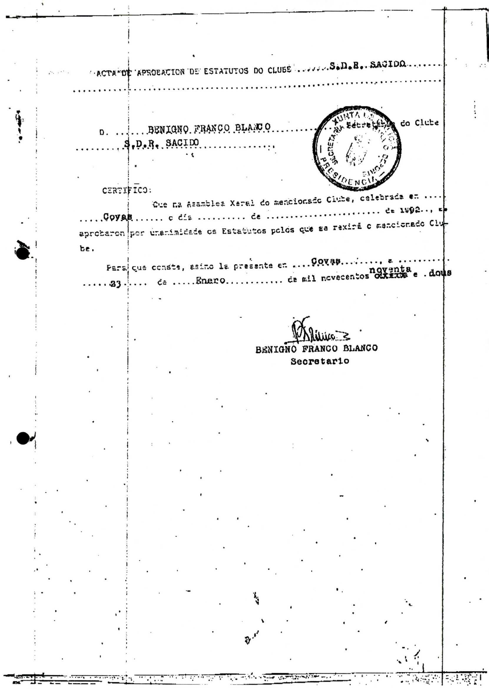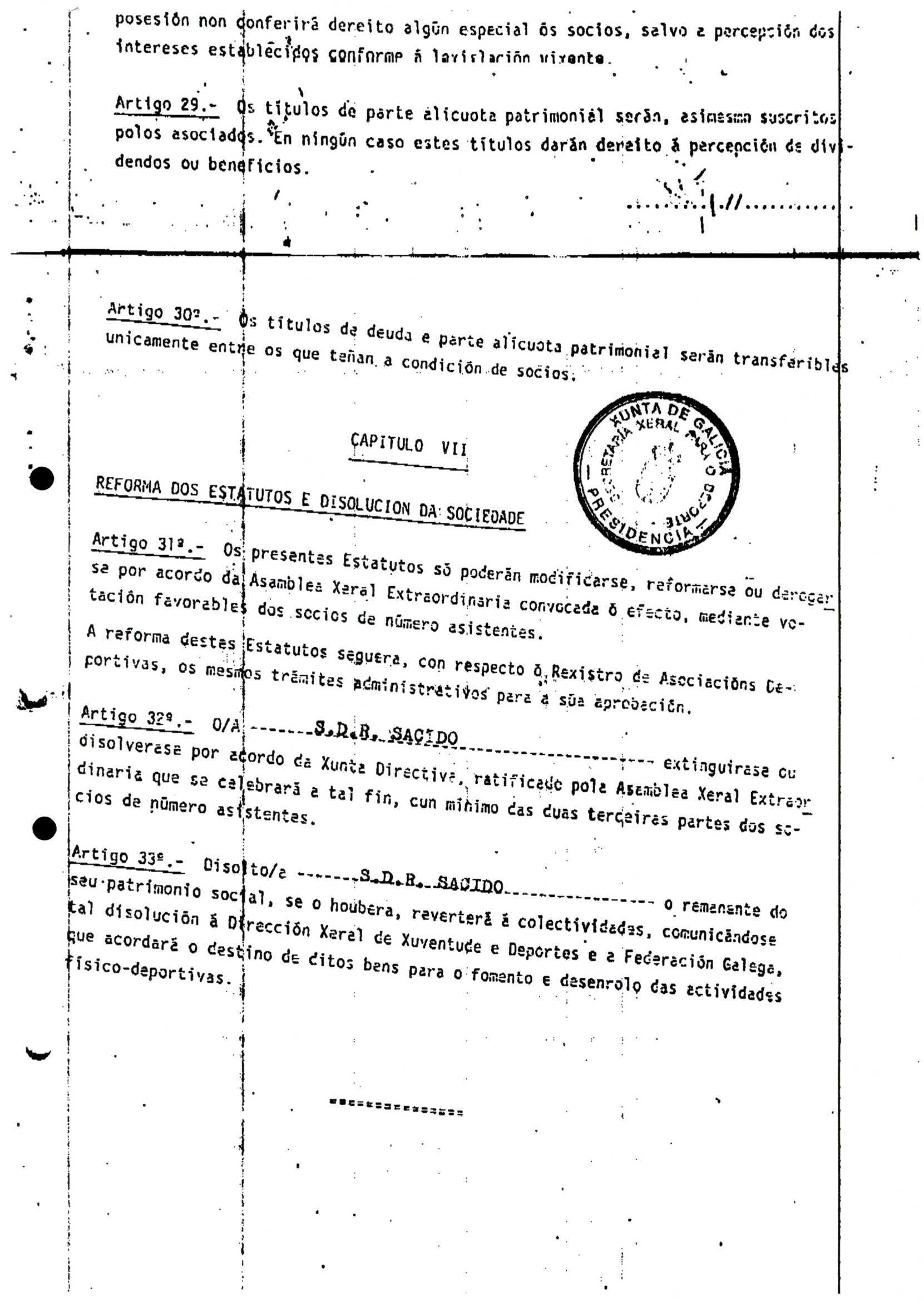 Contén o Acta da fundación e os estatutos da entidade deportiva