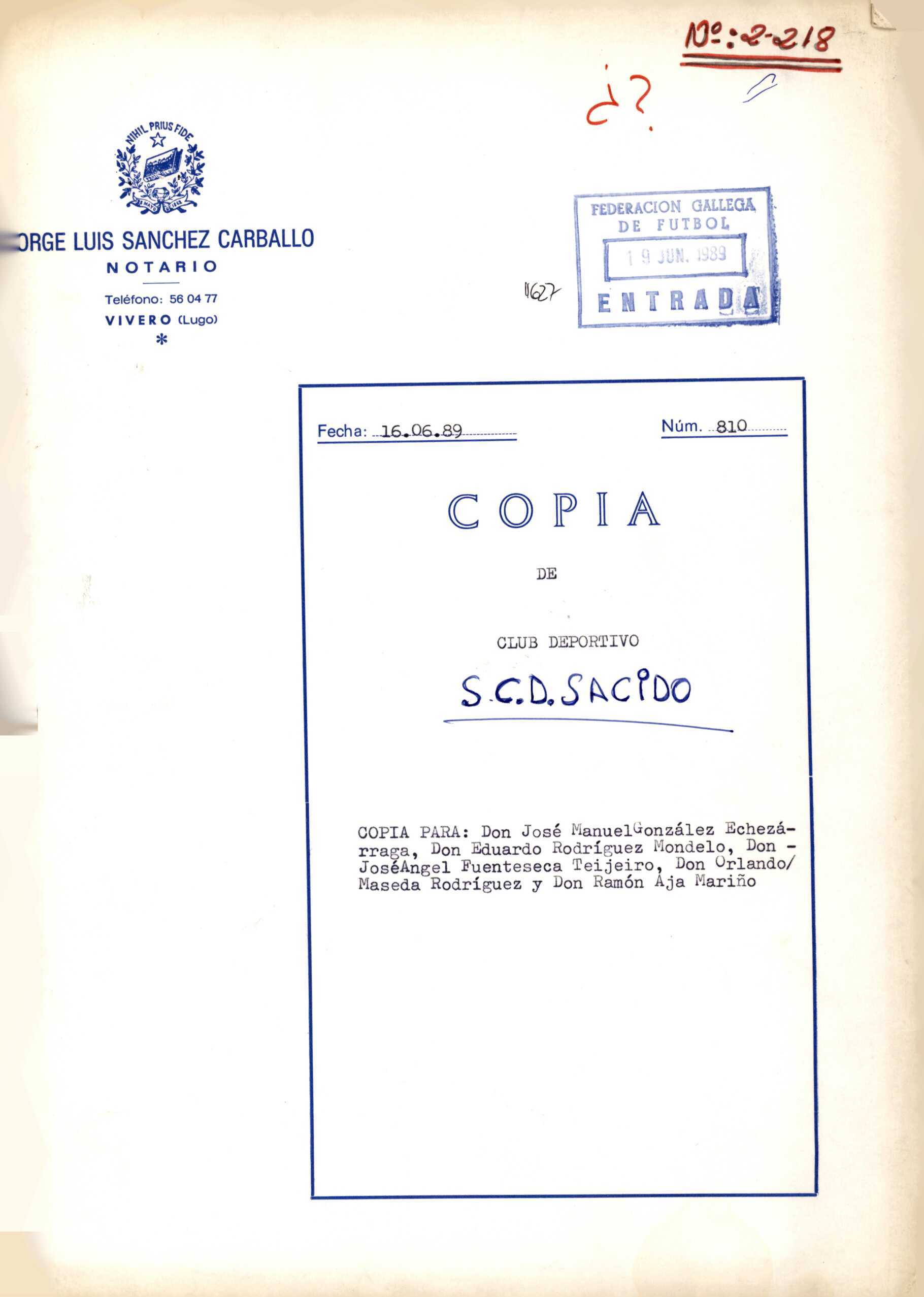R. 2-218. S.D.R. SACIDO. Covas-Viveiro
