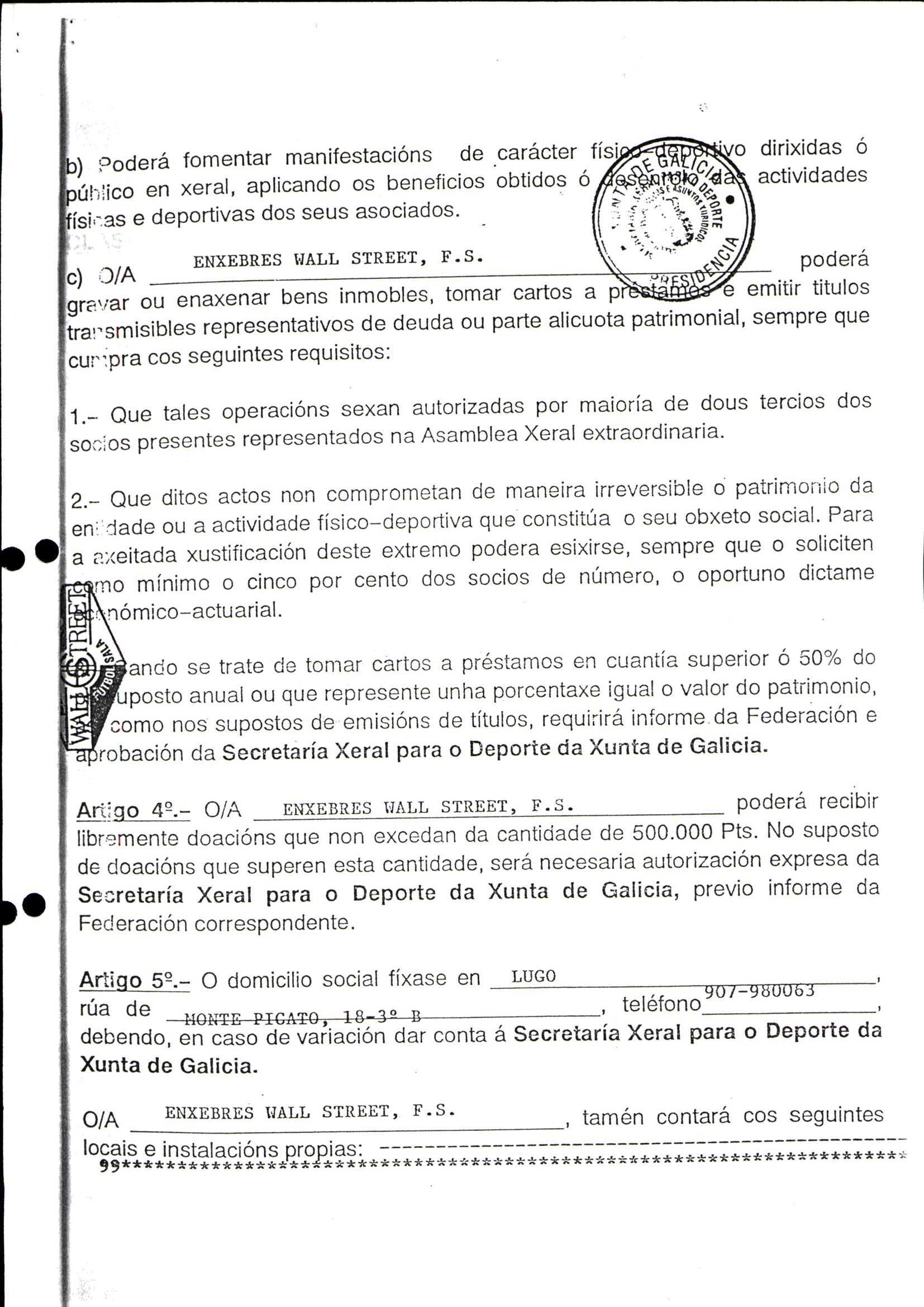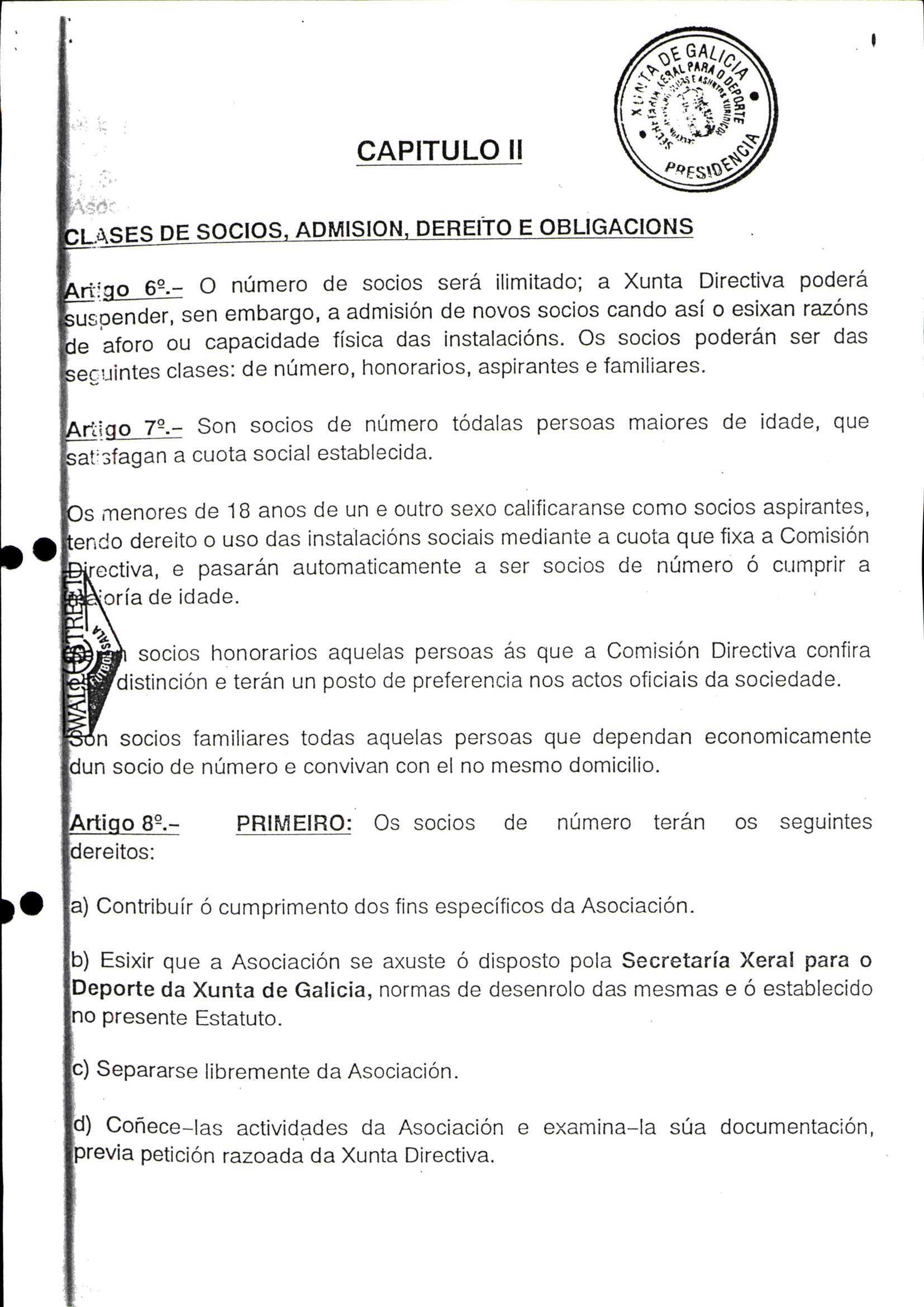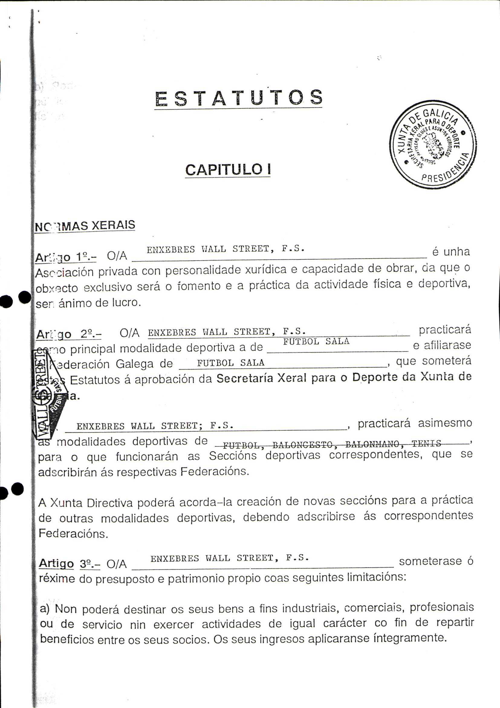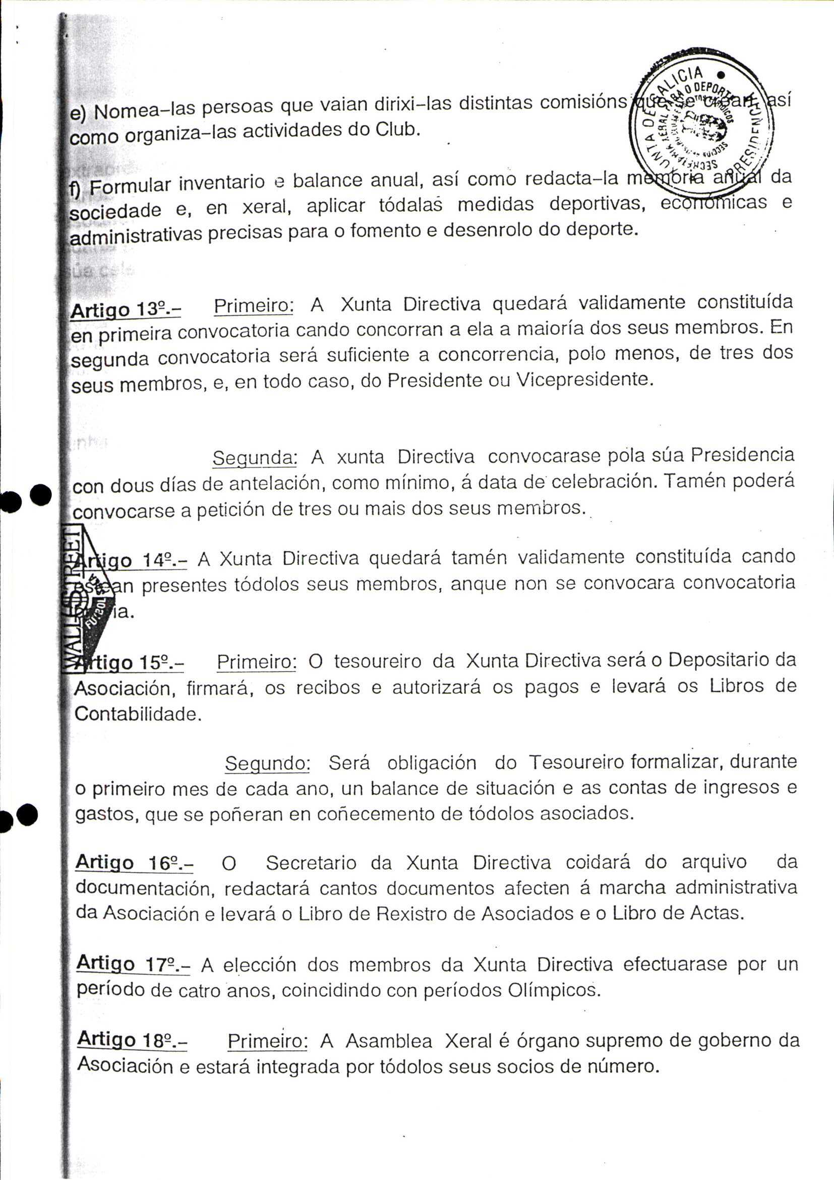 Contén o Acta da fundación e os estatutos da entidade deportiva