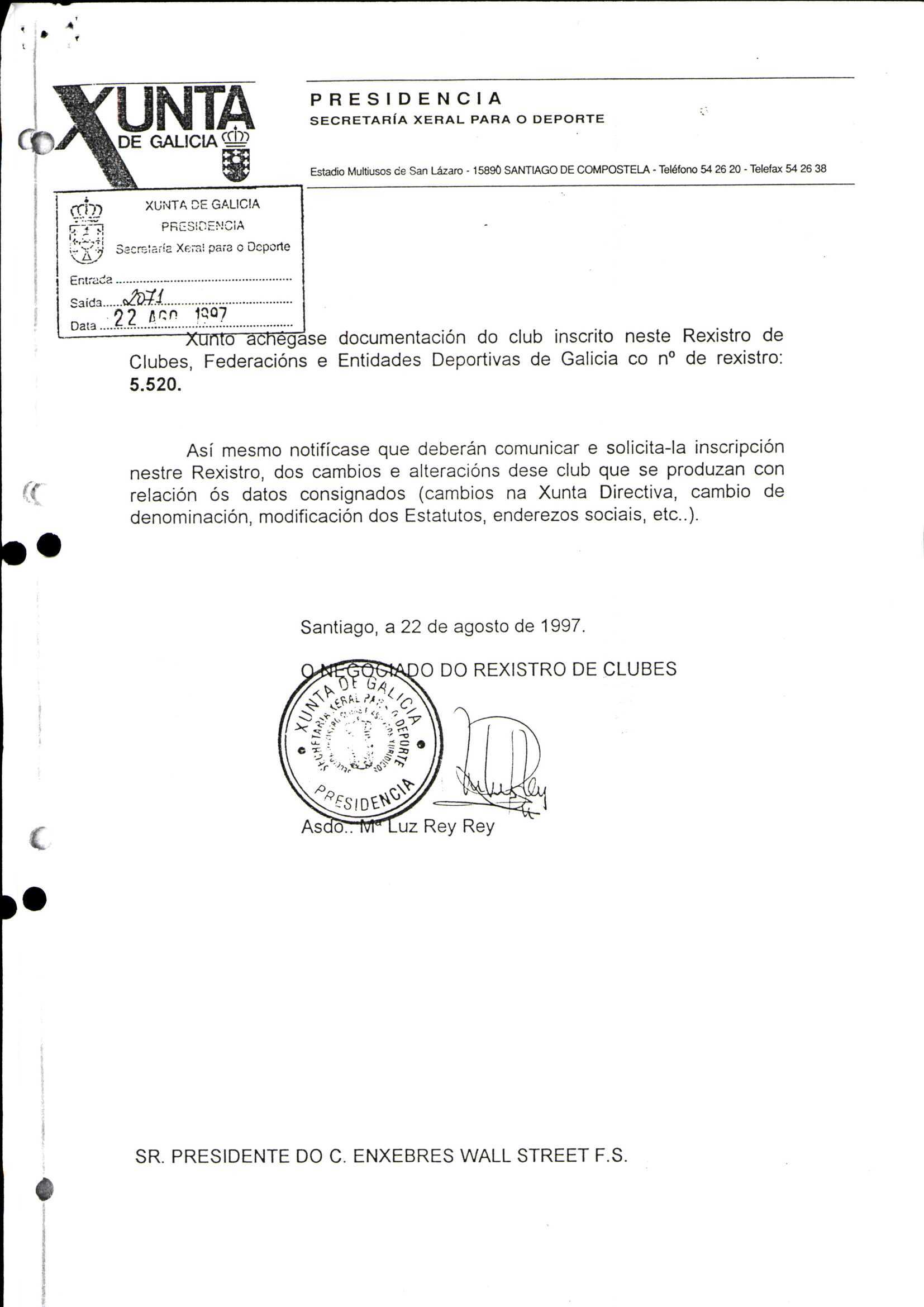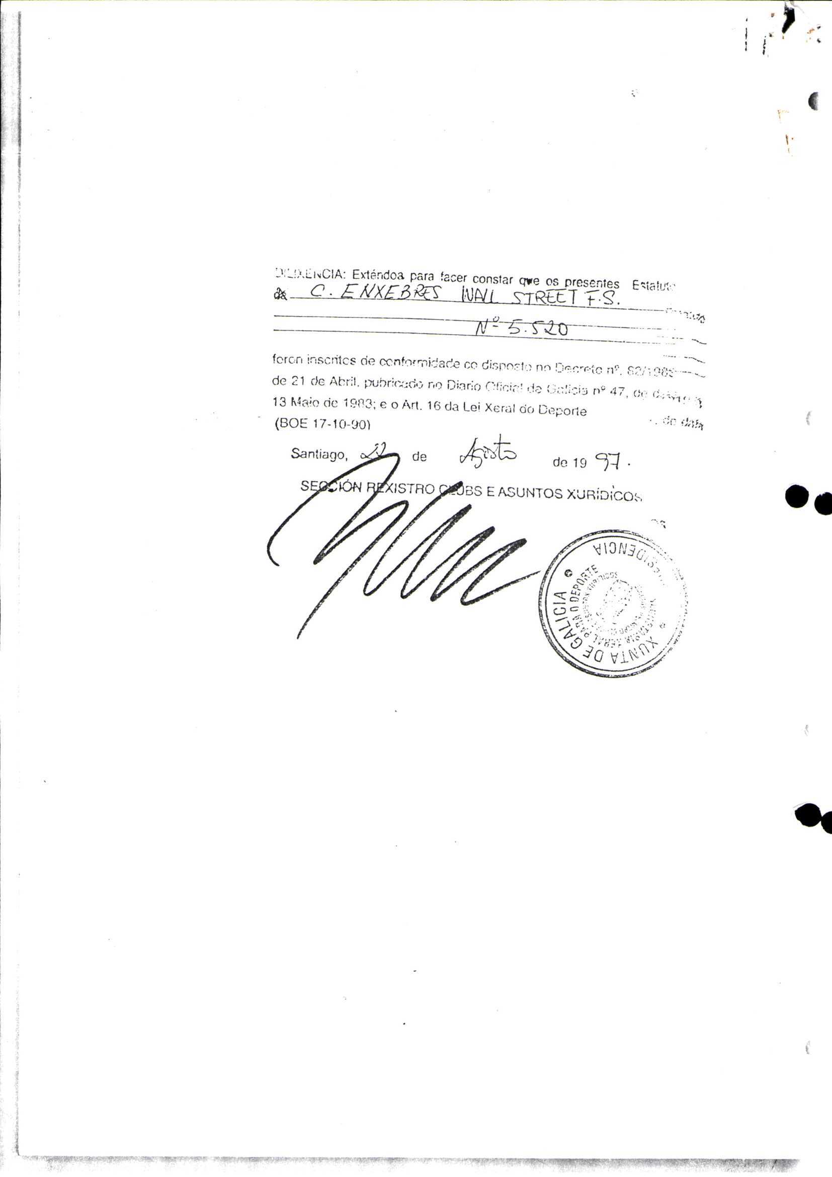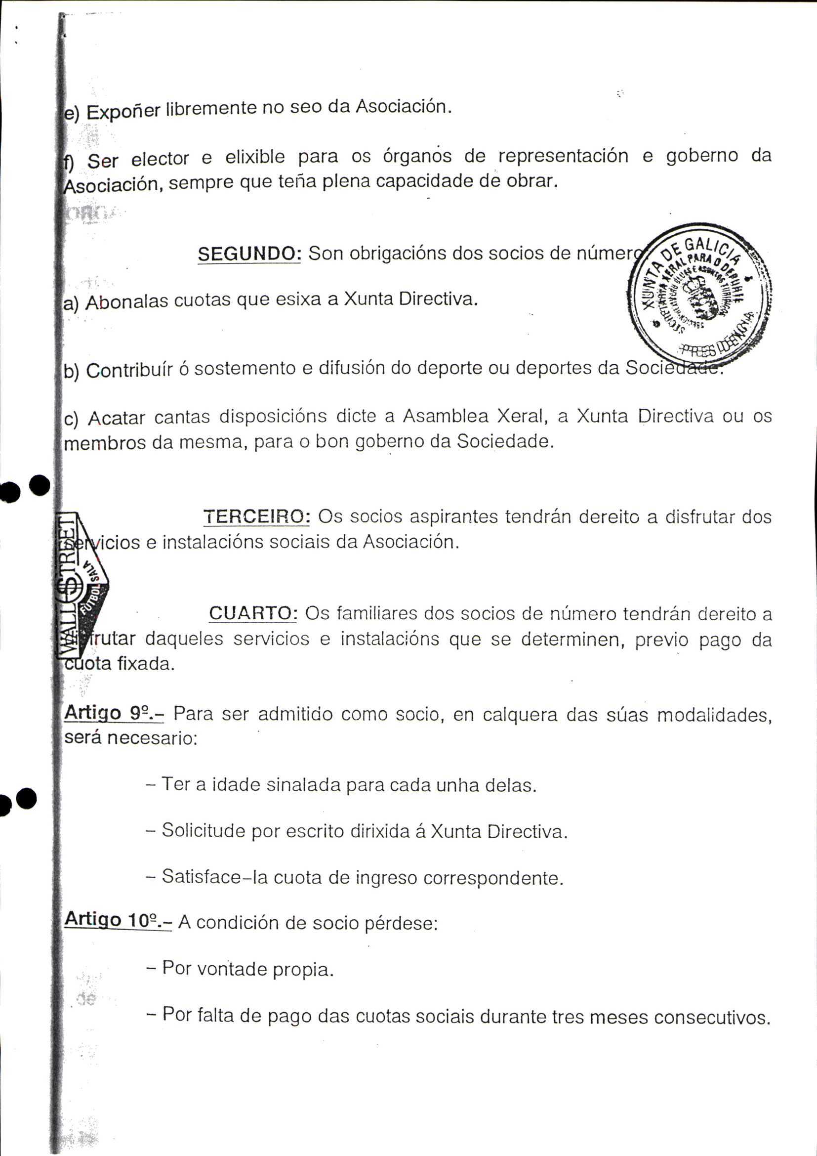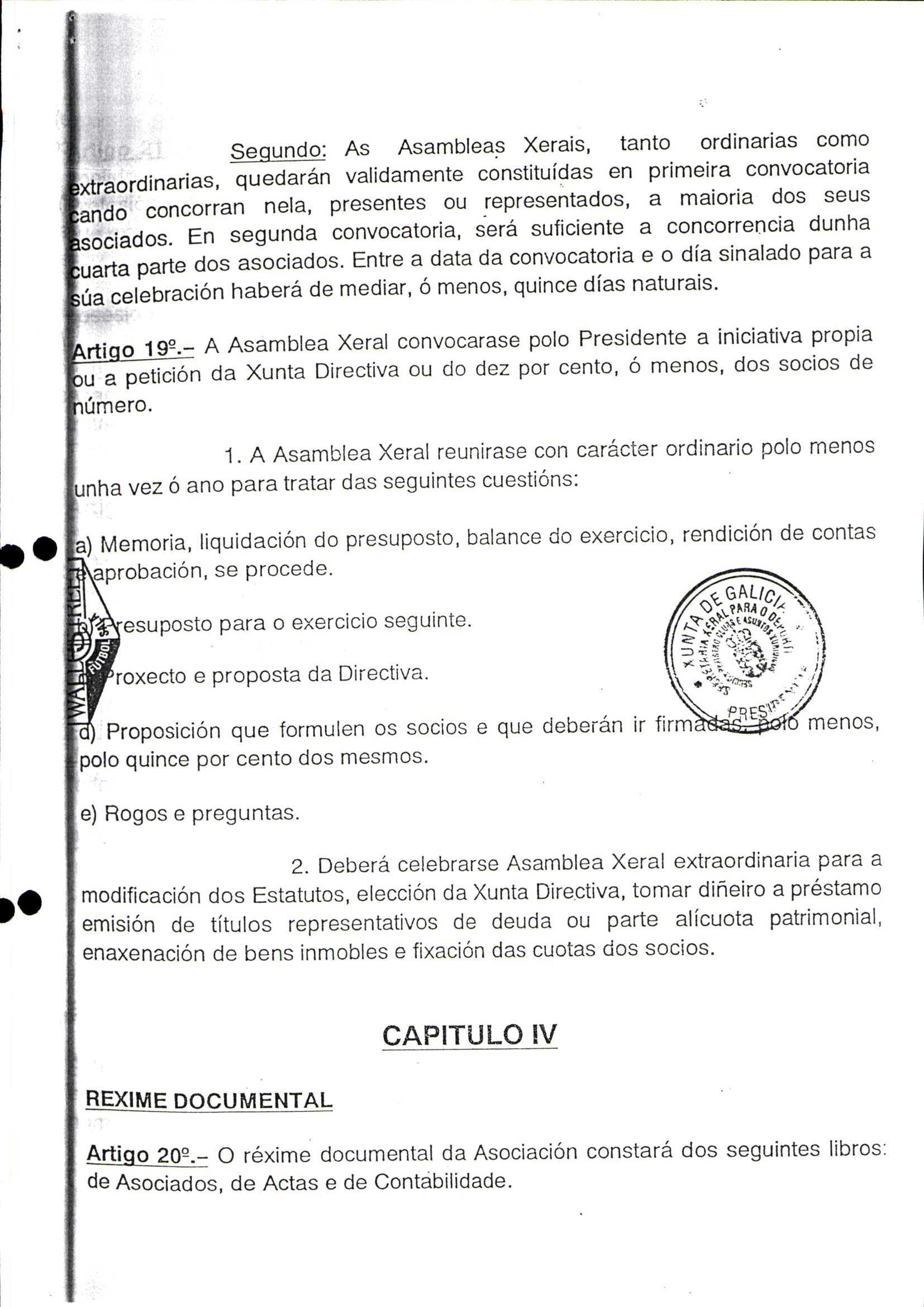 Contén o Acta da fundación e os estatutos da entidade deportiva