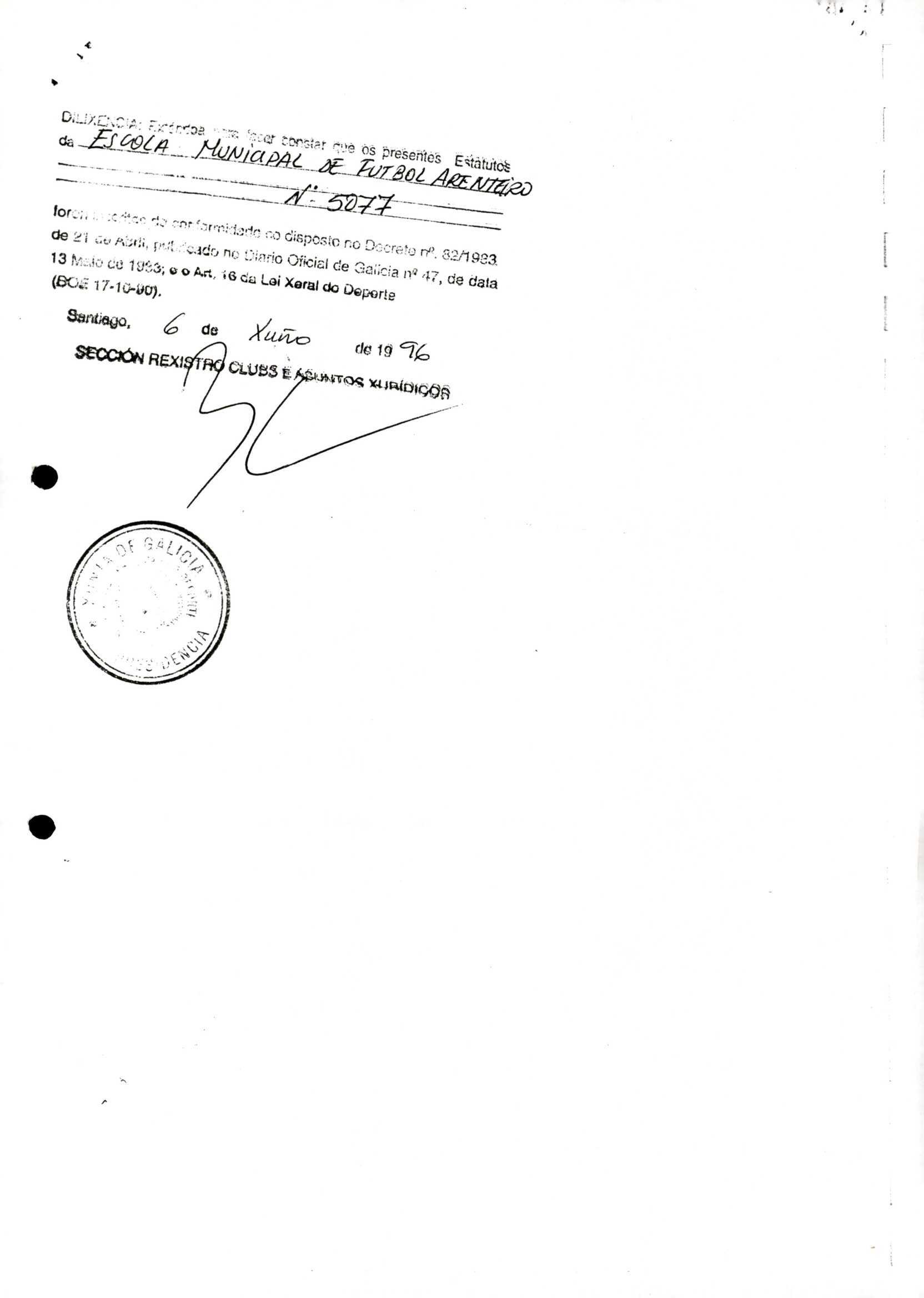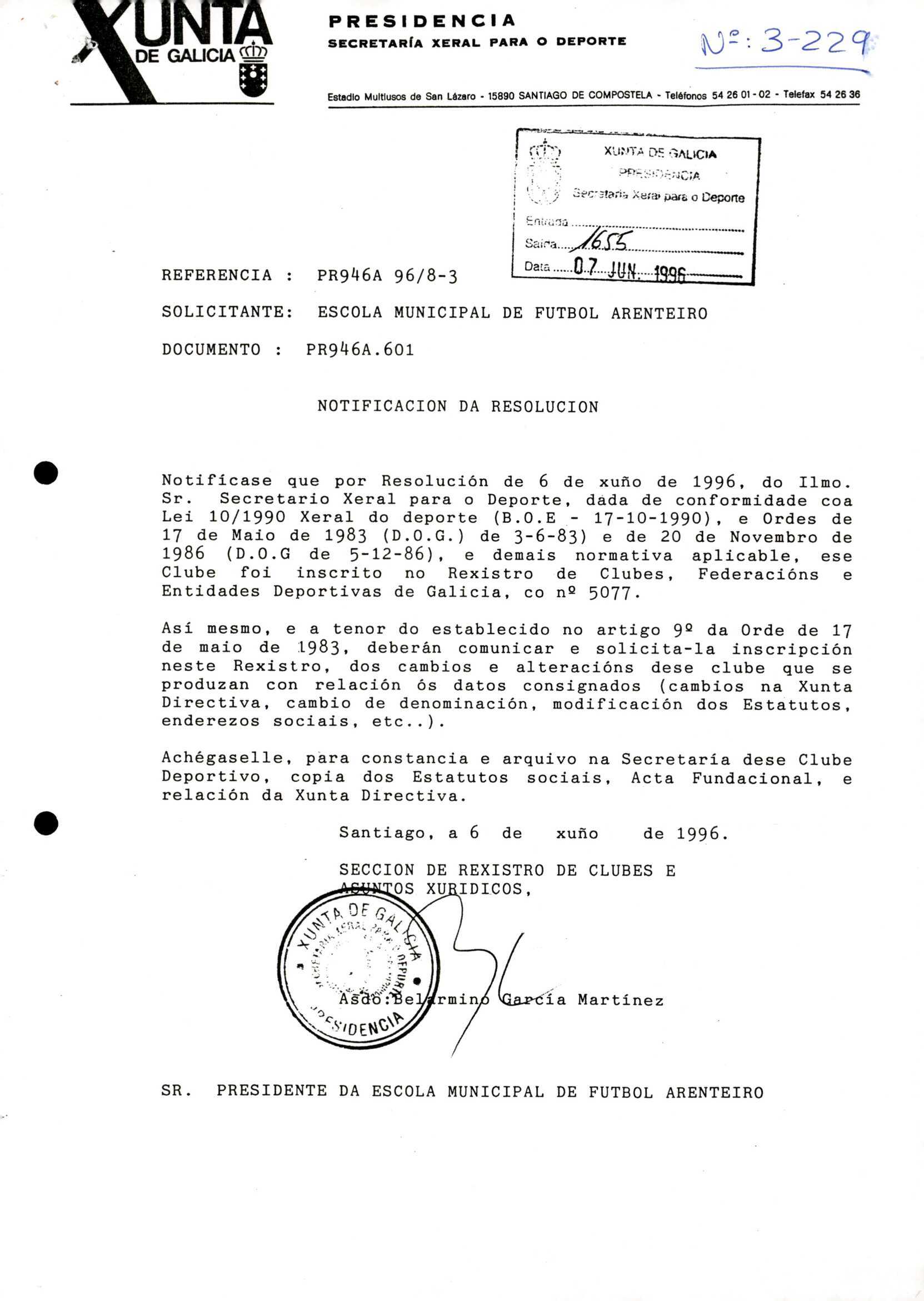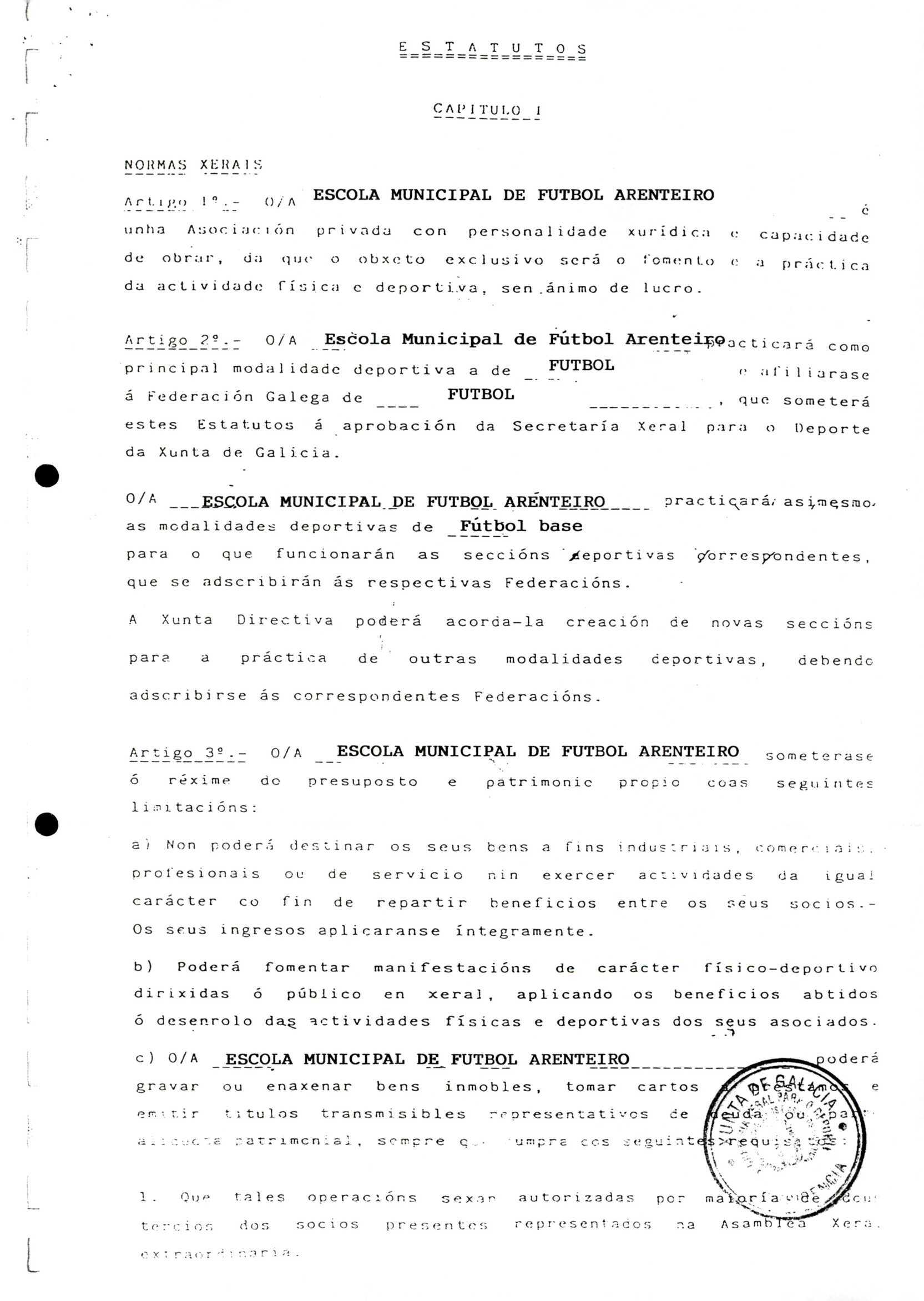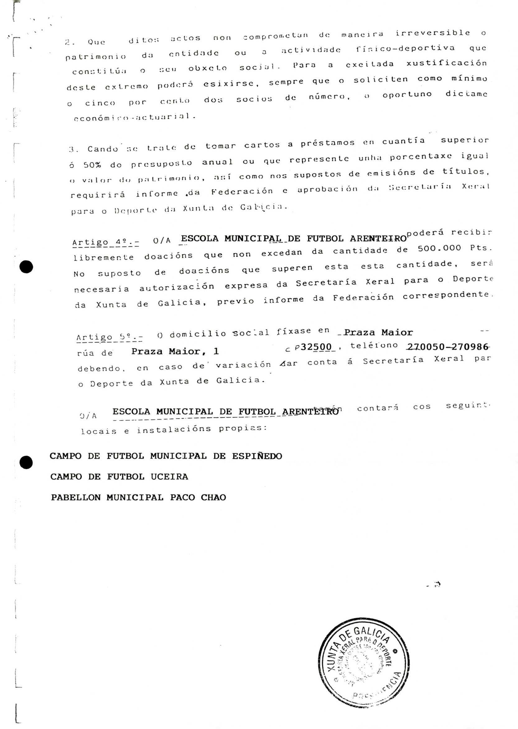 R. 3-229. ESCOLA MUNICIPAL DE FÚTBOL ARENTEIRO. Carballiño