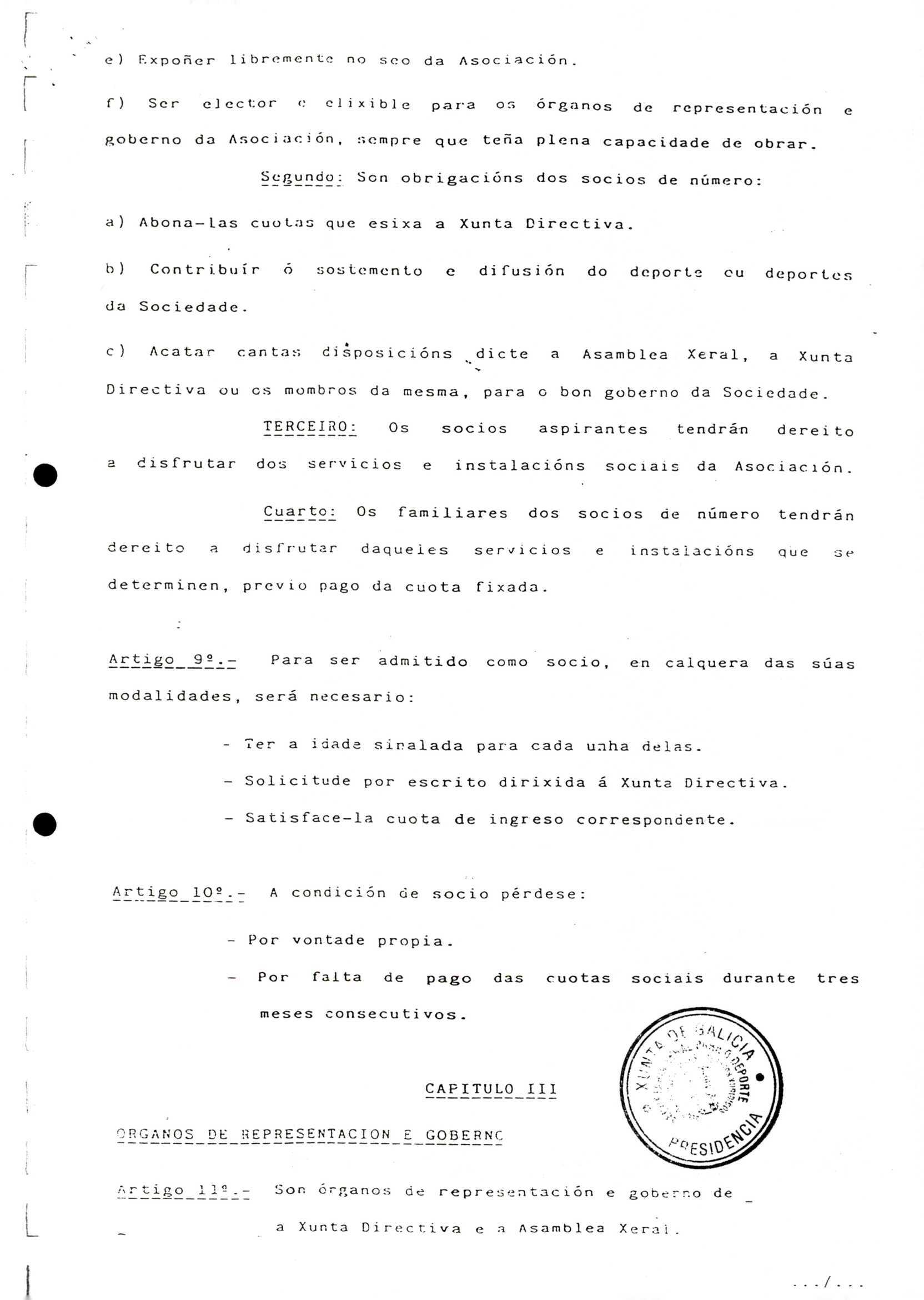 Contén o Acta da fundación e os estatutos da entidade deportiva