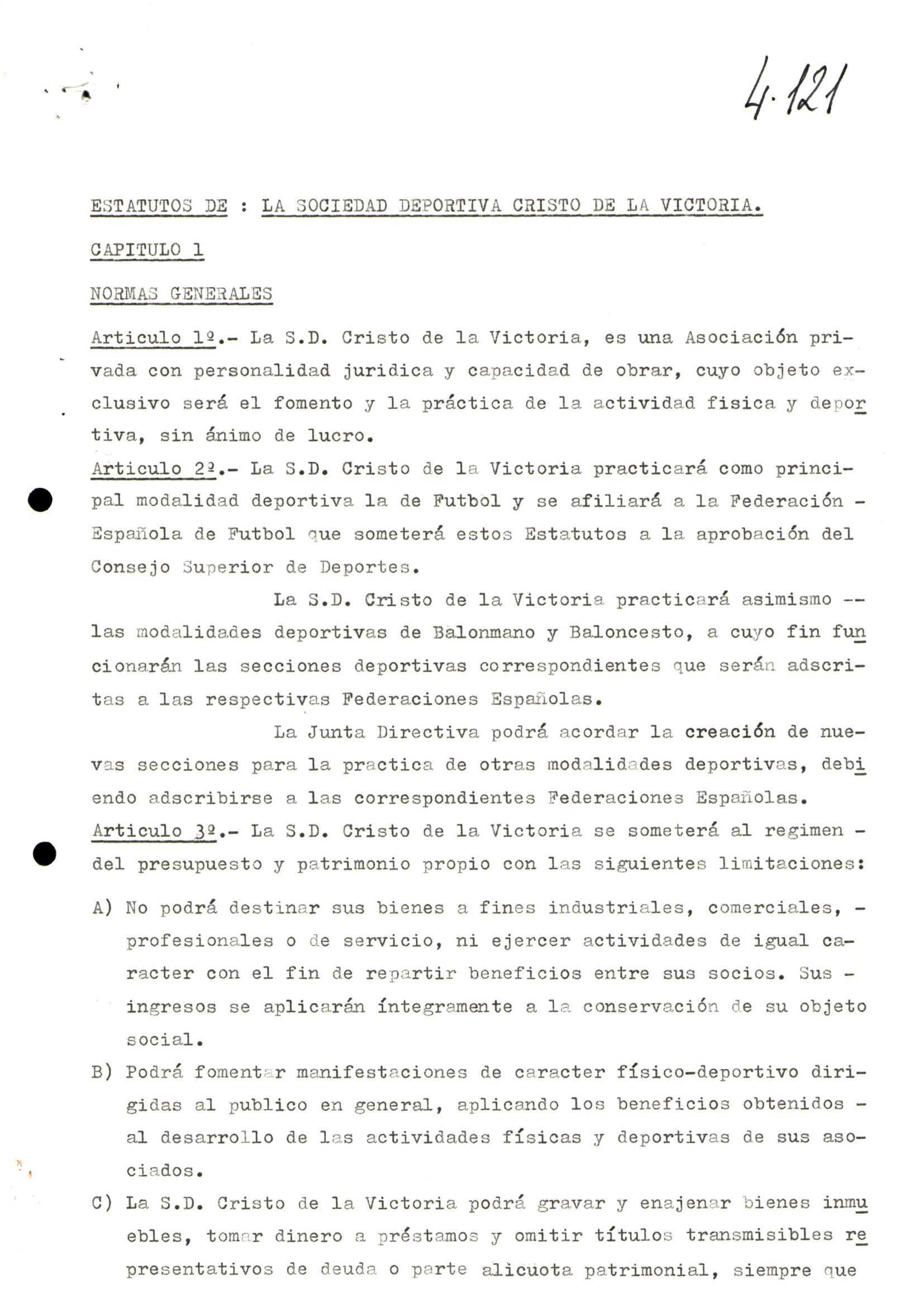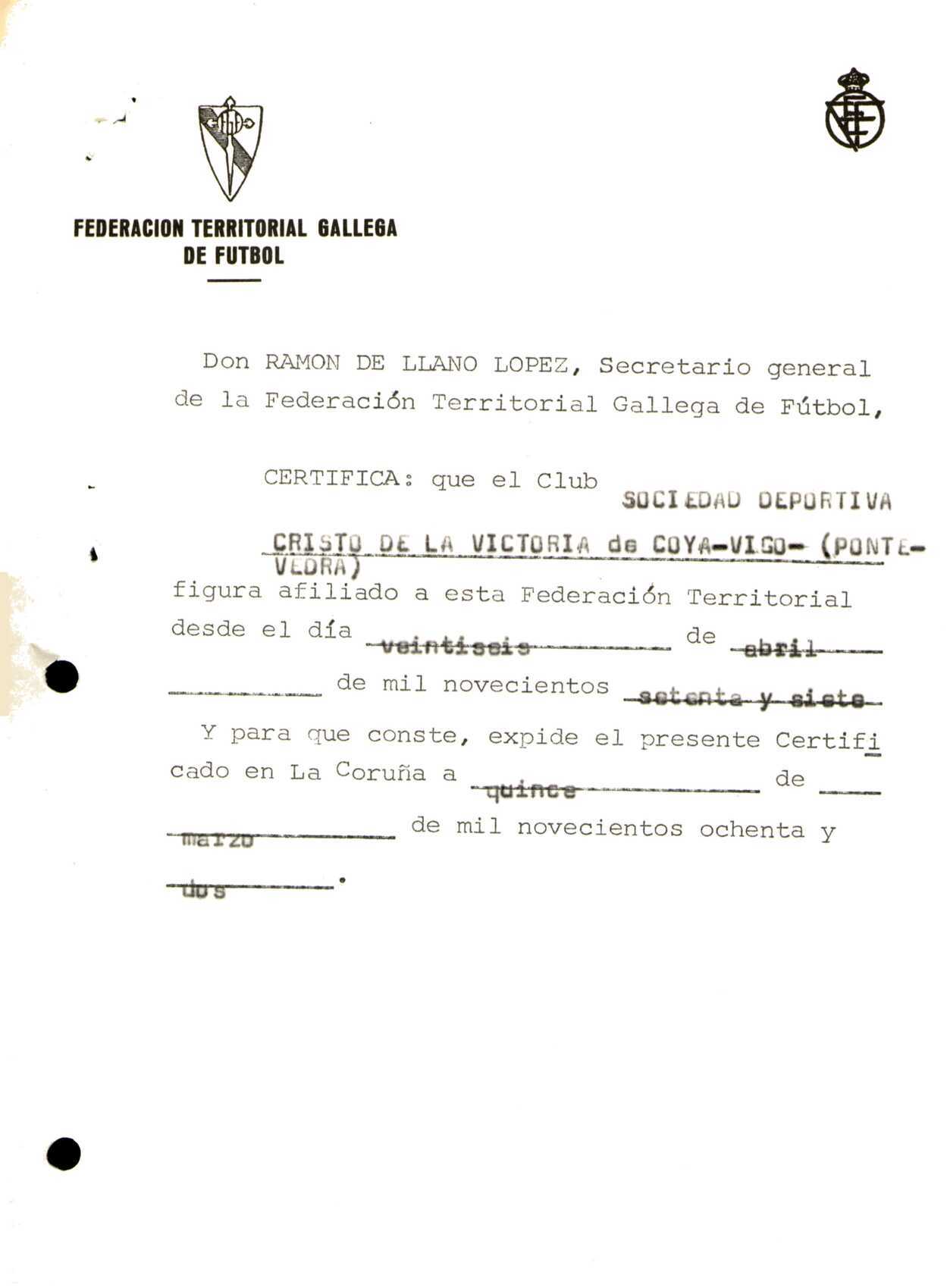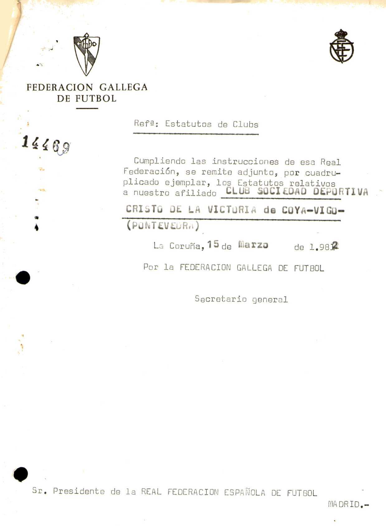 R. 4-121. SOCIEDAD DEPORTIVA CRISTO DE LA VICTORIA. Coya, Vigo