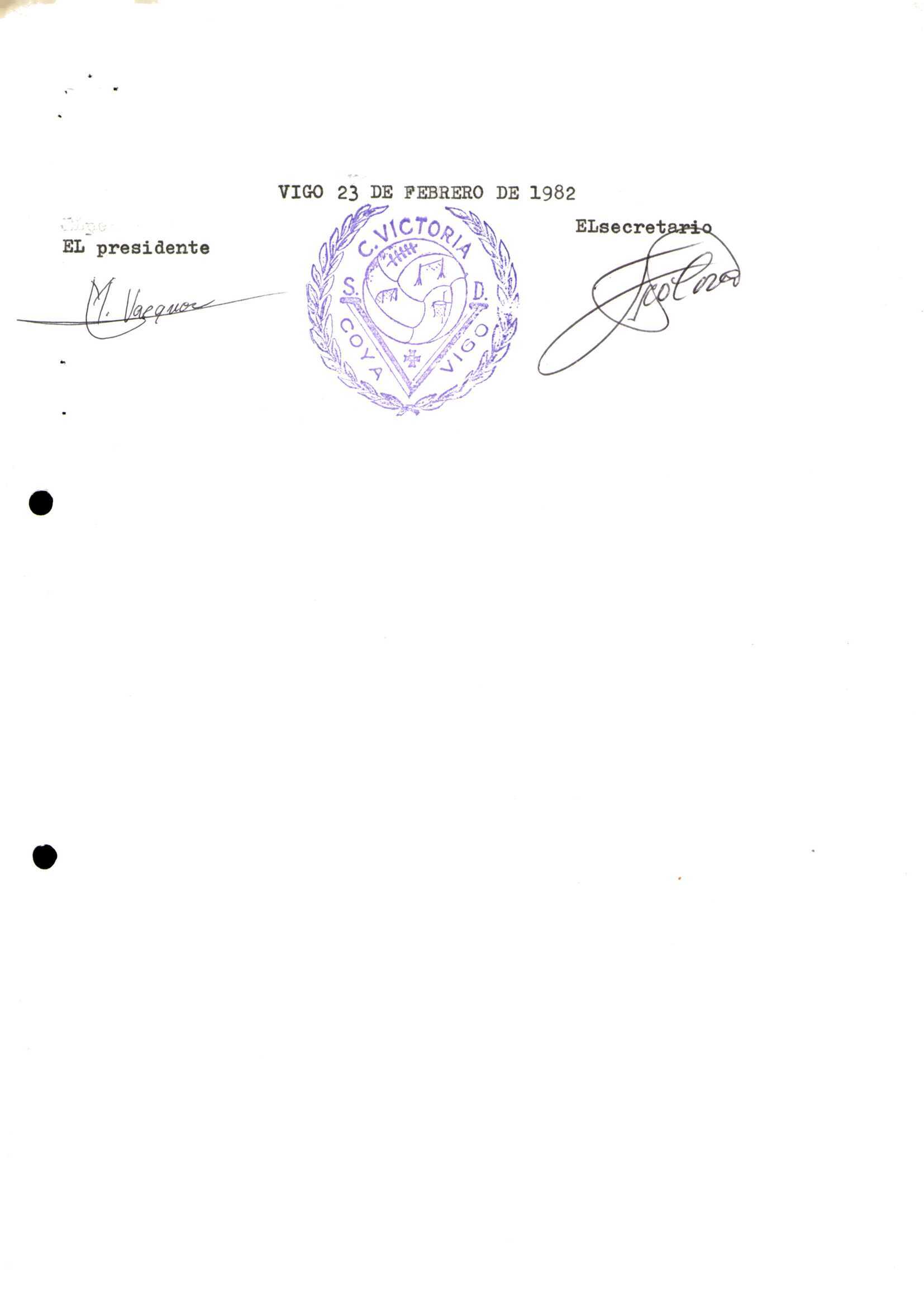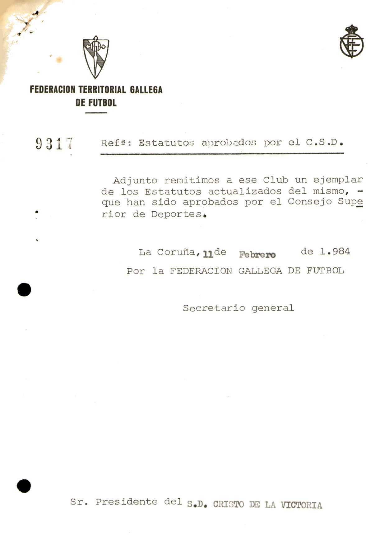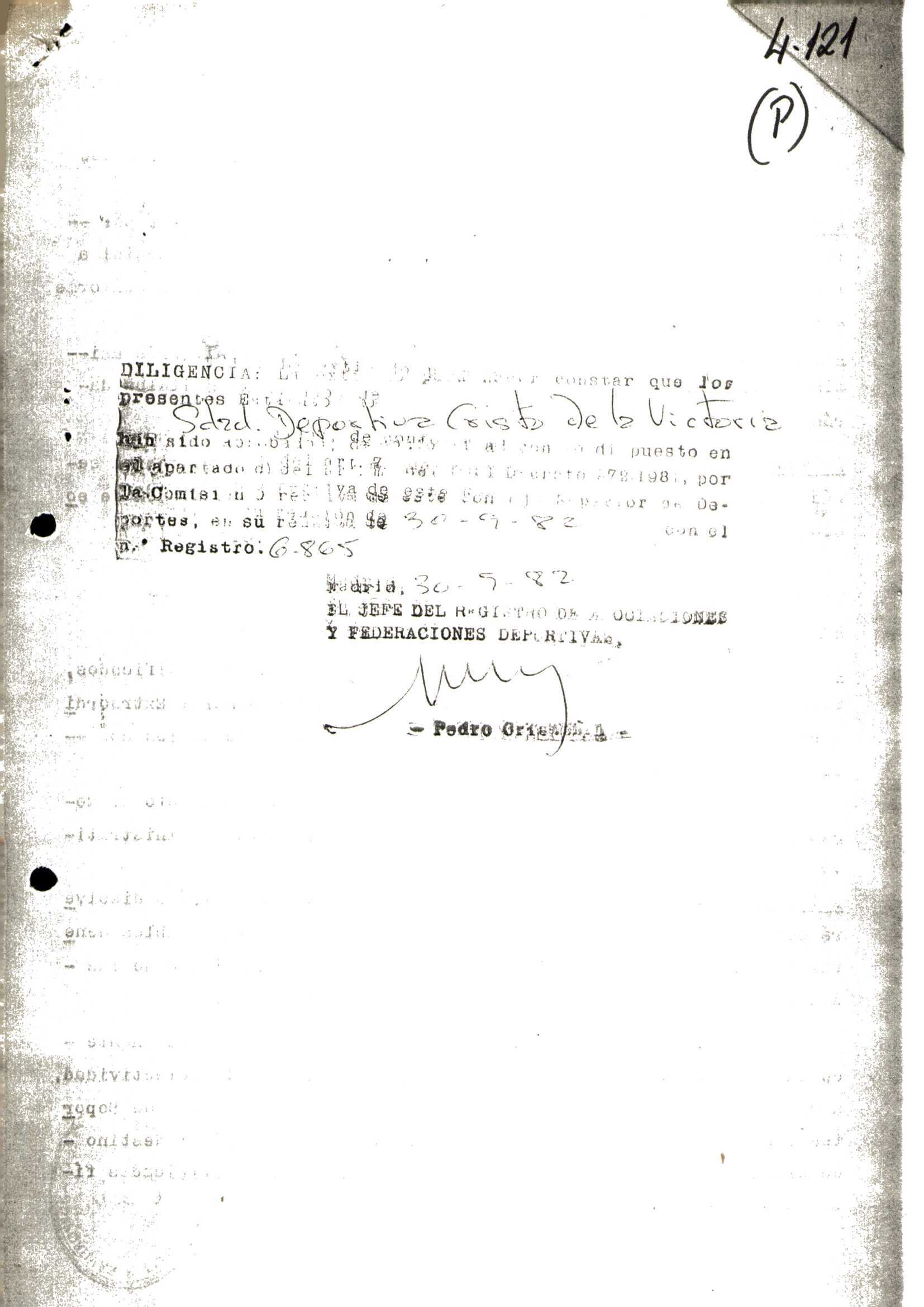 R. 4-121. SOCIEDAD DEPORTIVA CRISTO DE LA VICTORIA. Coya, Vigo