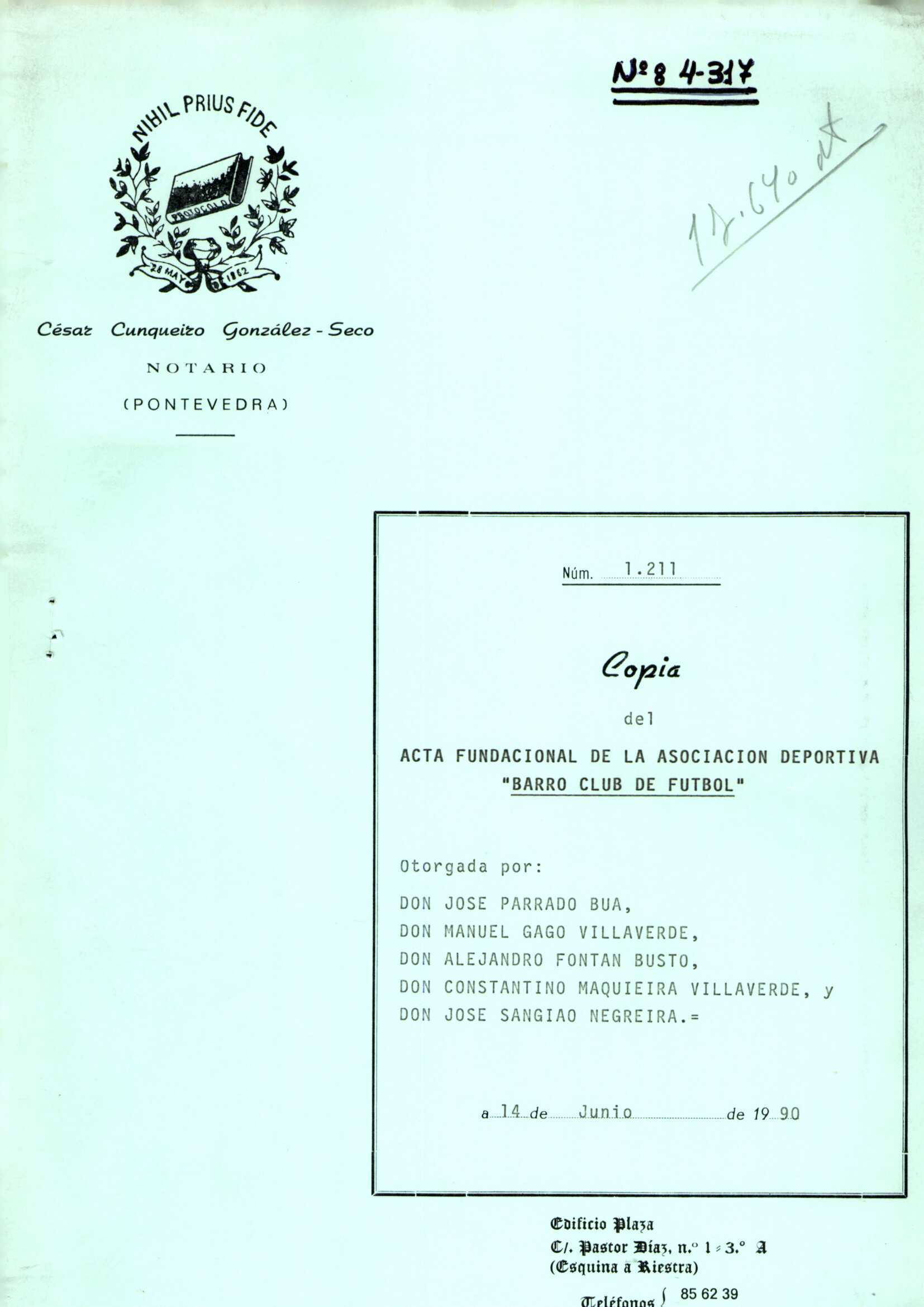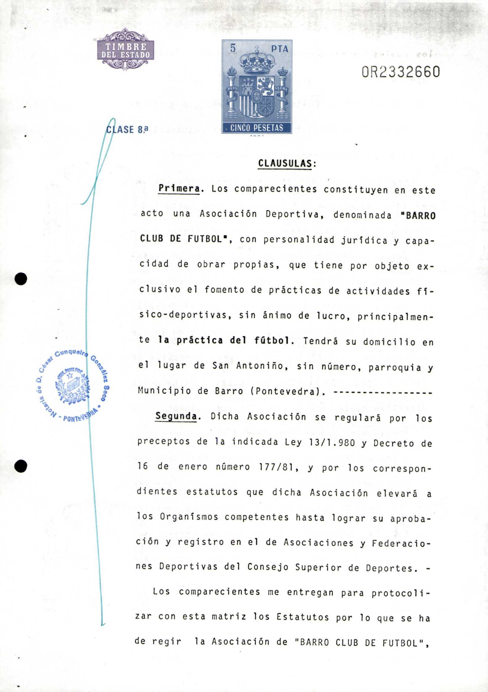 R. 4-317. BARRO CLUB DE FUTBOL.