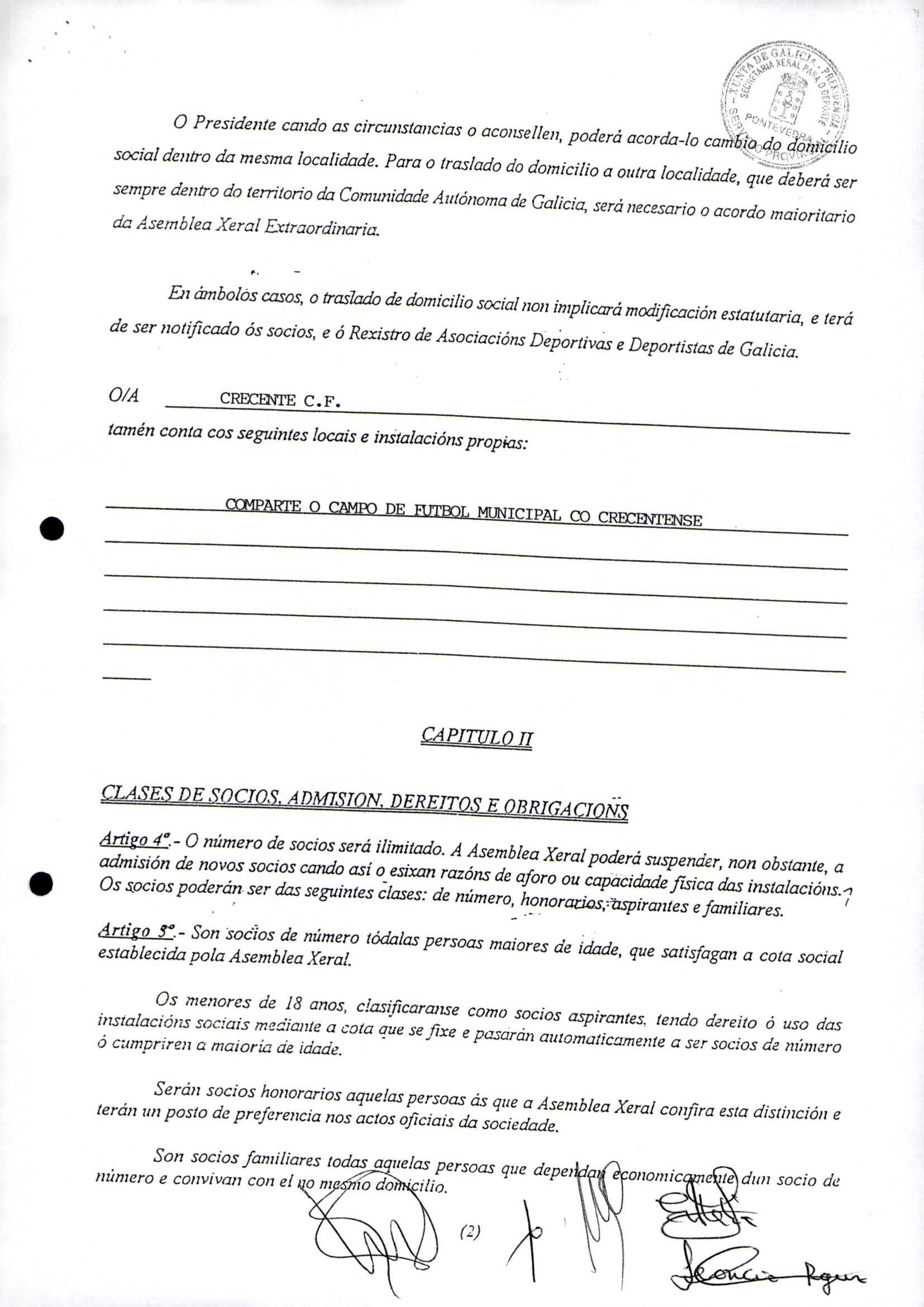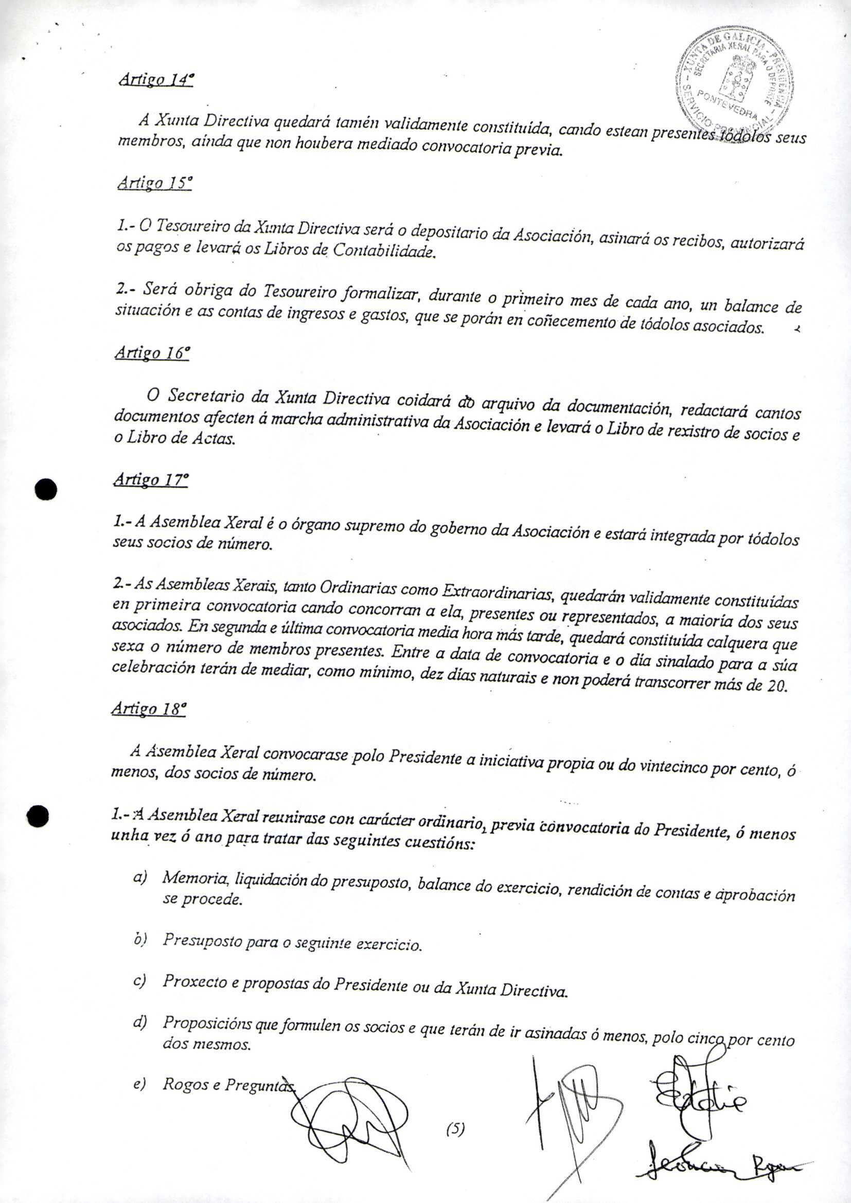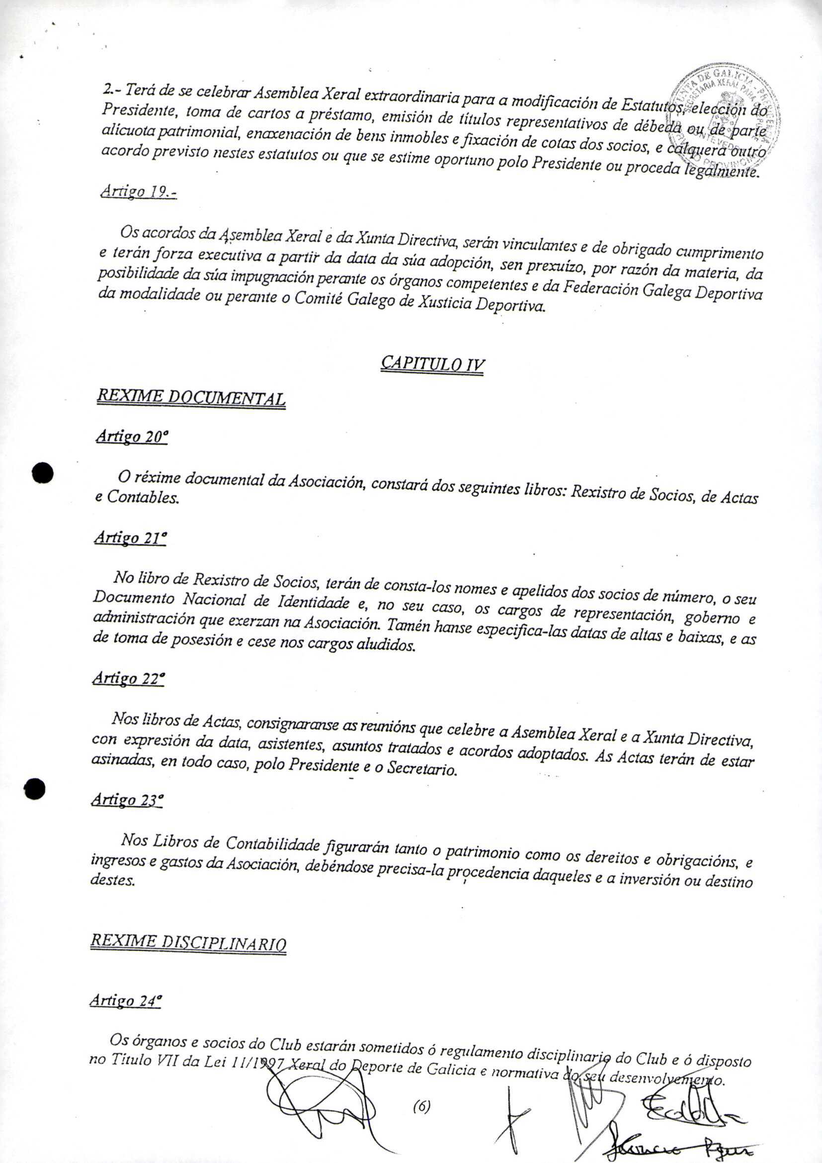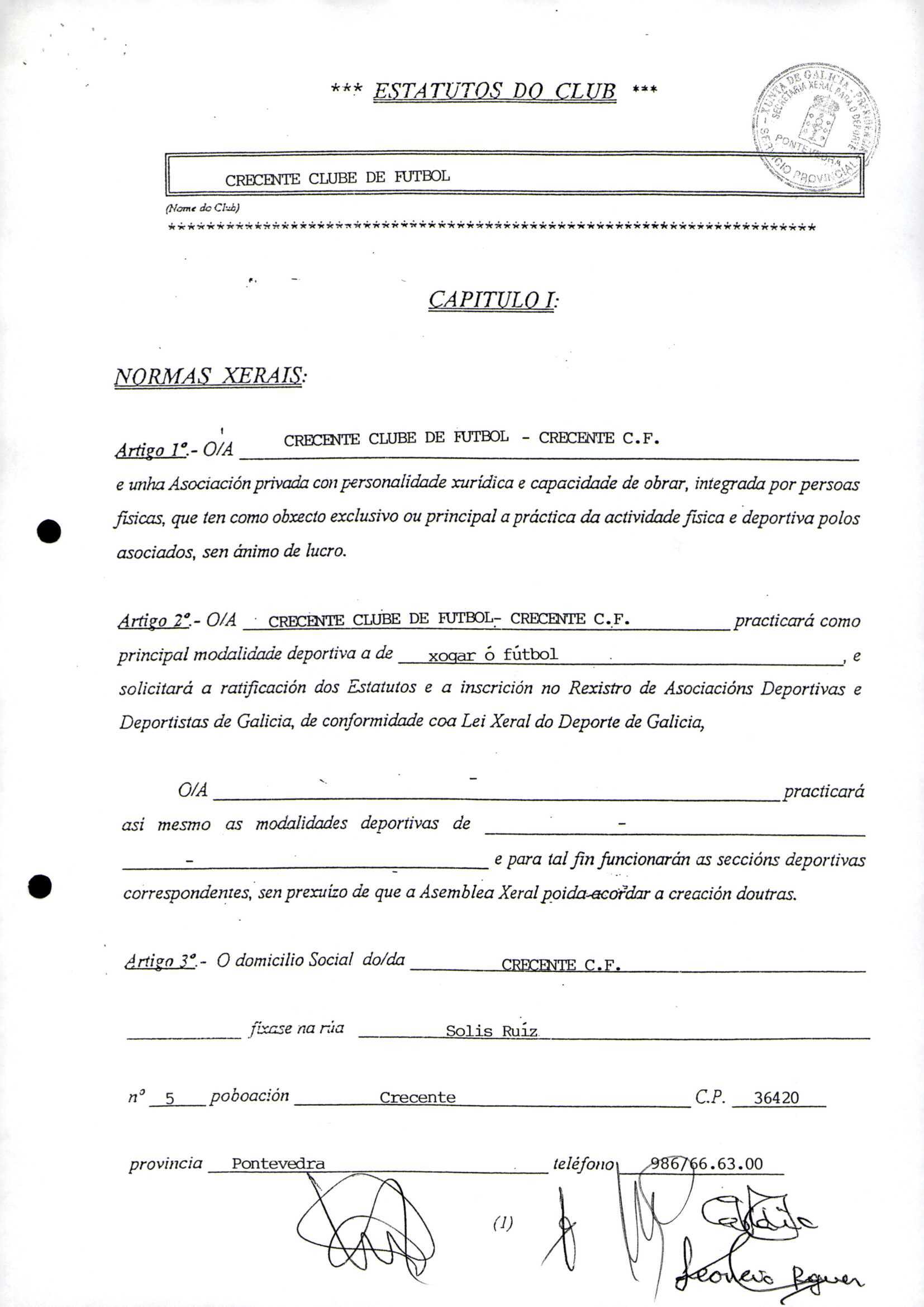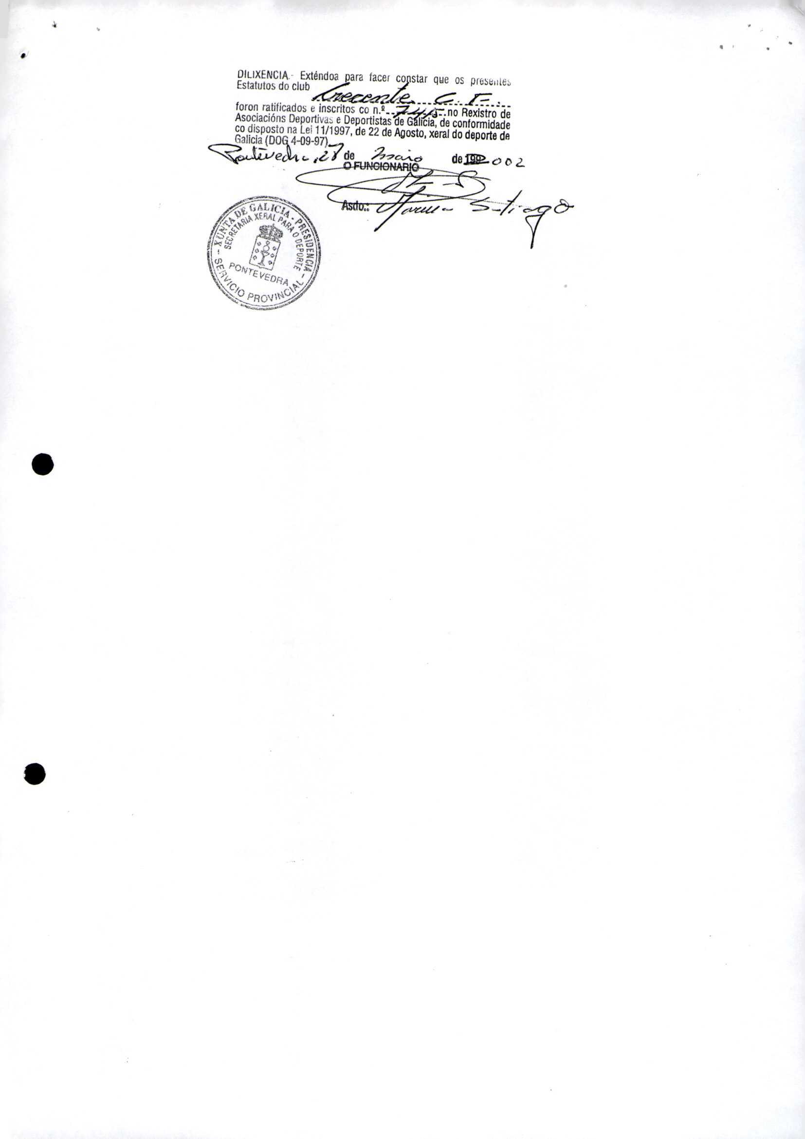 Contén o Acta da fundación e os estatutos da entidade deportiva