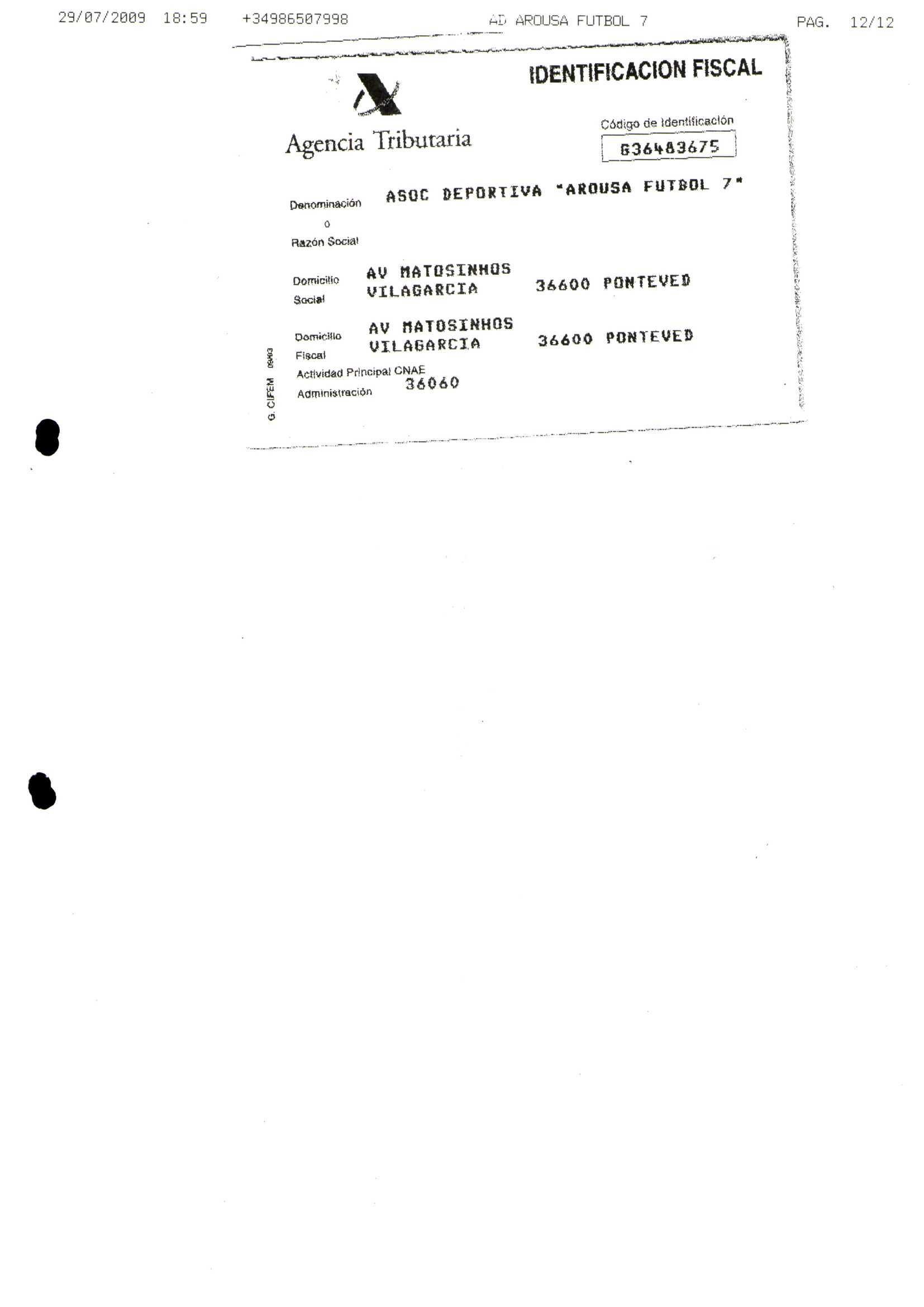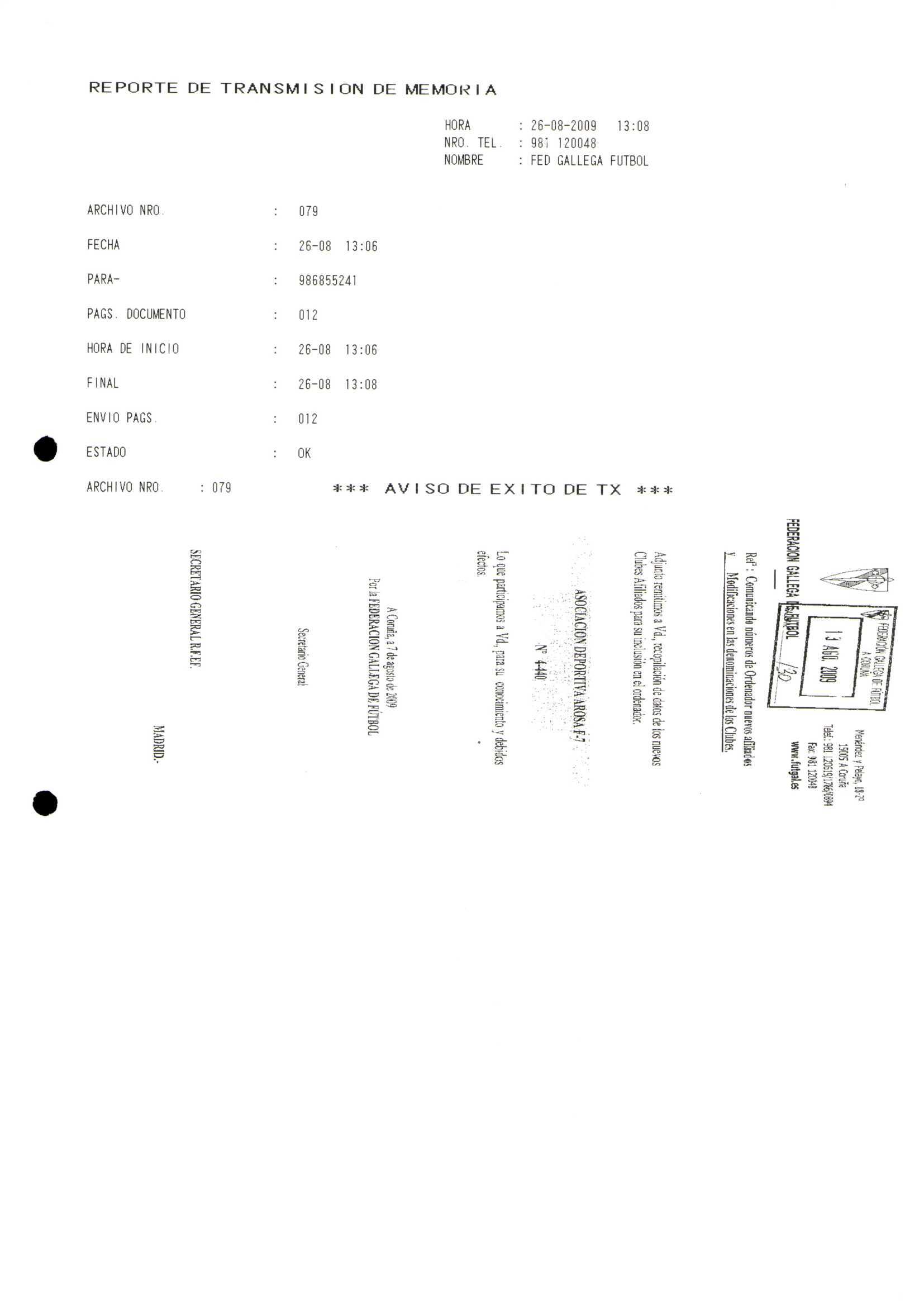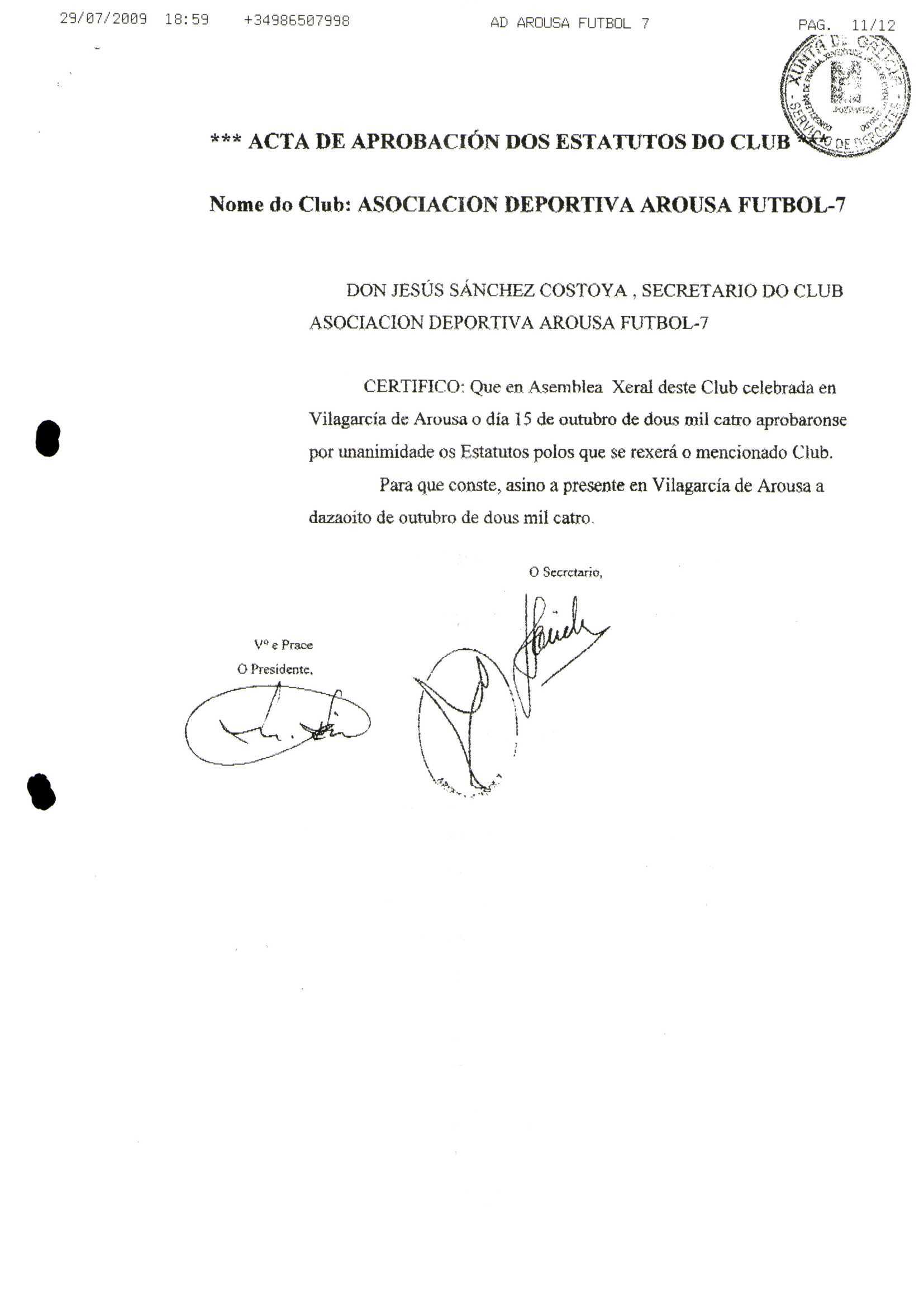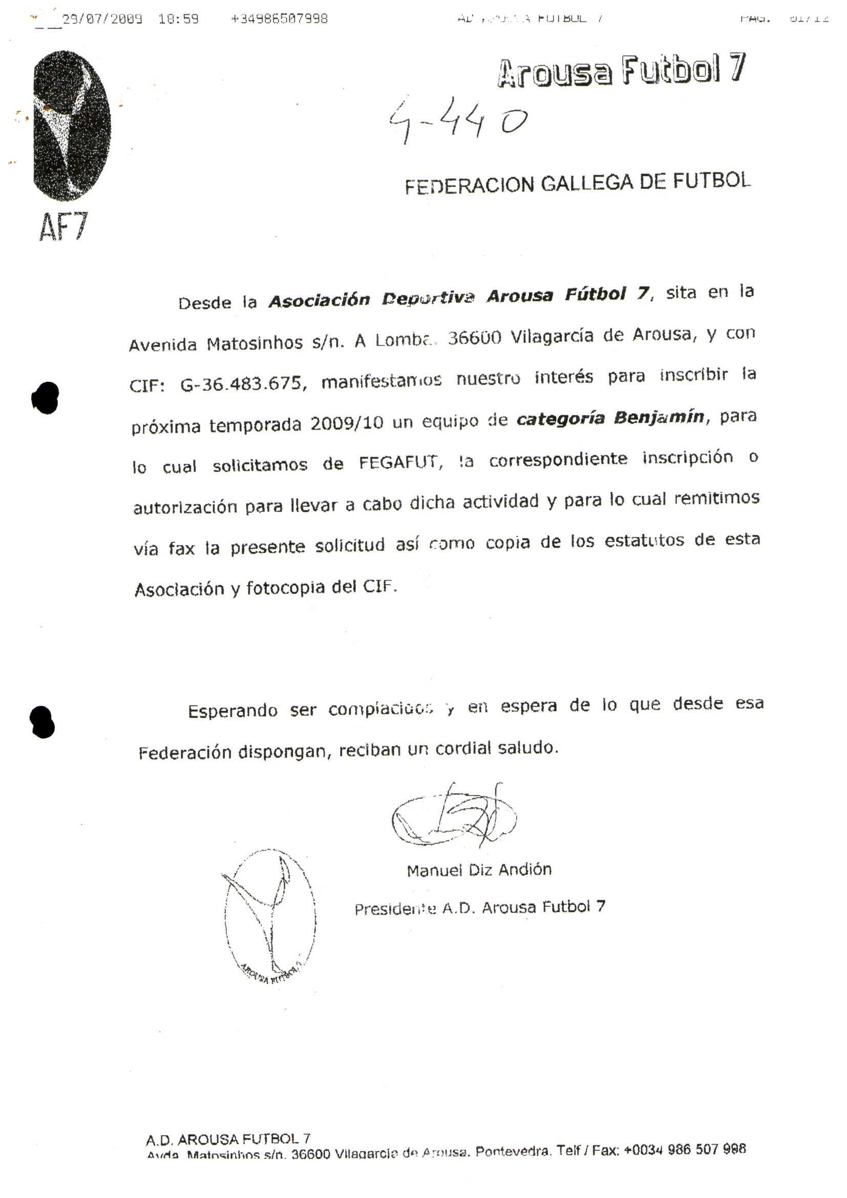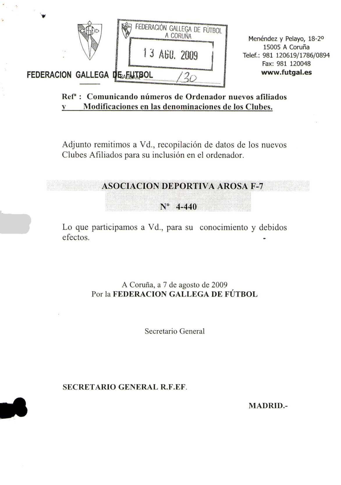 R. 4-440. ASOCIACION DEPORTIVA AROSA FUTBOL 7. Vilagarcia de Arosa