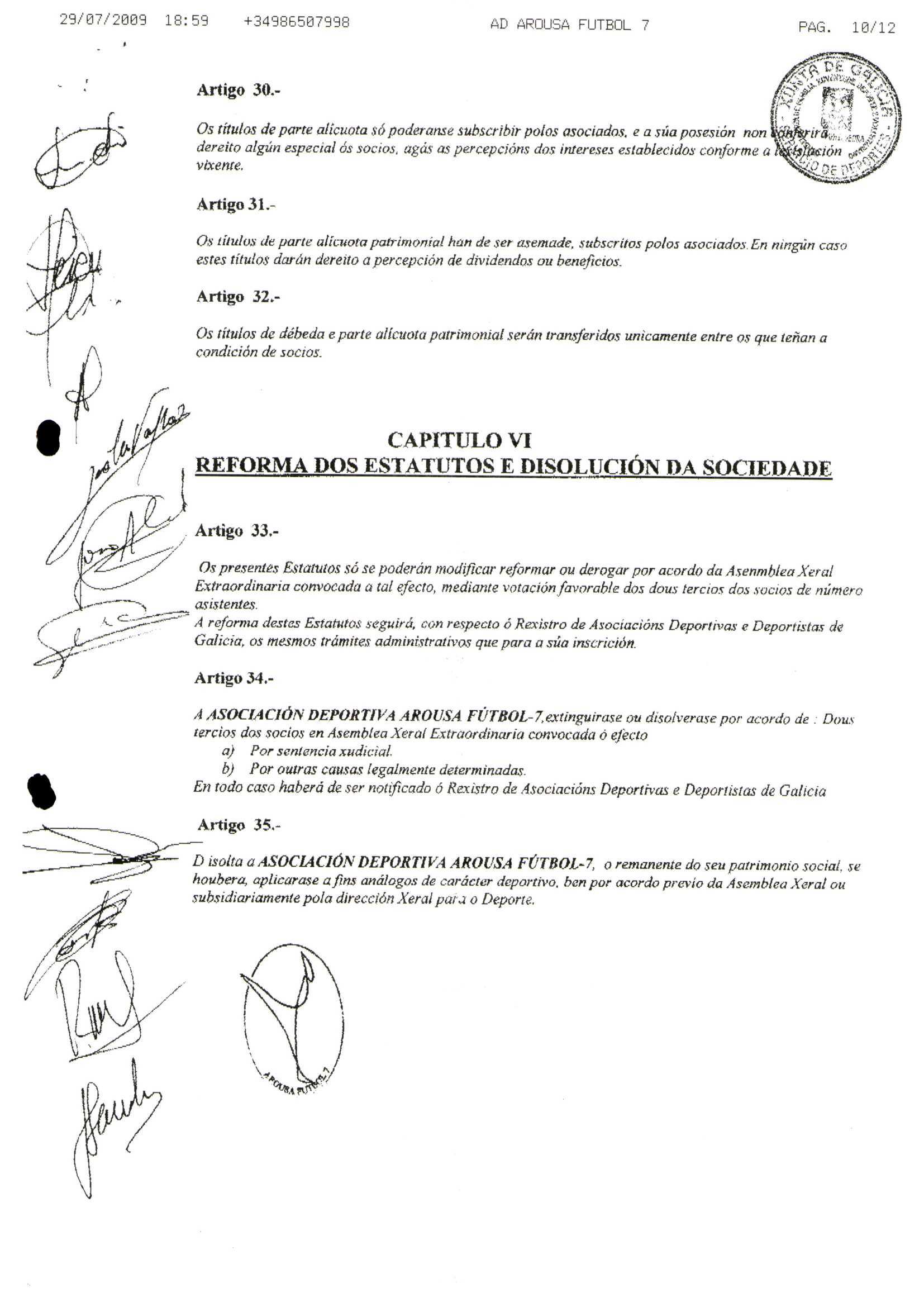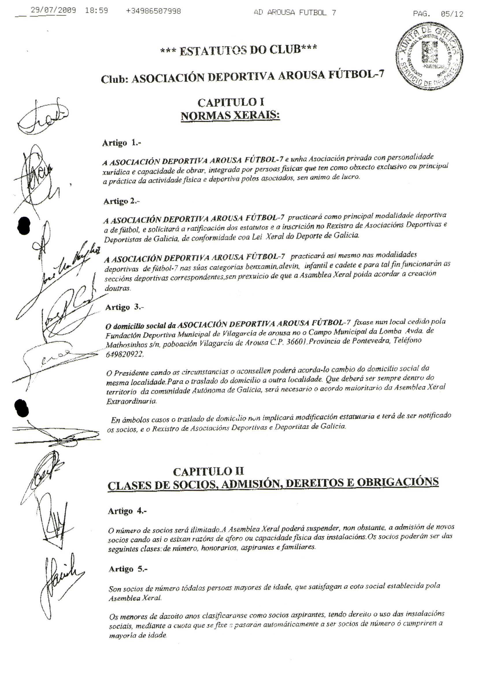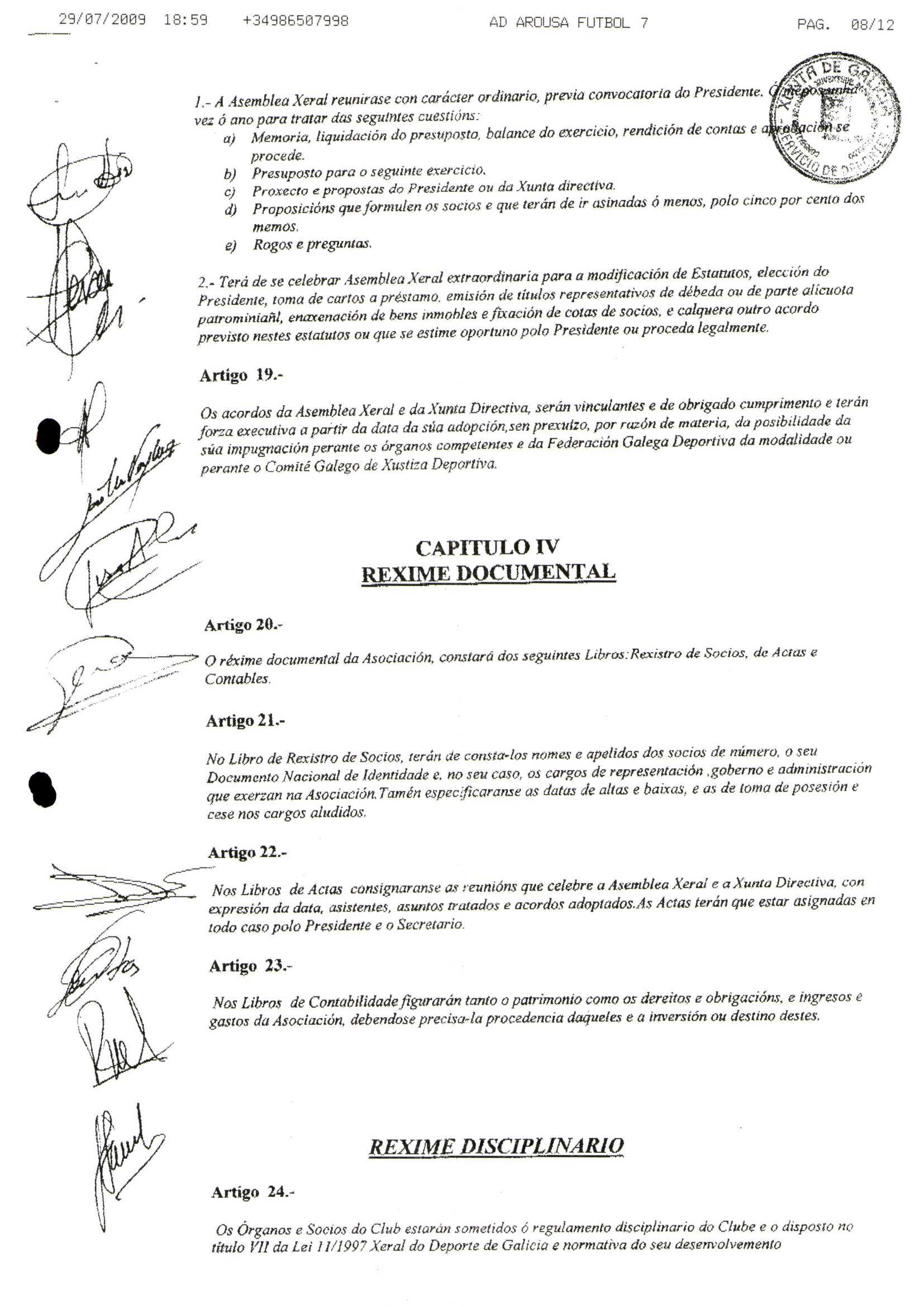 Contén os estatutos da entidade deportiva
