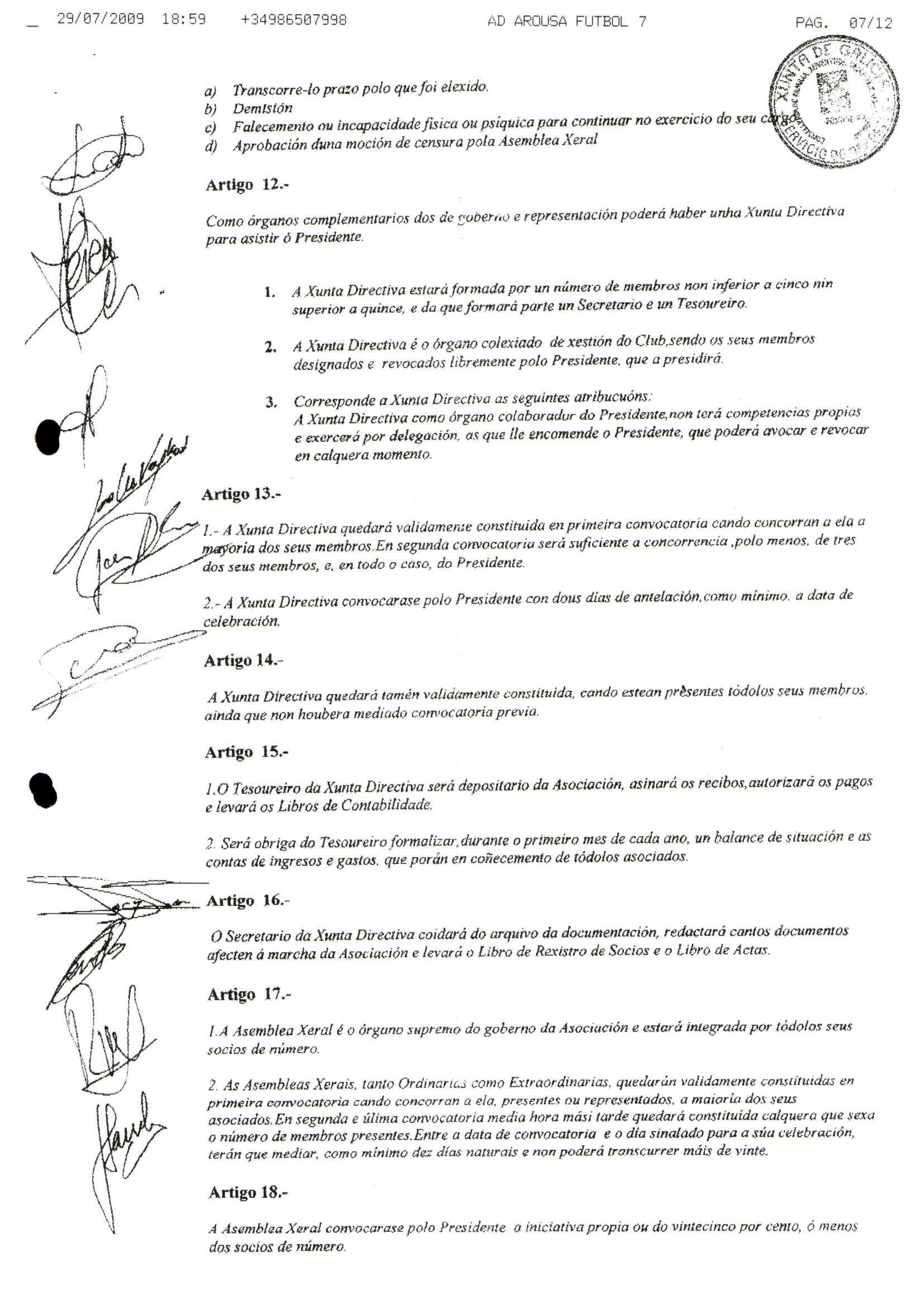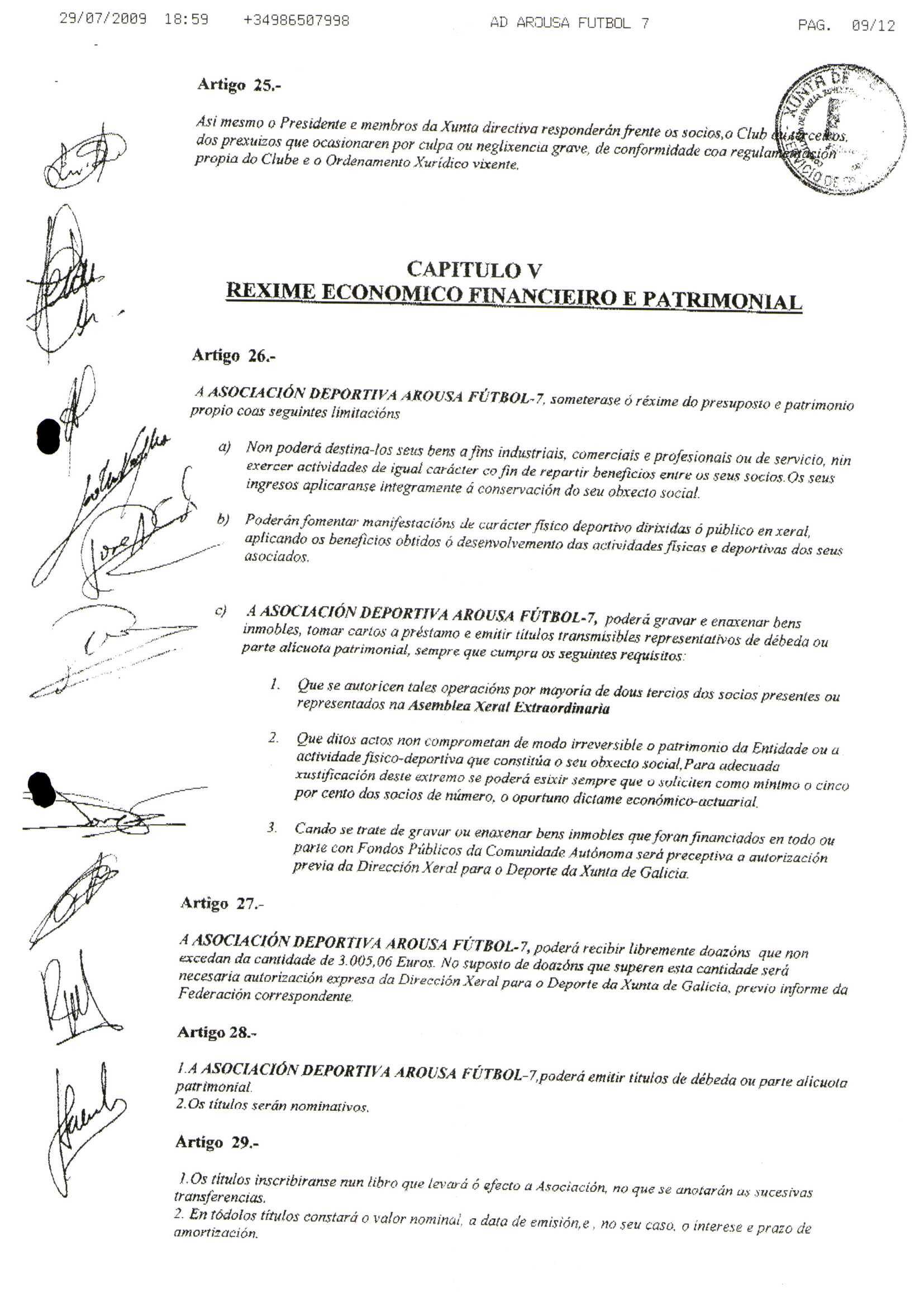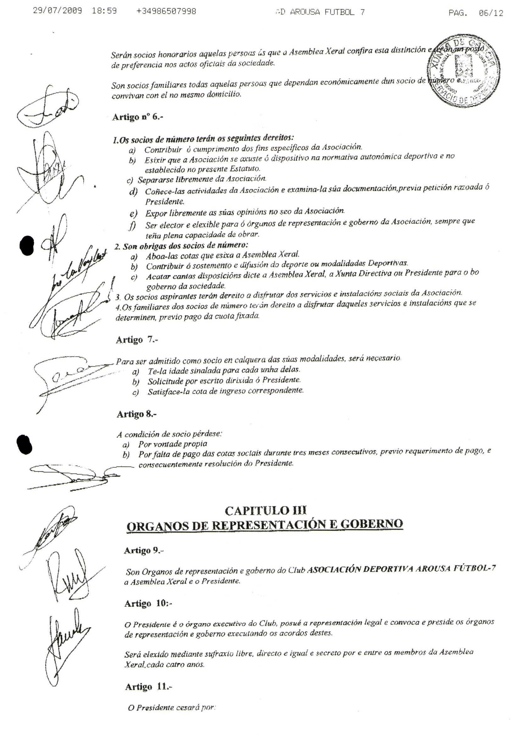 Contén os estatutos da entidade deportiva